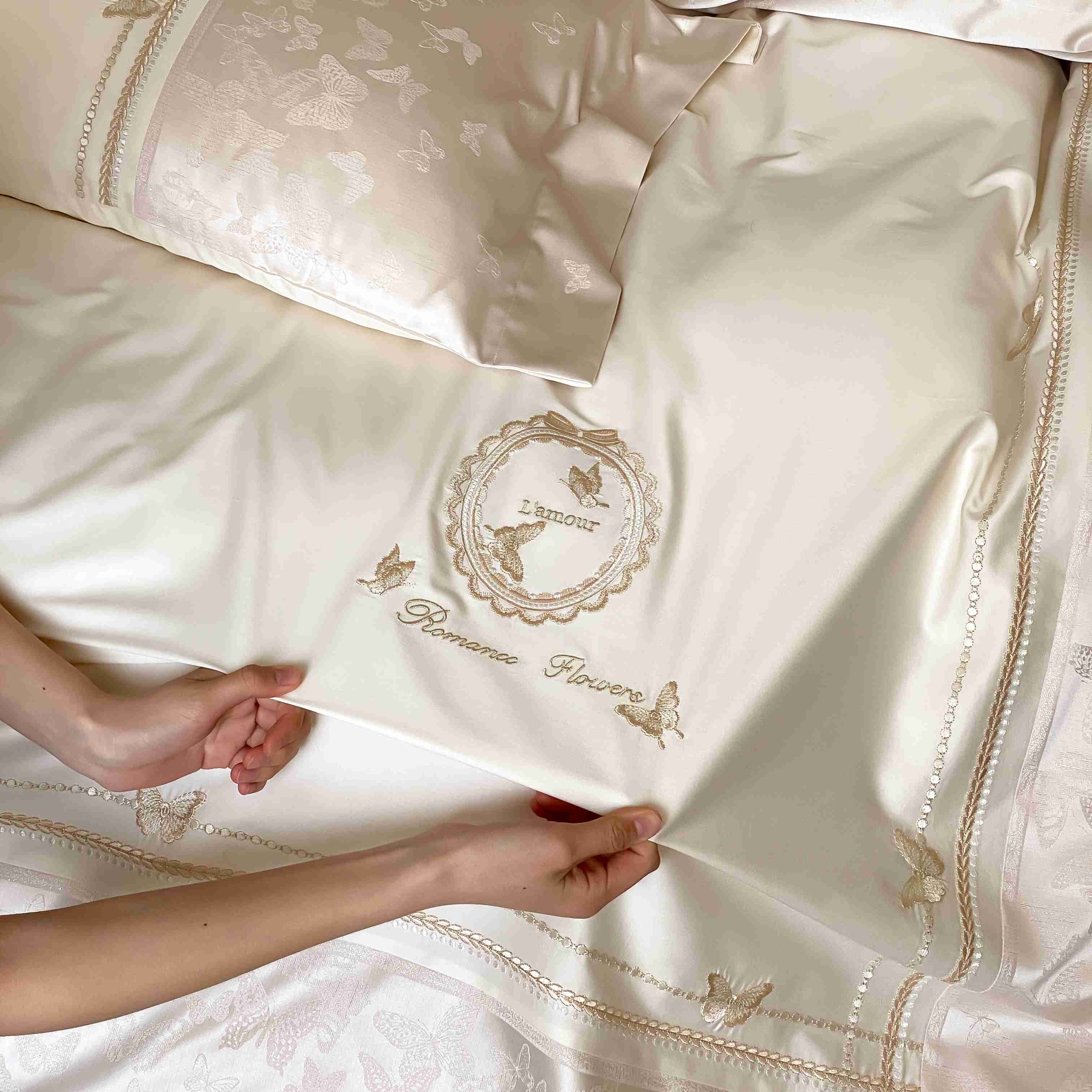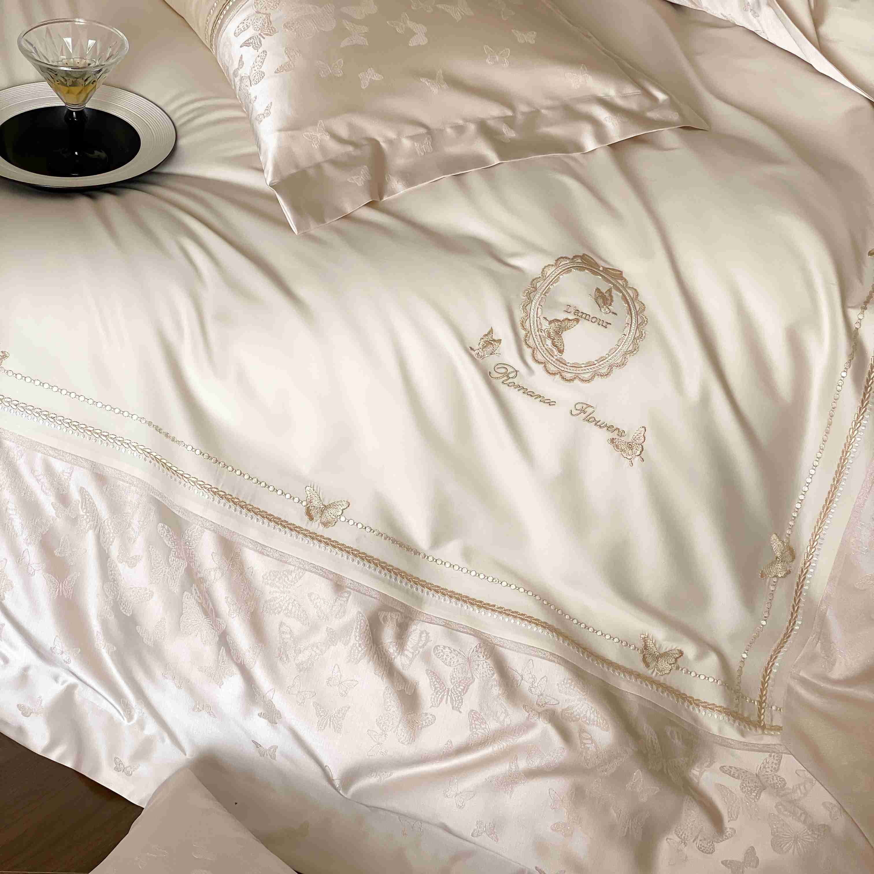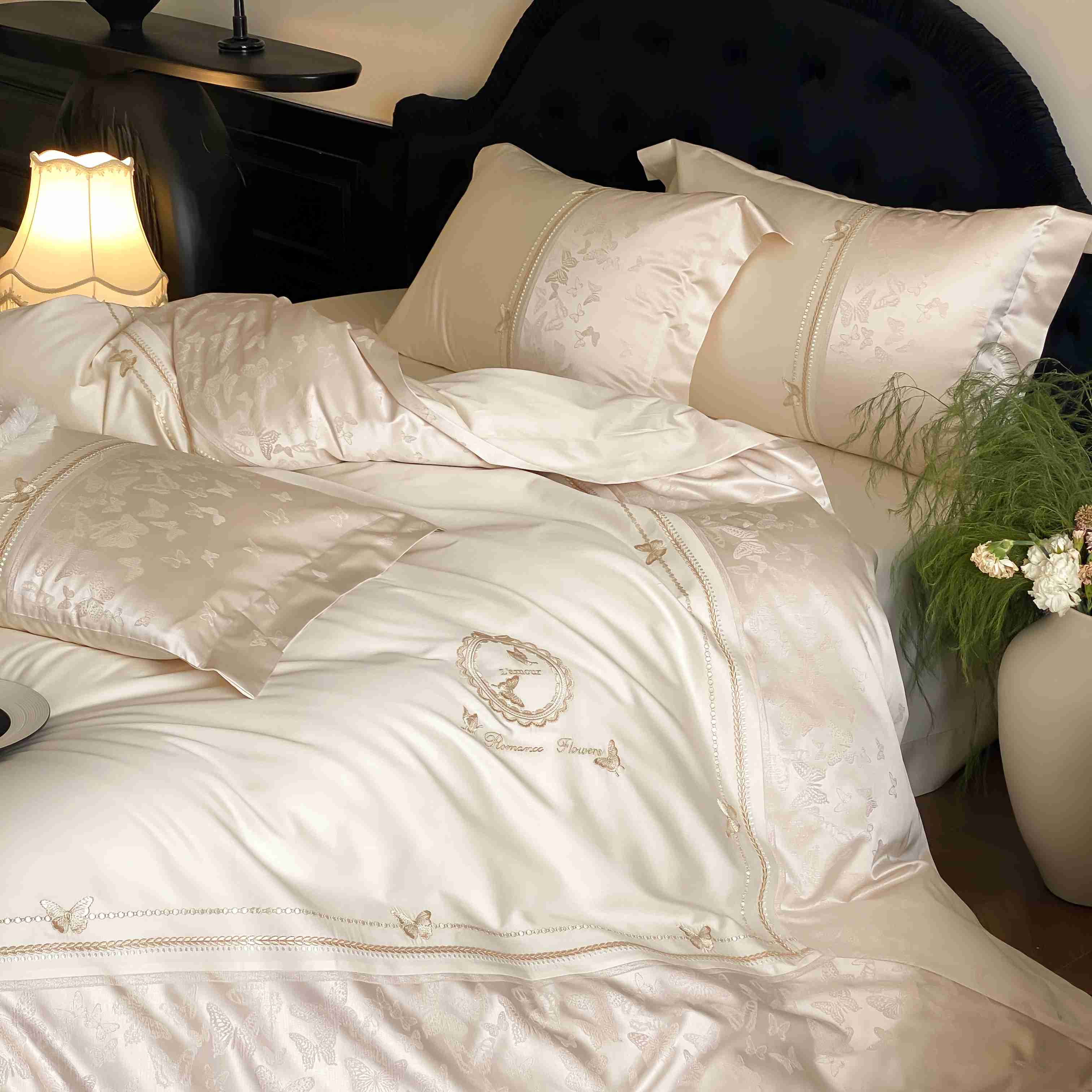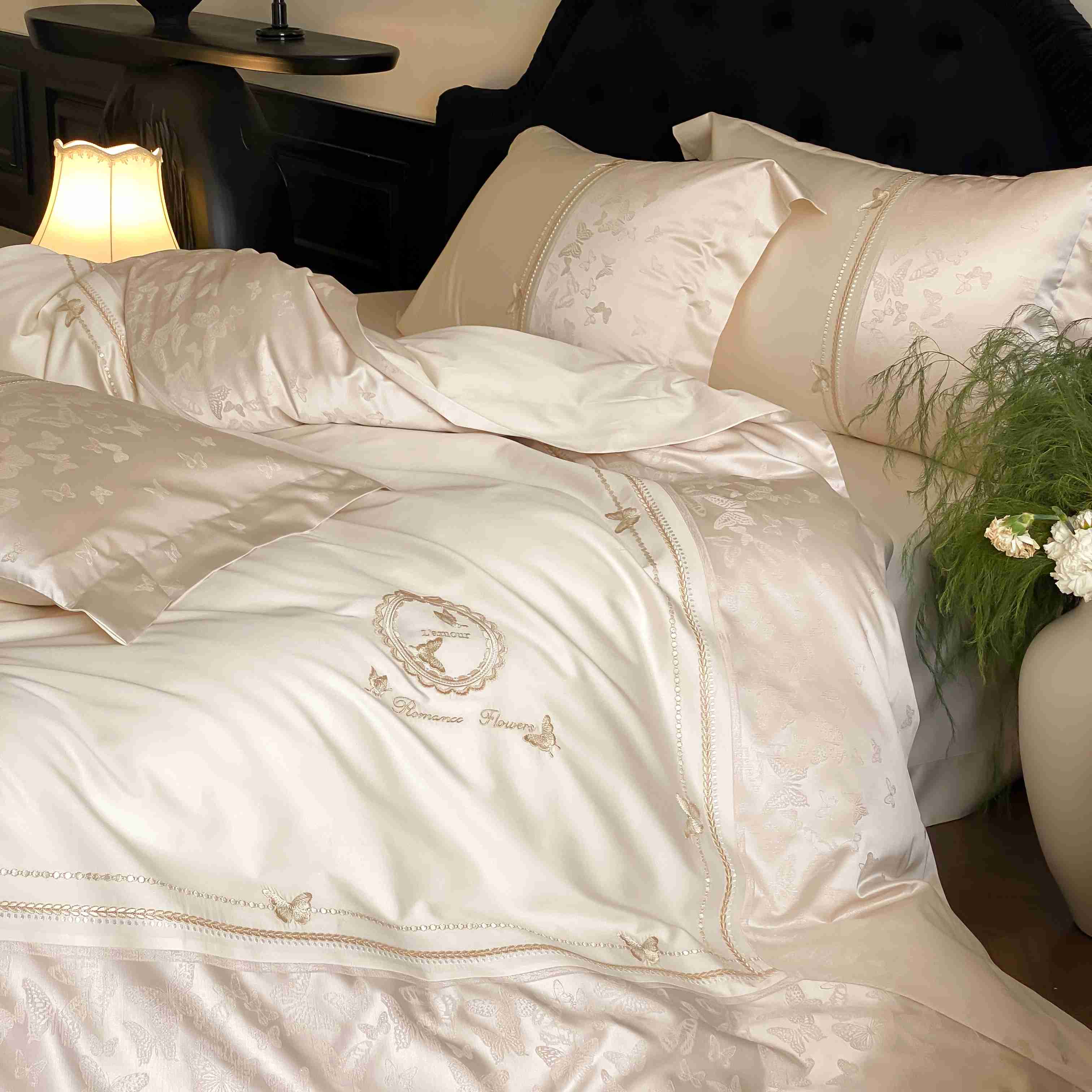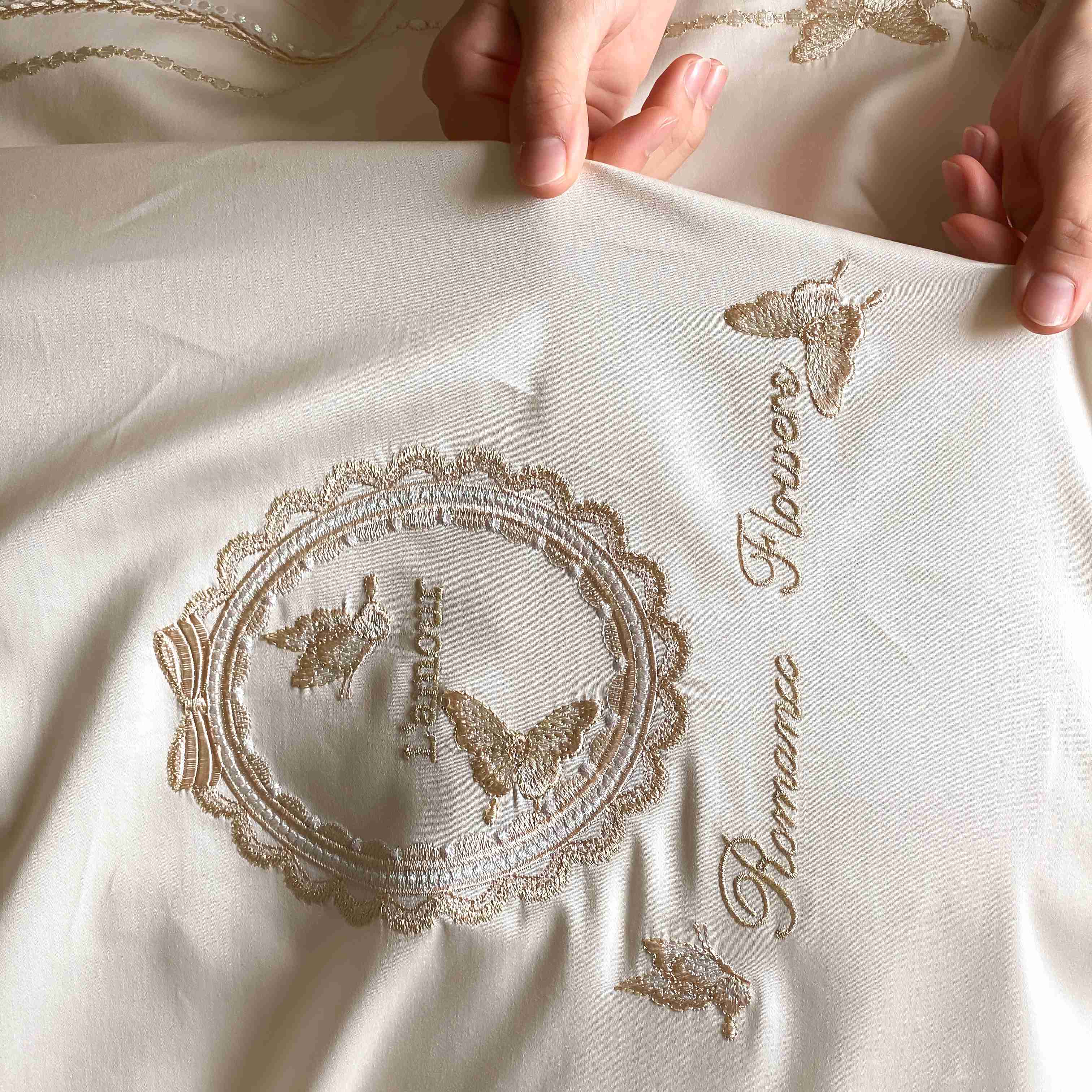 商品名称:太古汇家居 2025新款长绒棉高精密提花+绣花四件套“星辰梦蝶”系列 香槟色