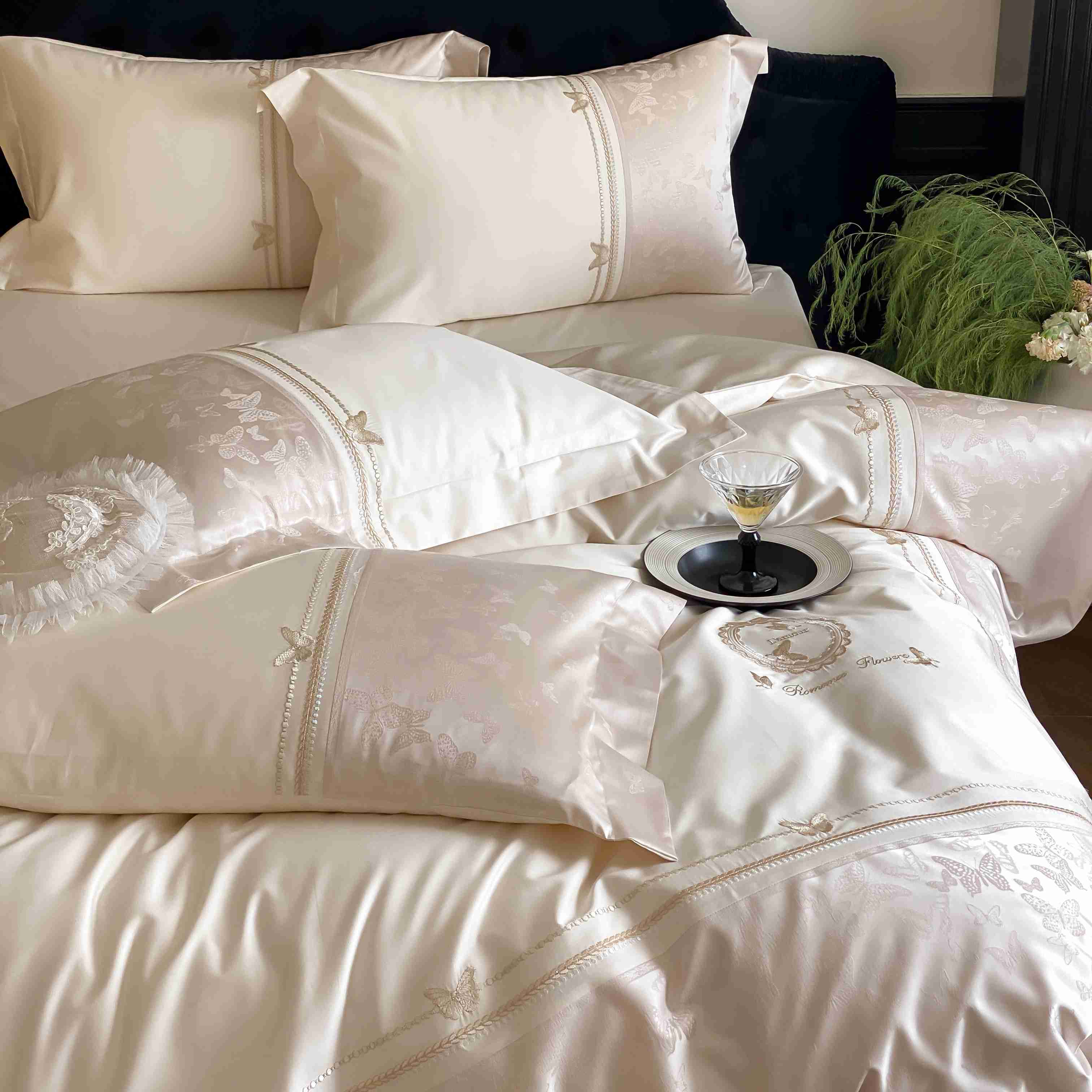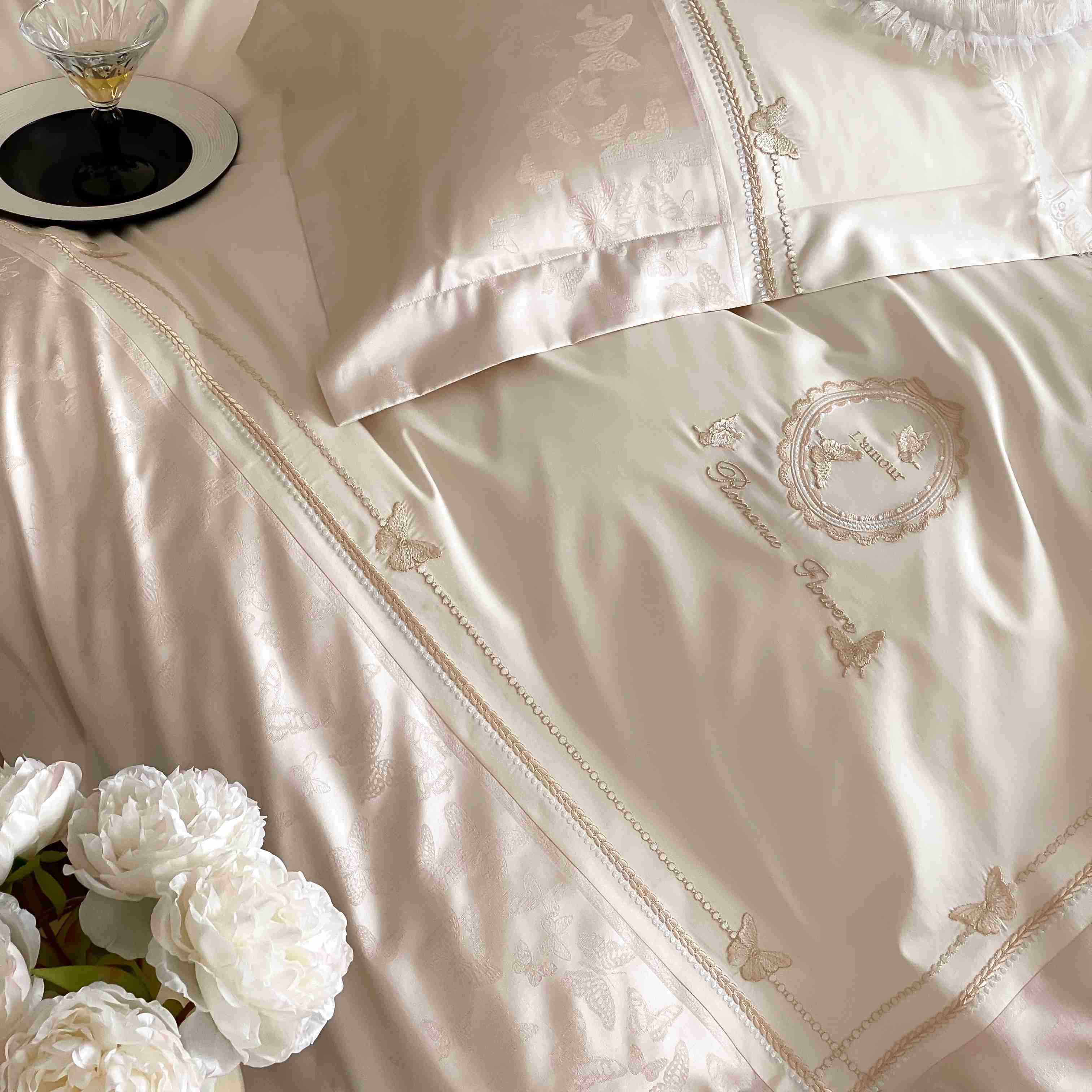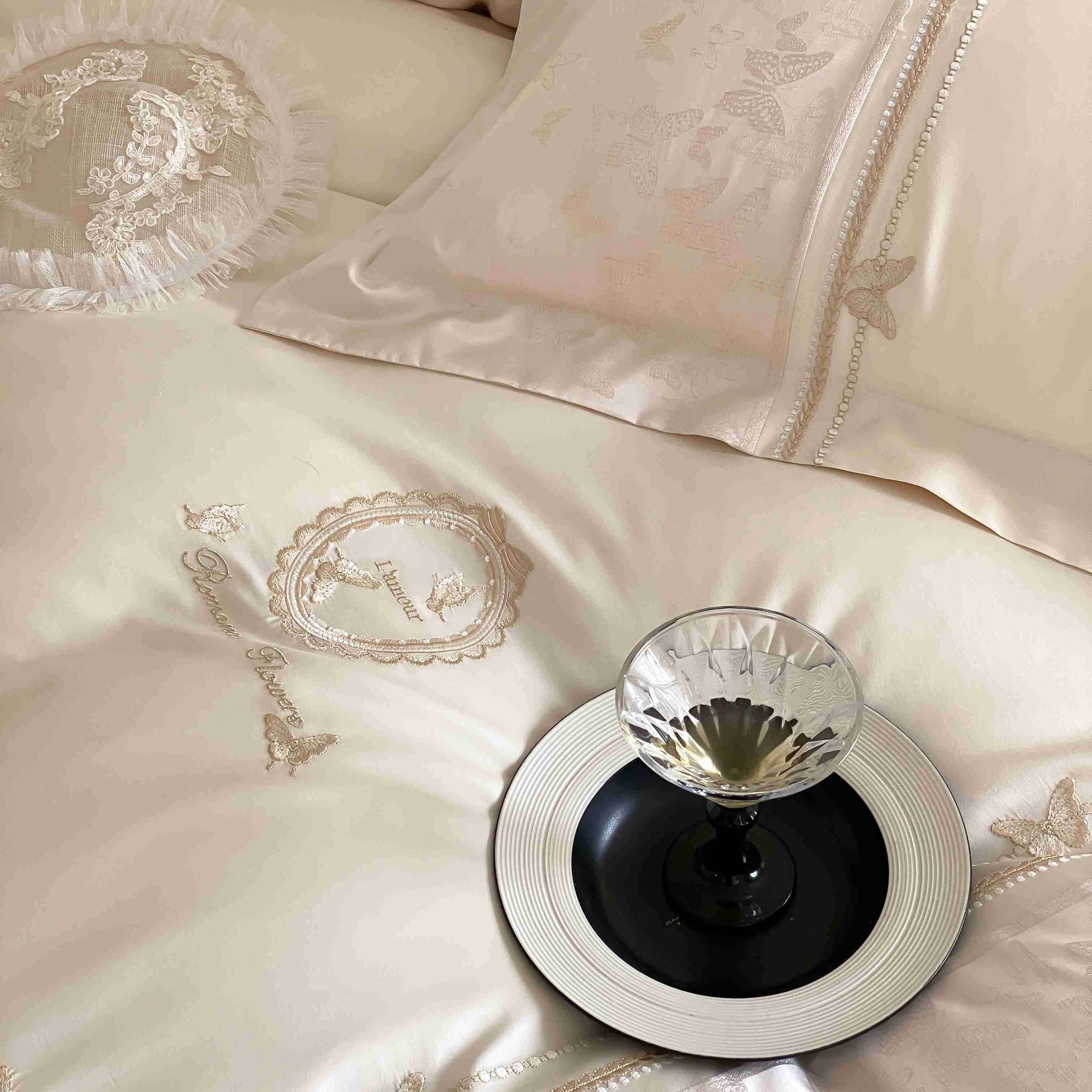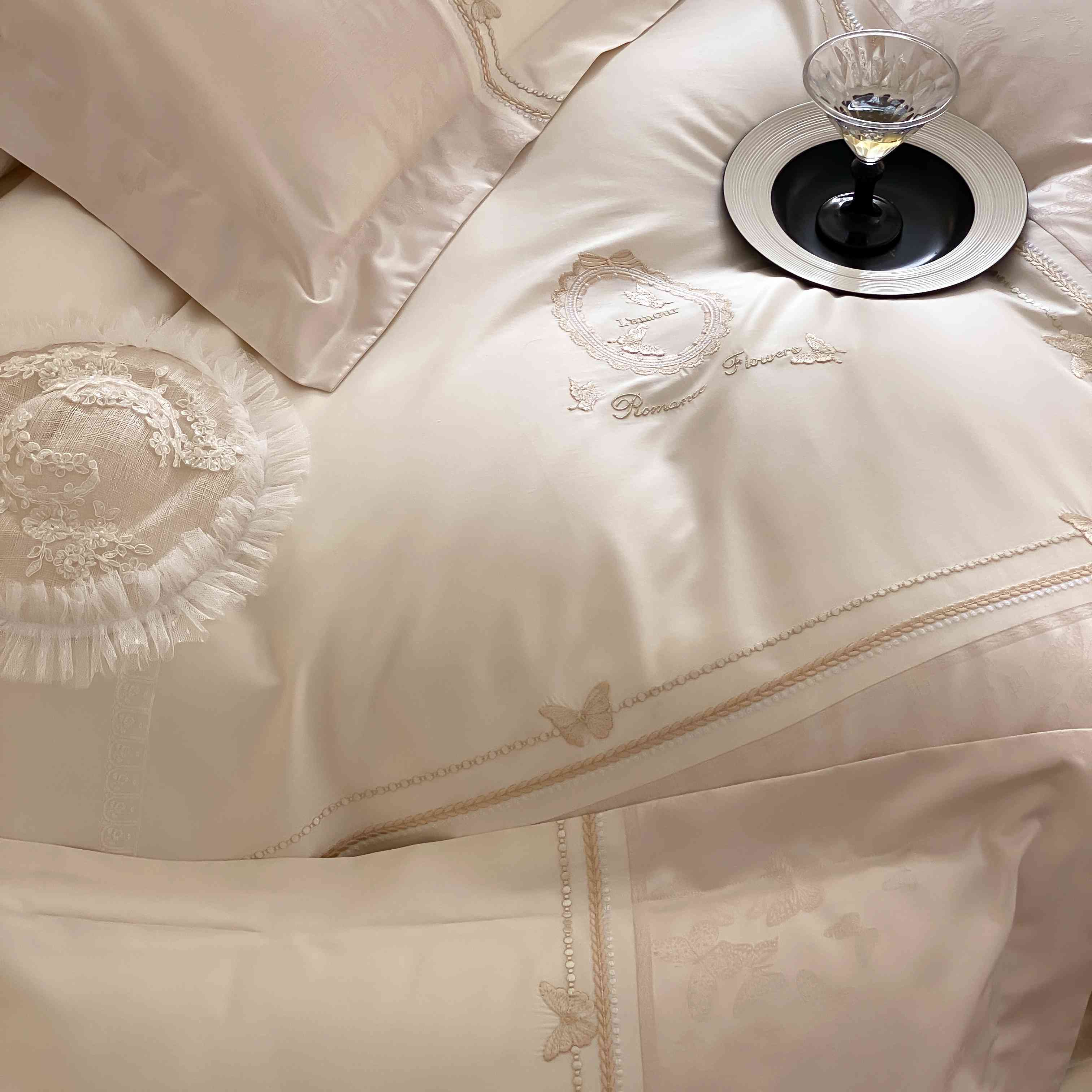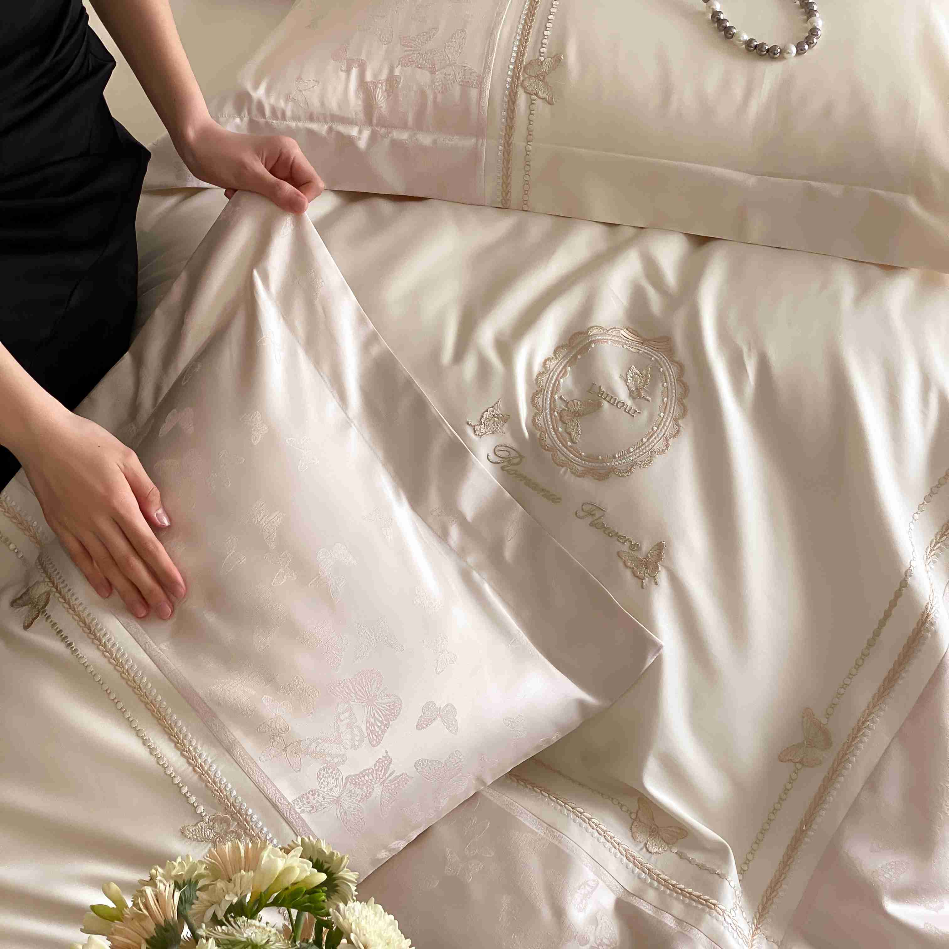商品名称:太古汇家居 2025新款长绒棉高精密提花+绣花四件套“星辰梦蝶”系列 香槟色