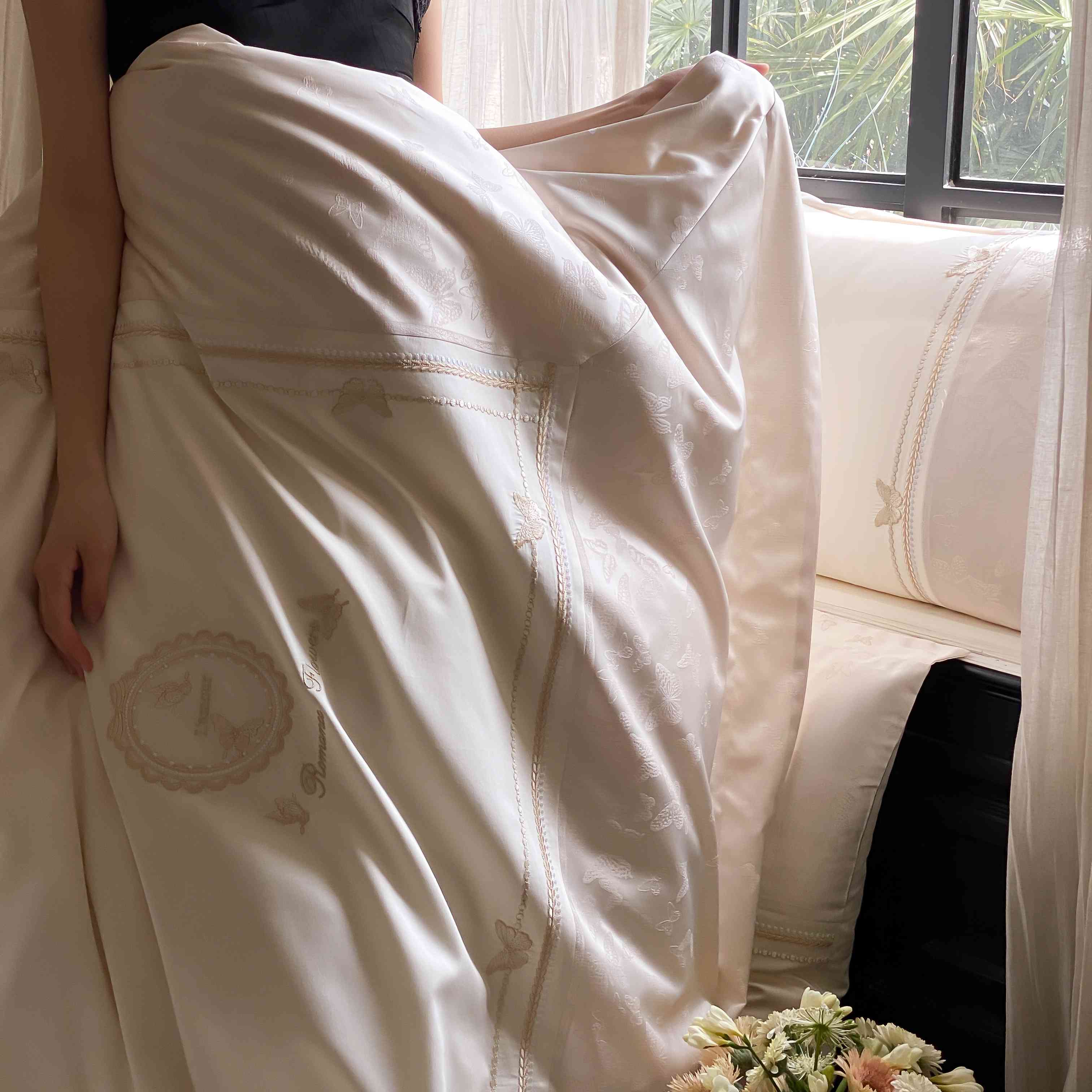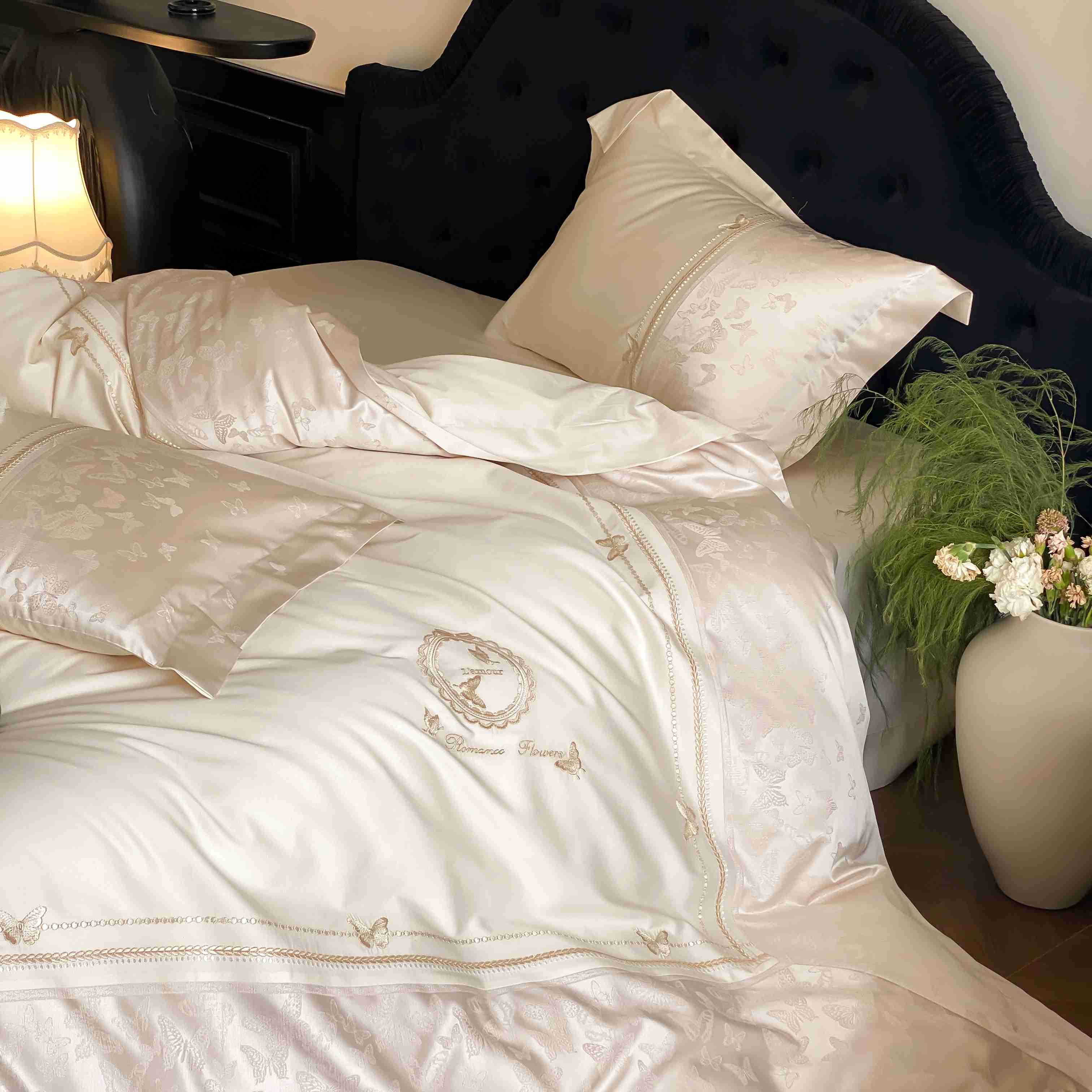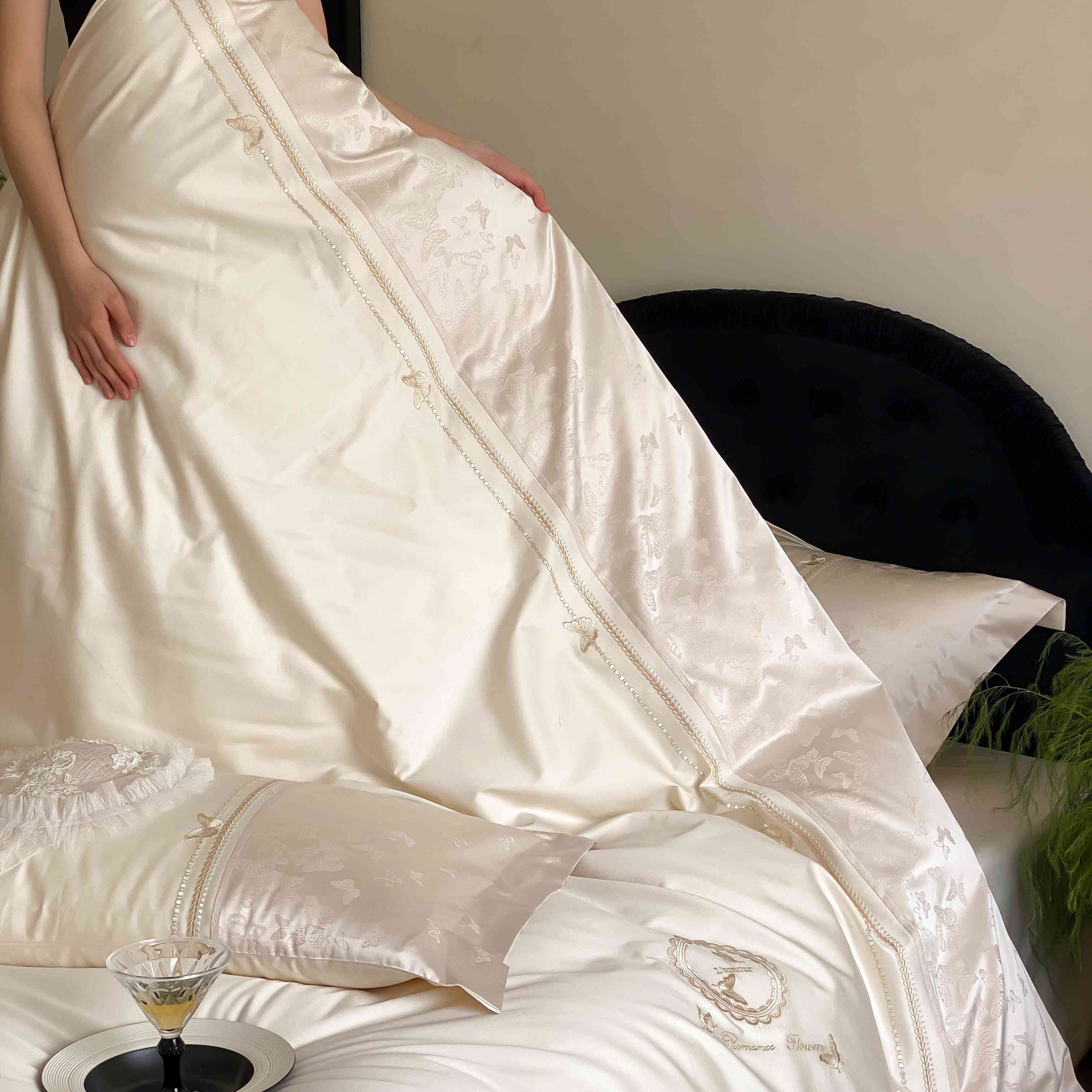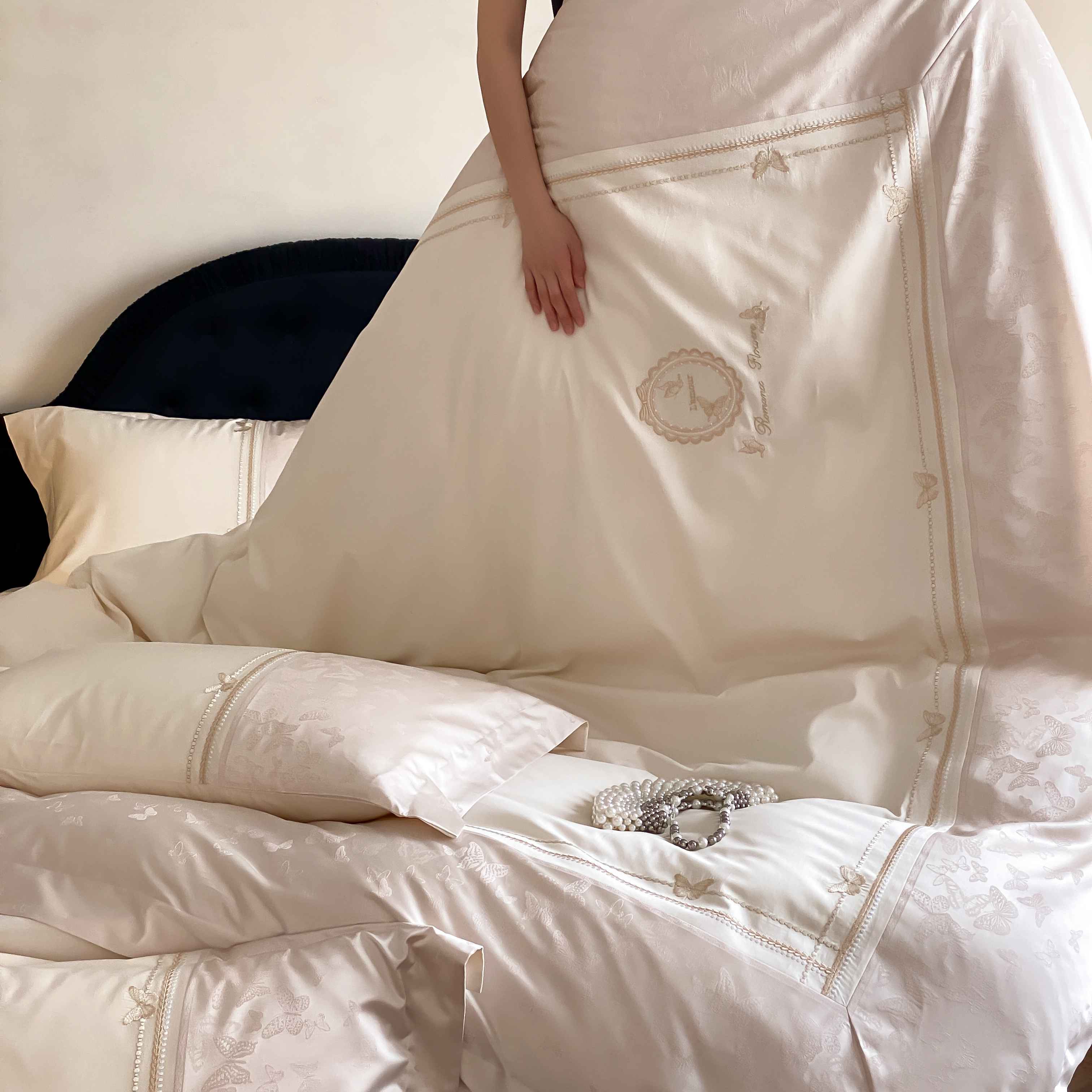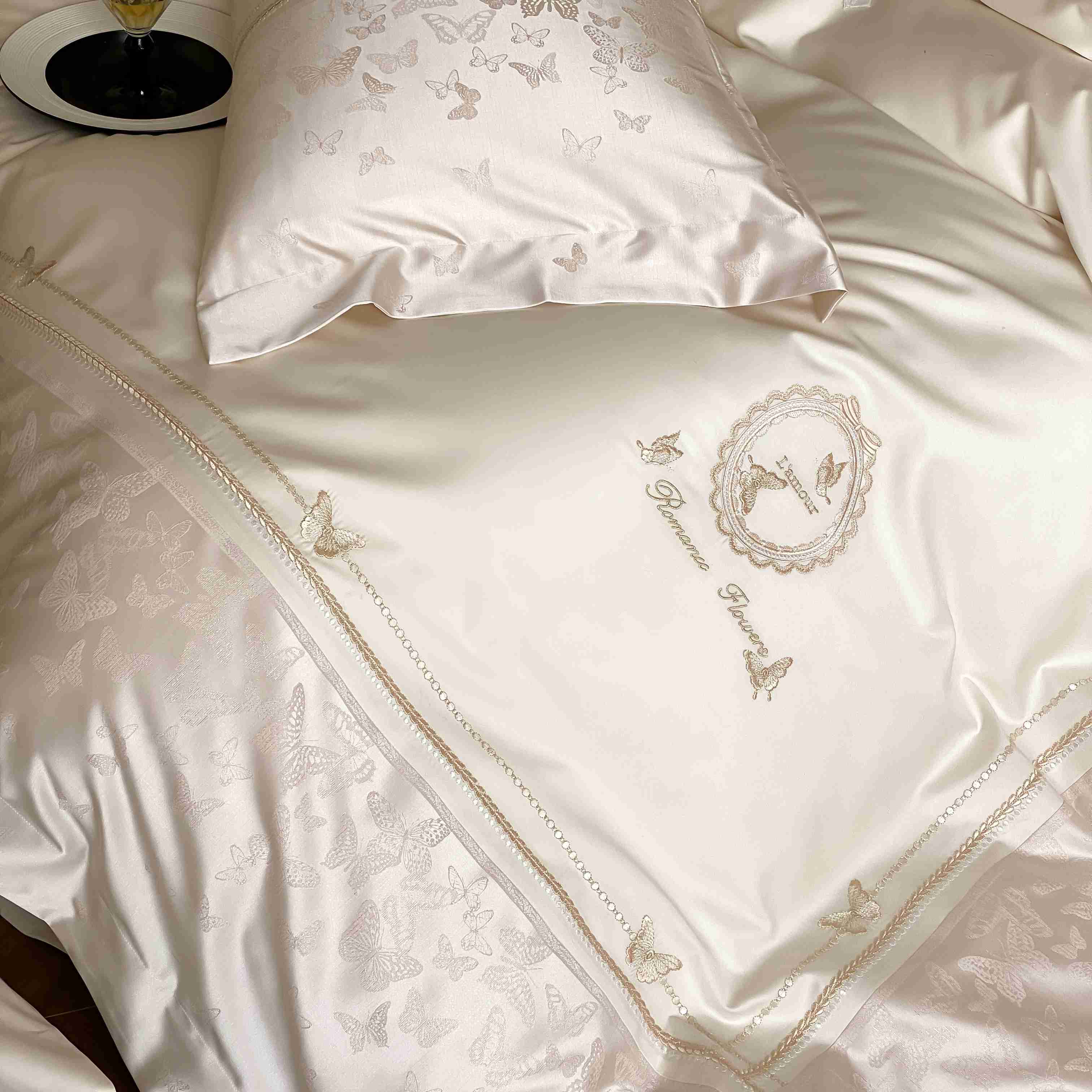 商品名称:太古汇家居 2025新款长绒棉高精密提花+绣花四件套“星辰梦蝶”系列 香槟色