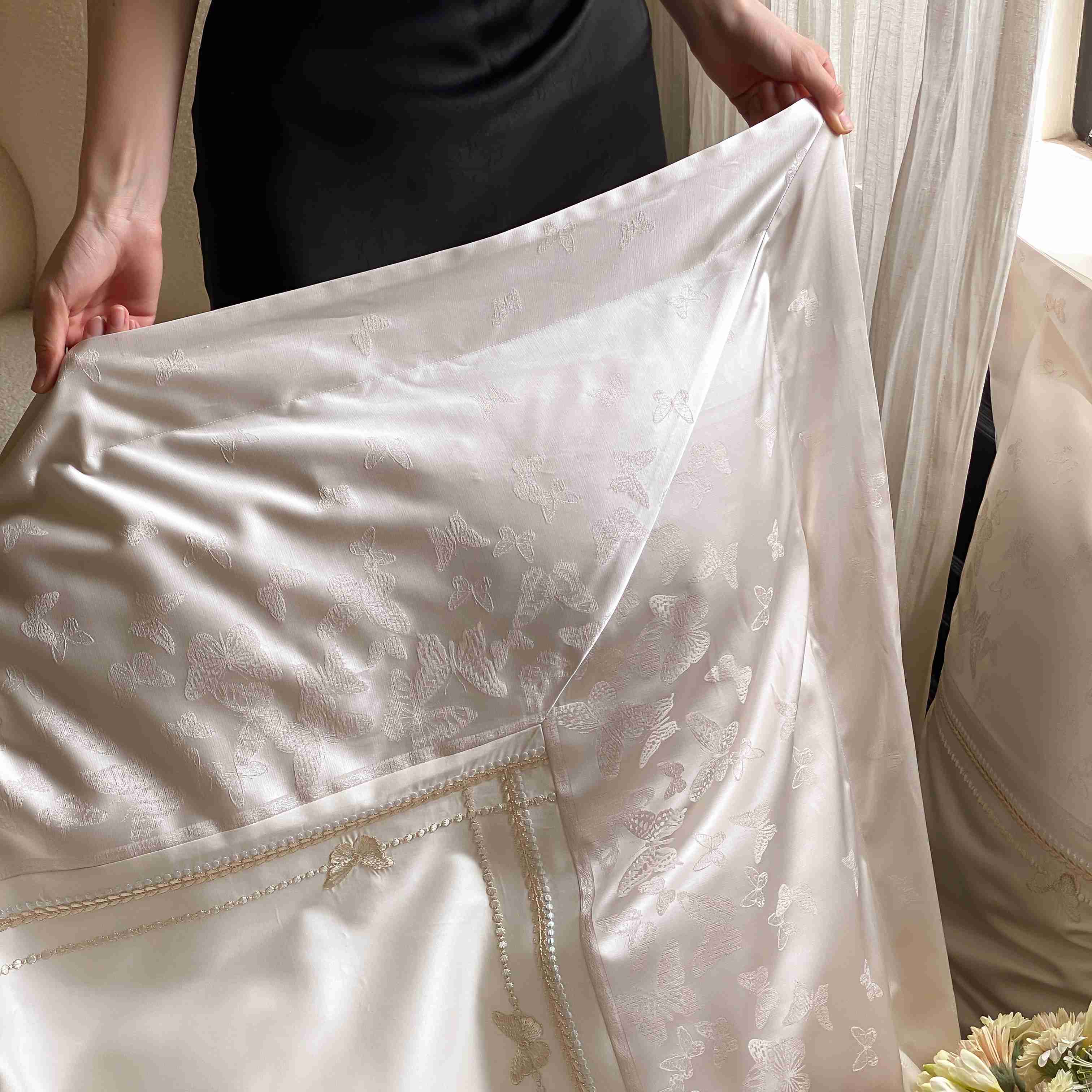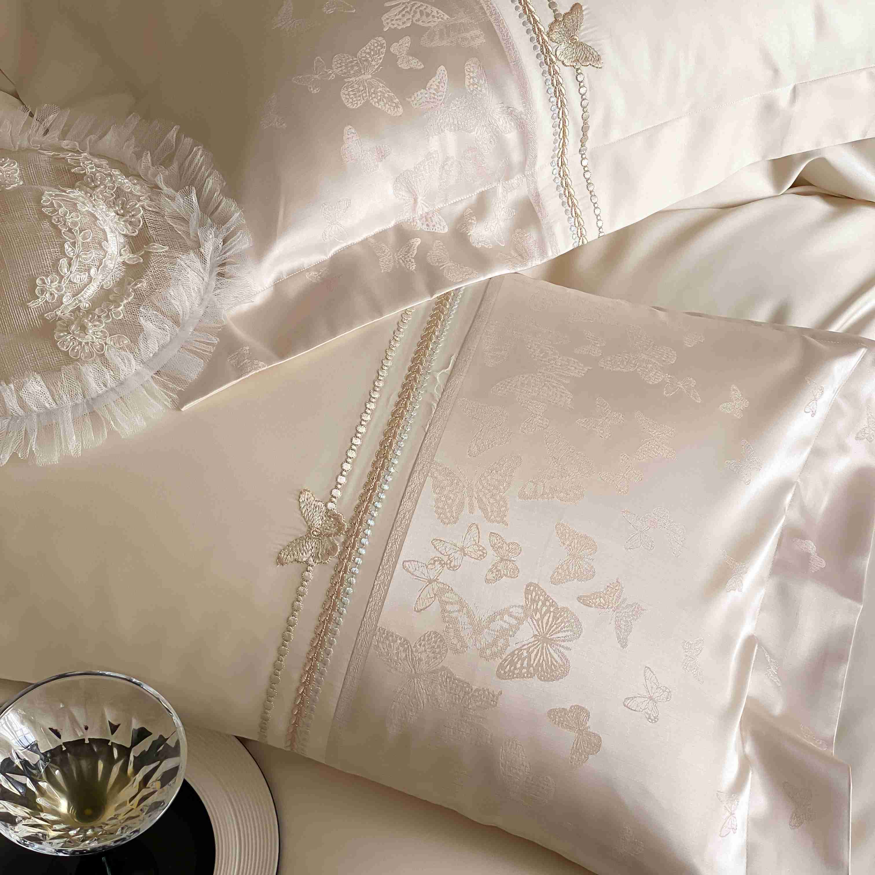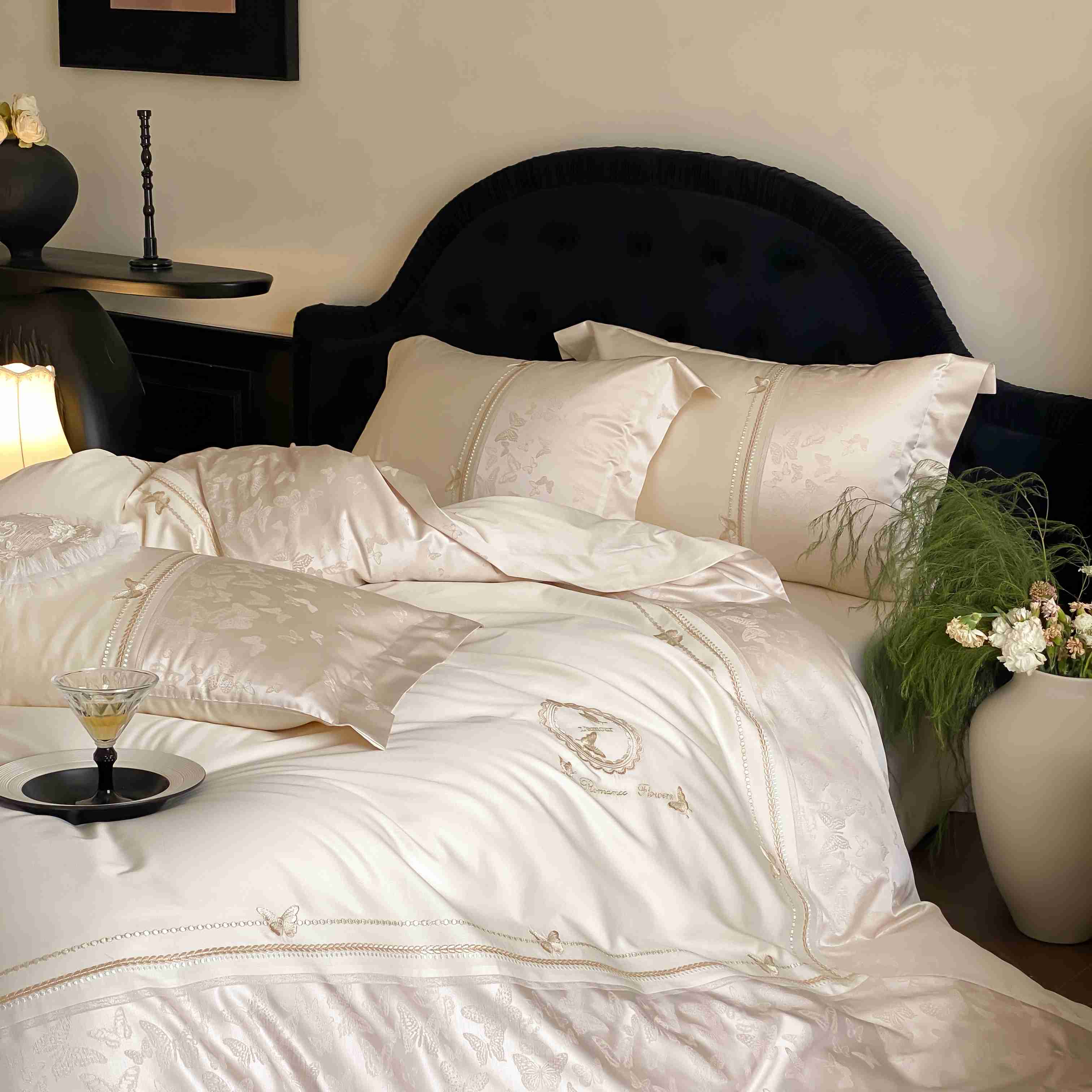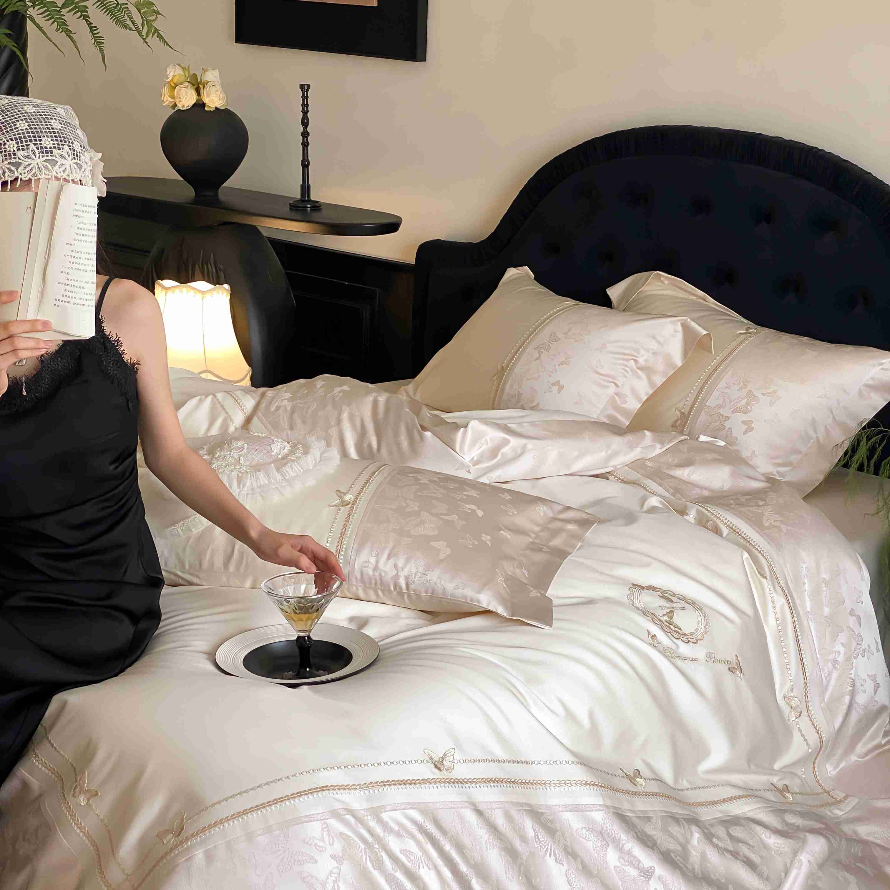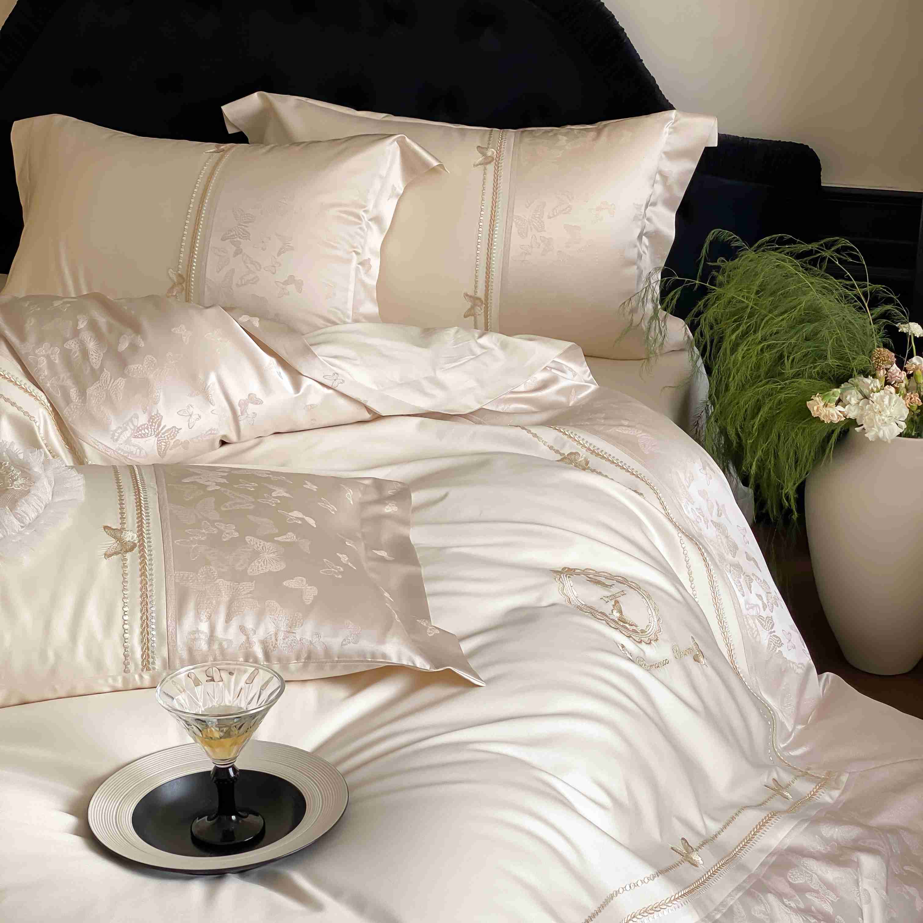 商品名称:太古汇家居 2025新款长绒棉高精密提花+绣花四件套“星辰梦蝶”系列 香槟色