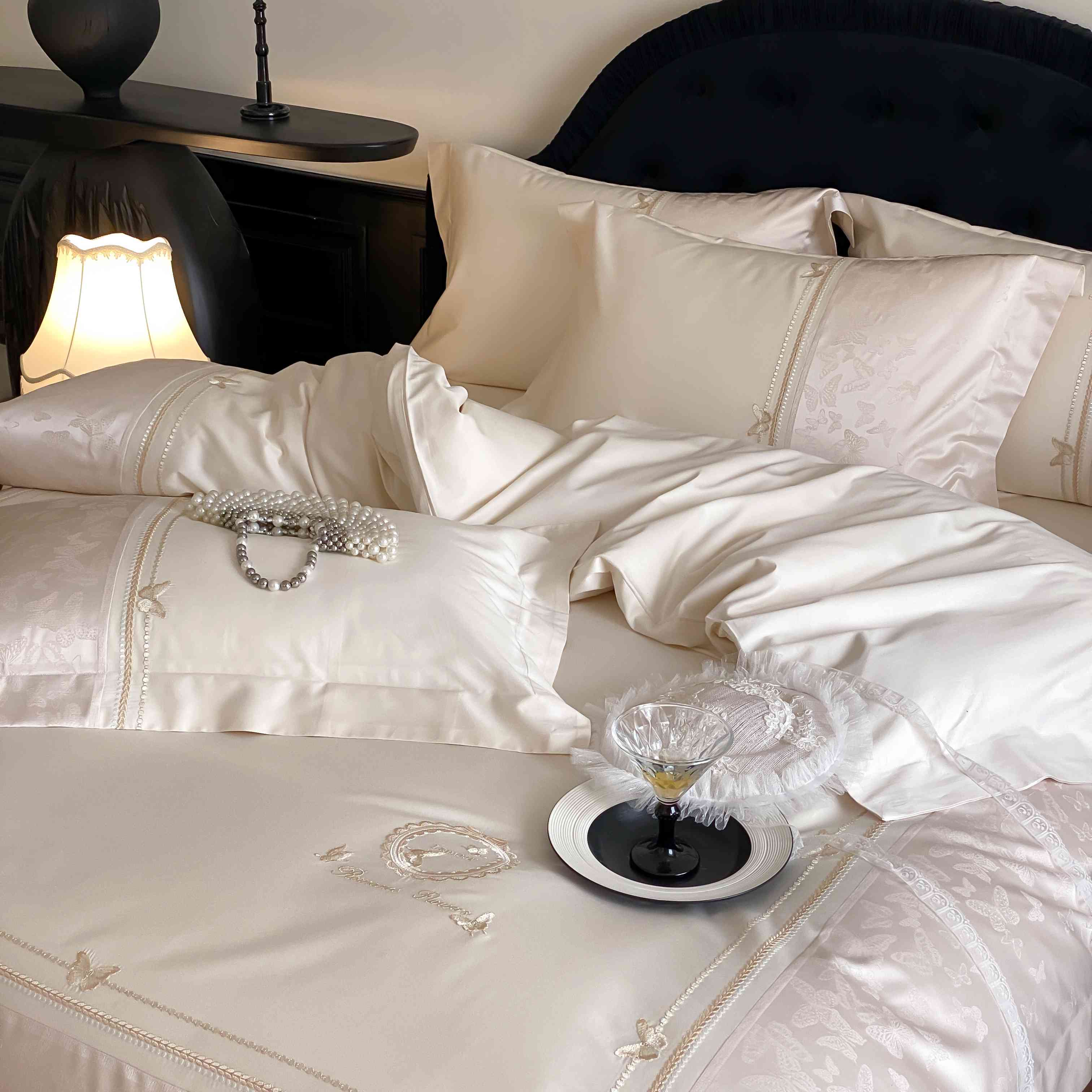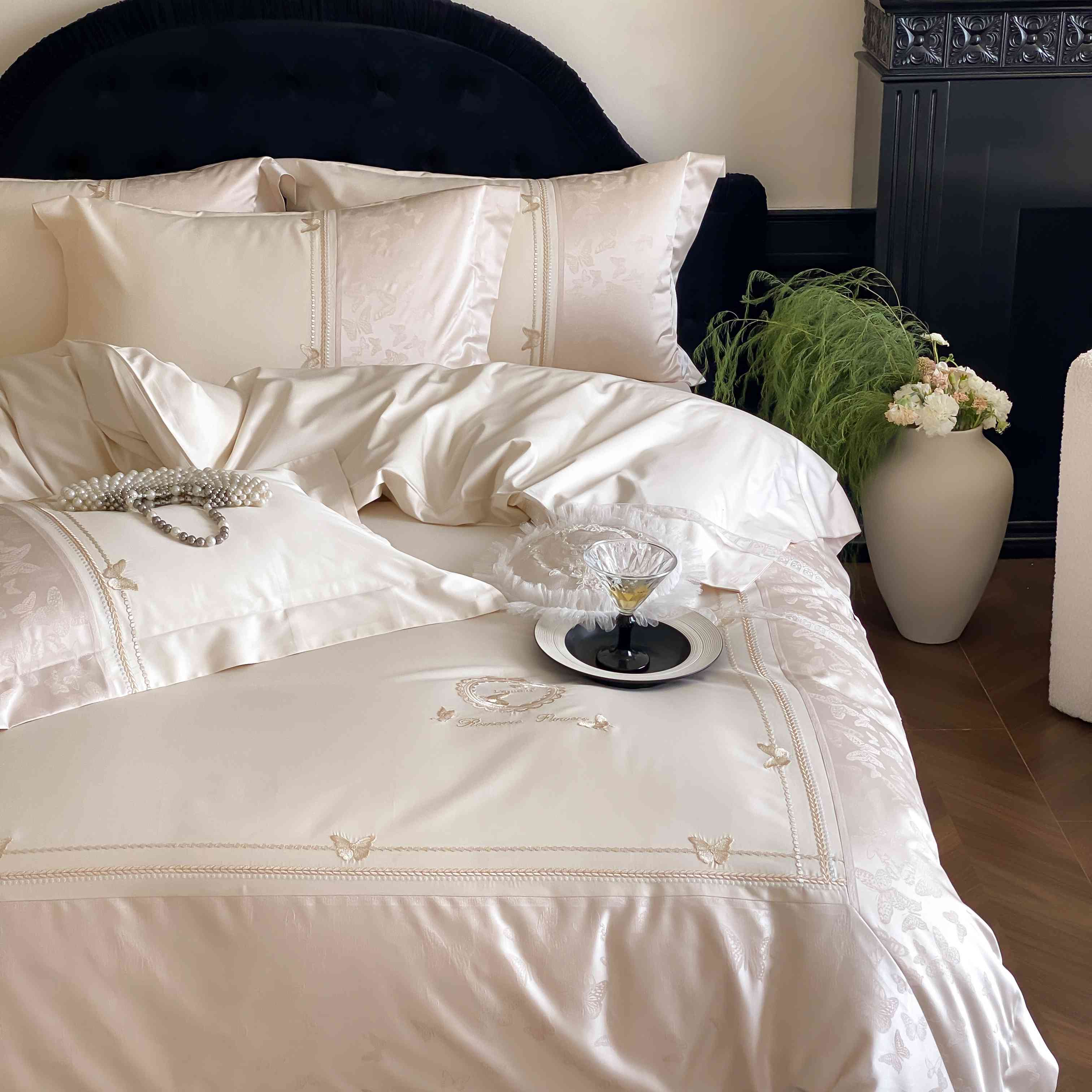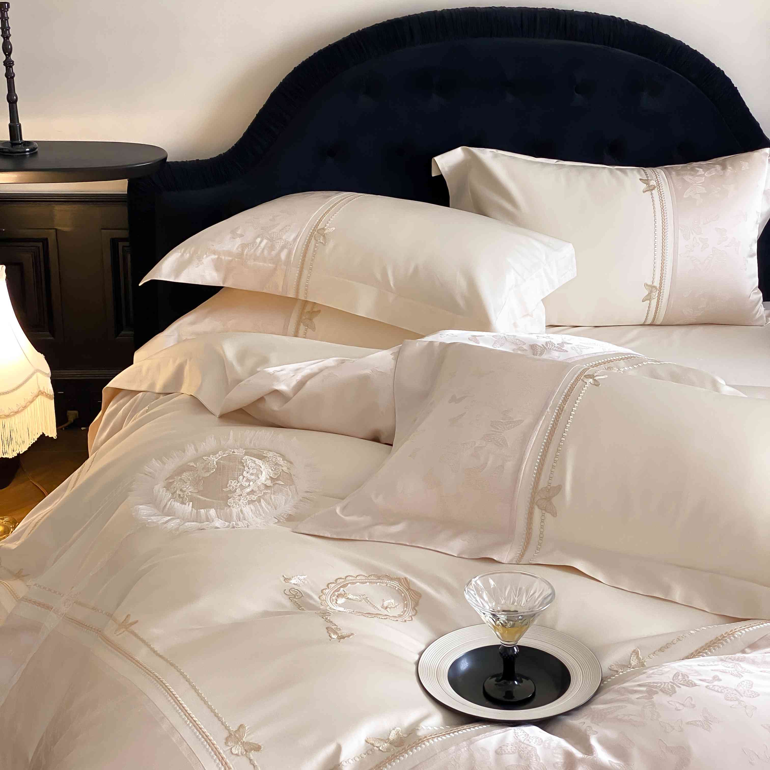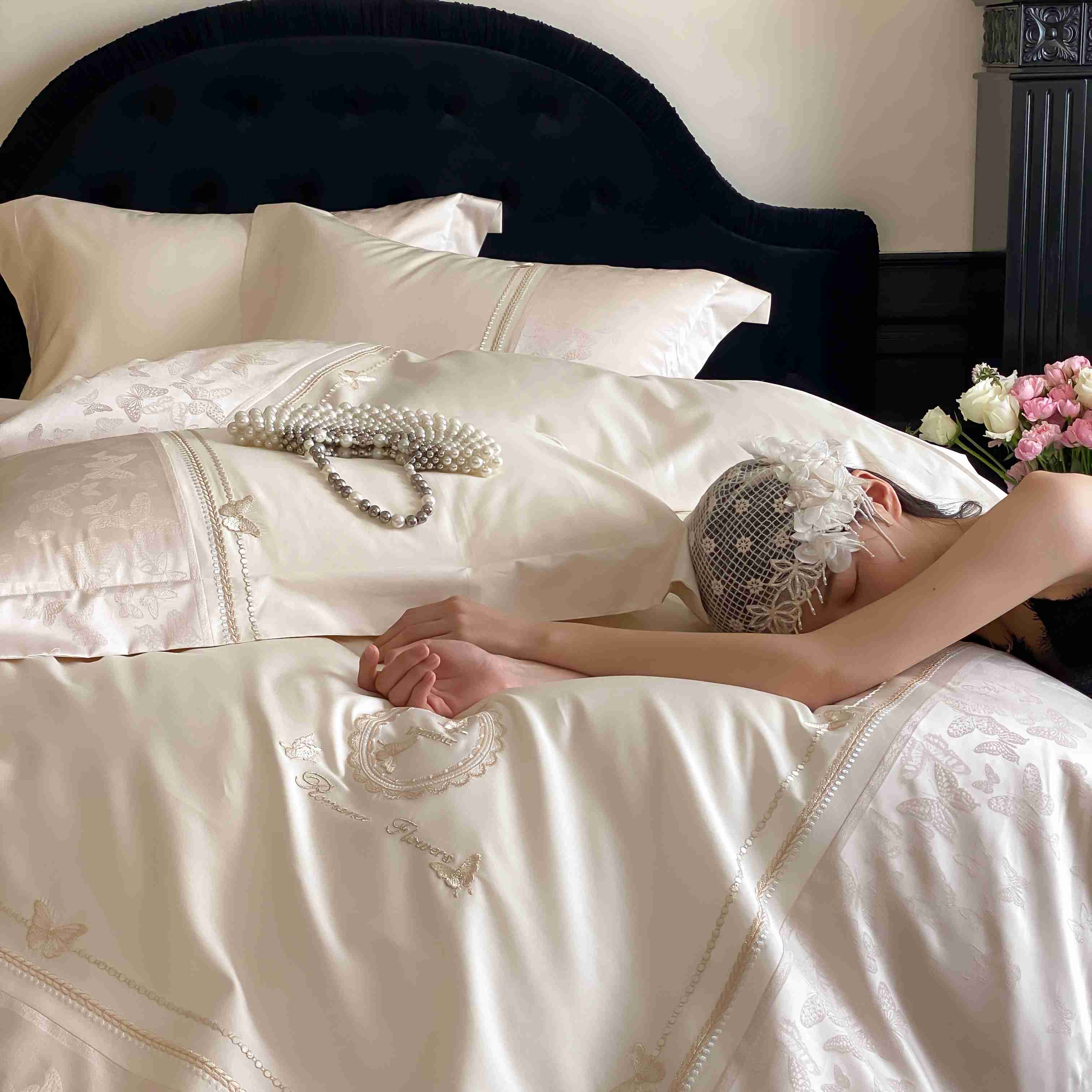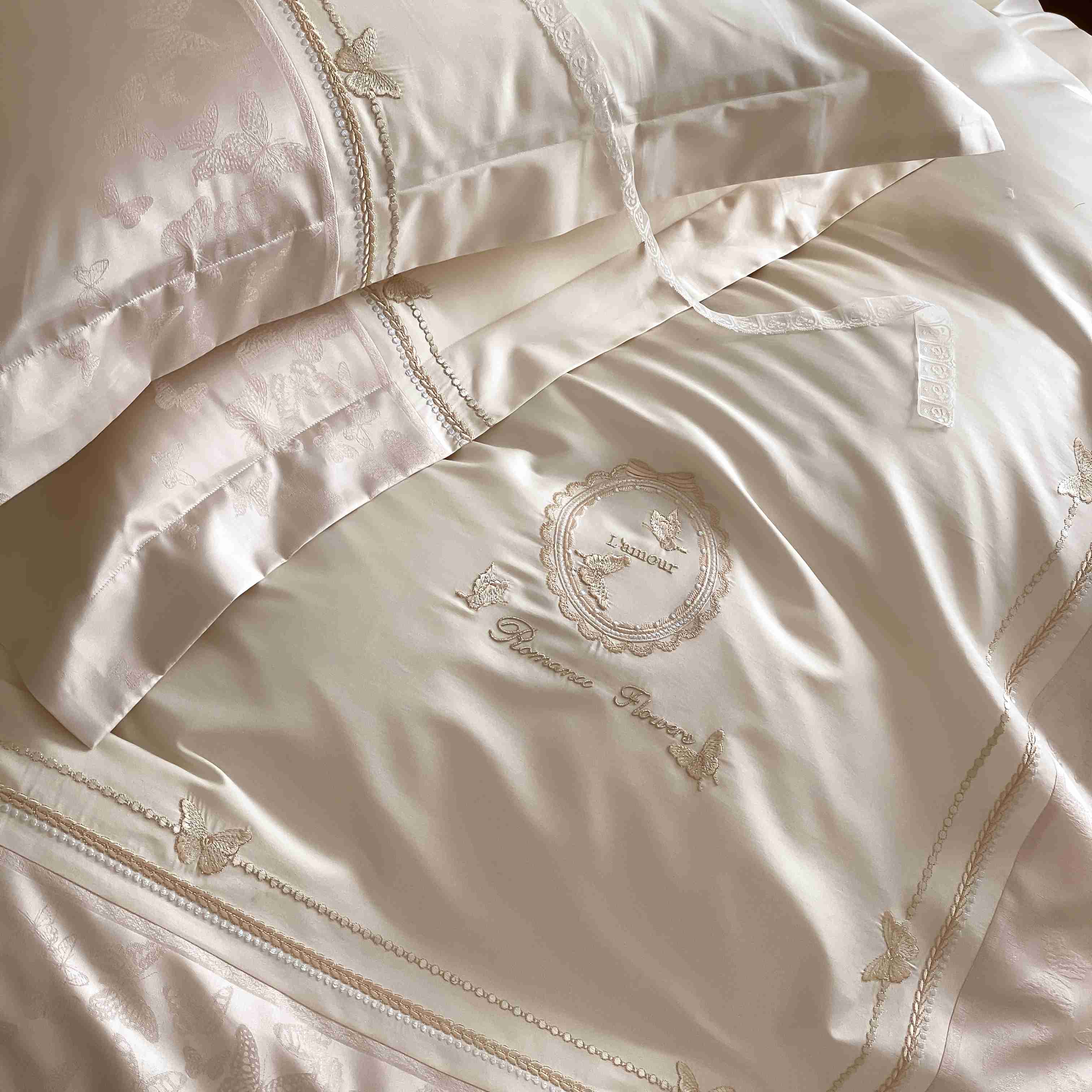 商品名称:太古汇家居 2025新款长绒棉高精密提花+绣花四件套“星辰梦蝶”系列 香槟色