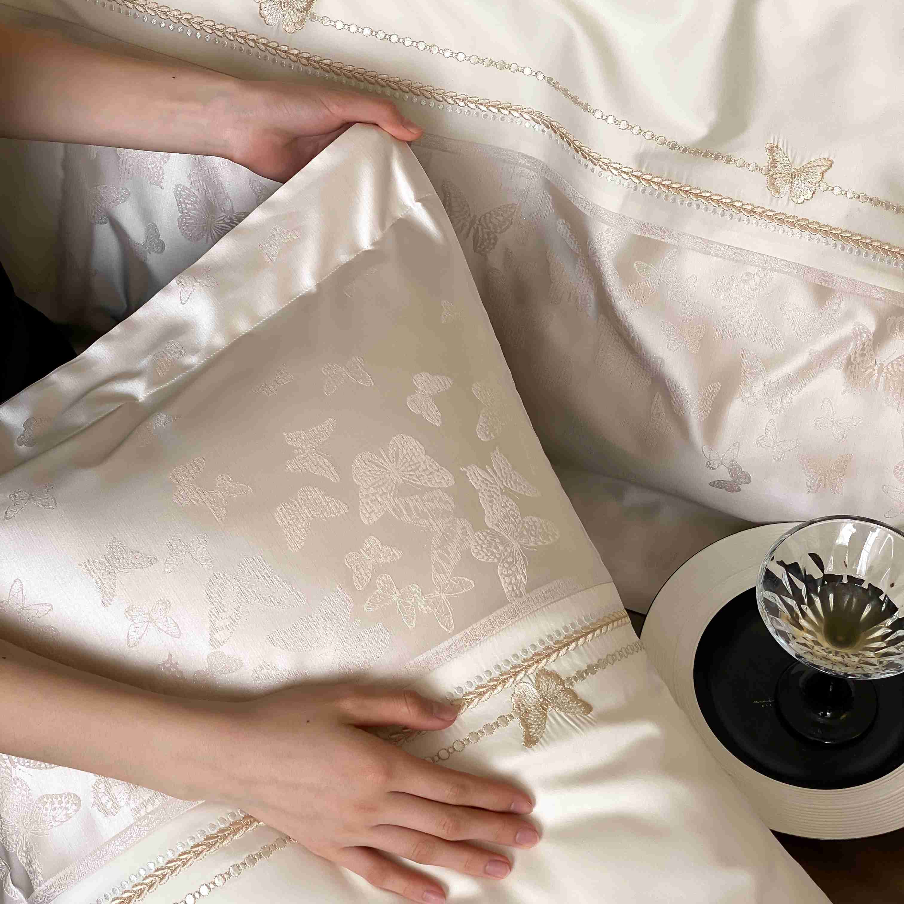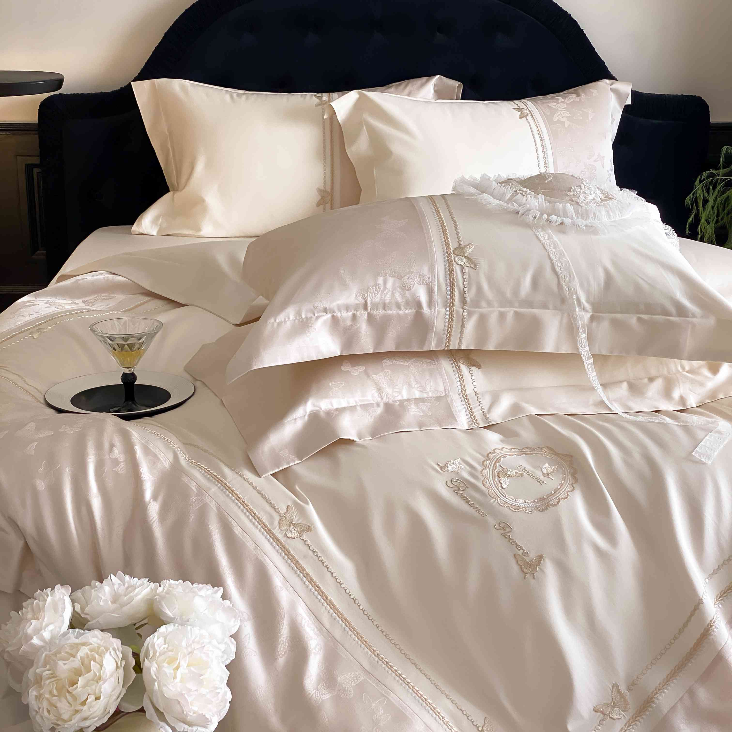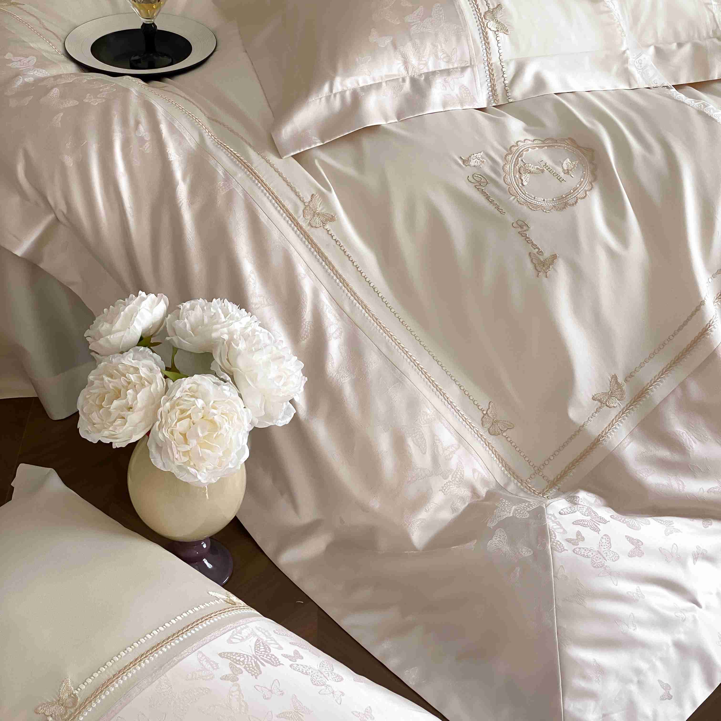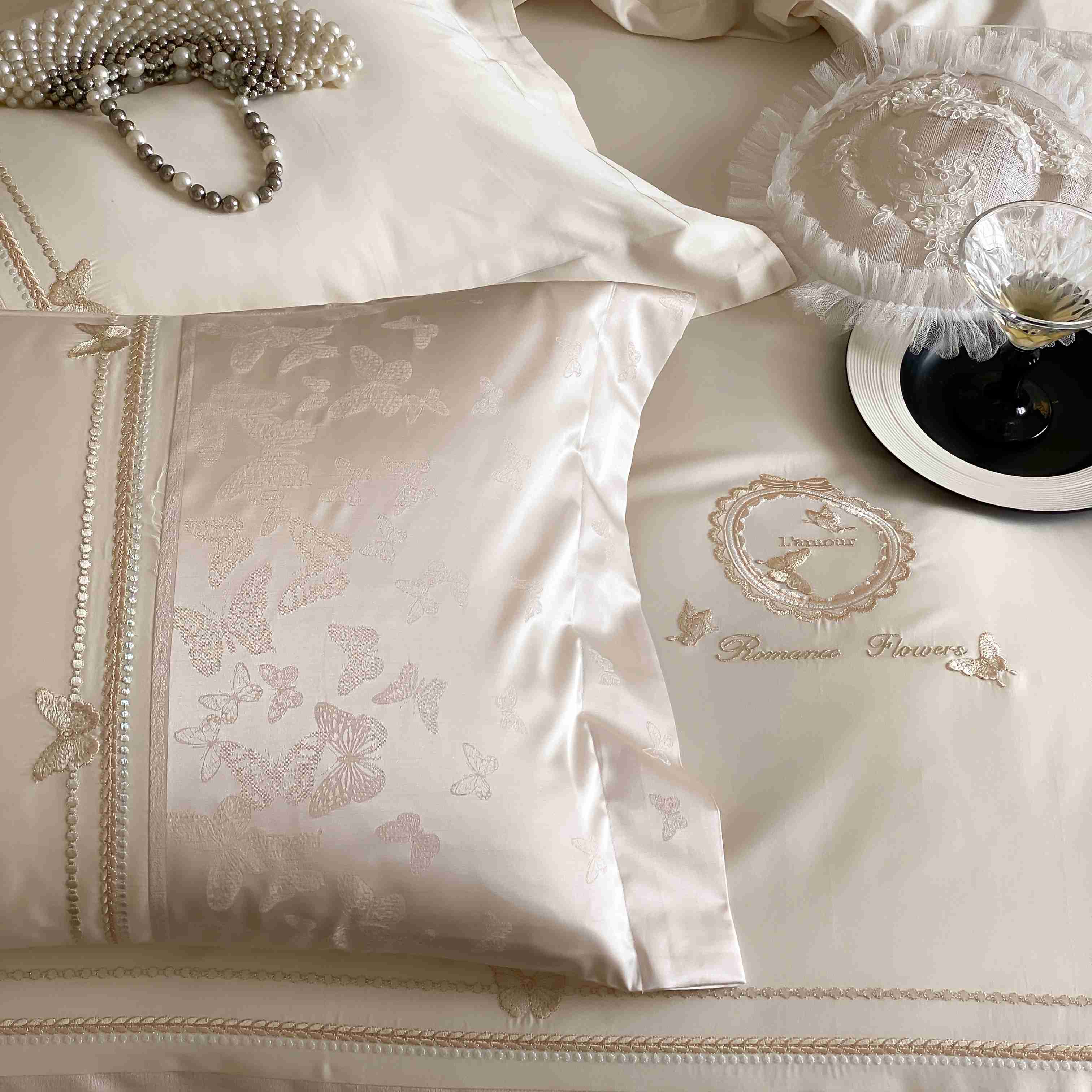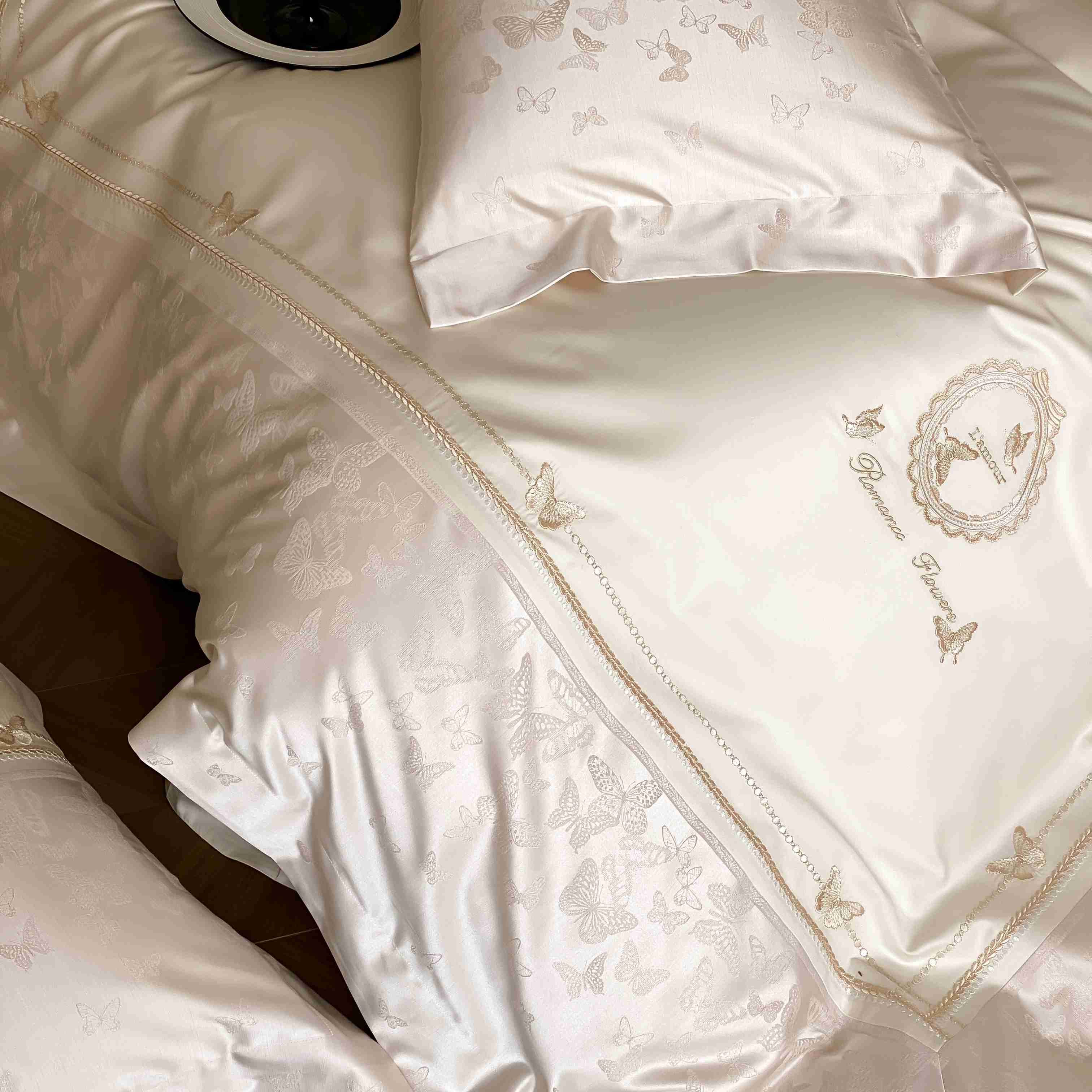 商品名称:太古汇家居 2025新款长绒棉高精密提花+绣花四件套“星辰梦蝶”系列 香槟色