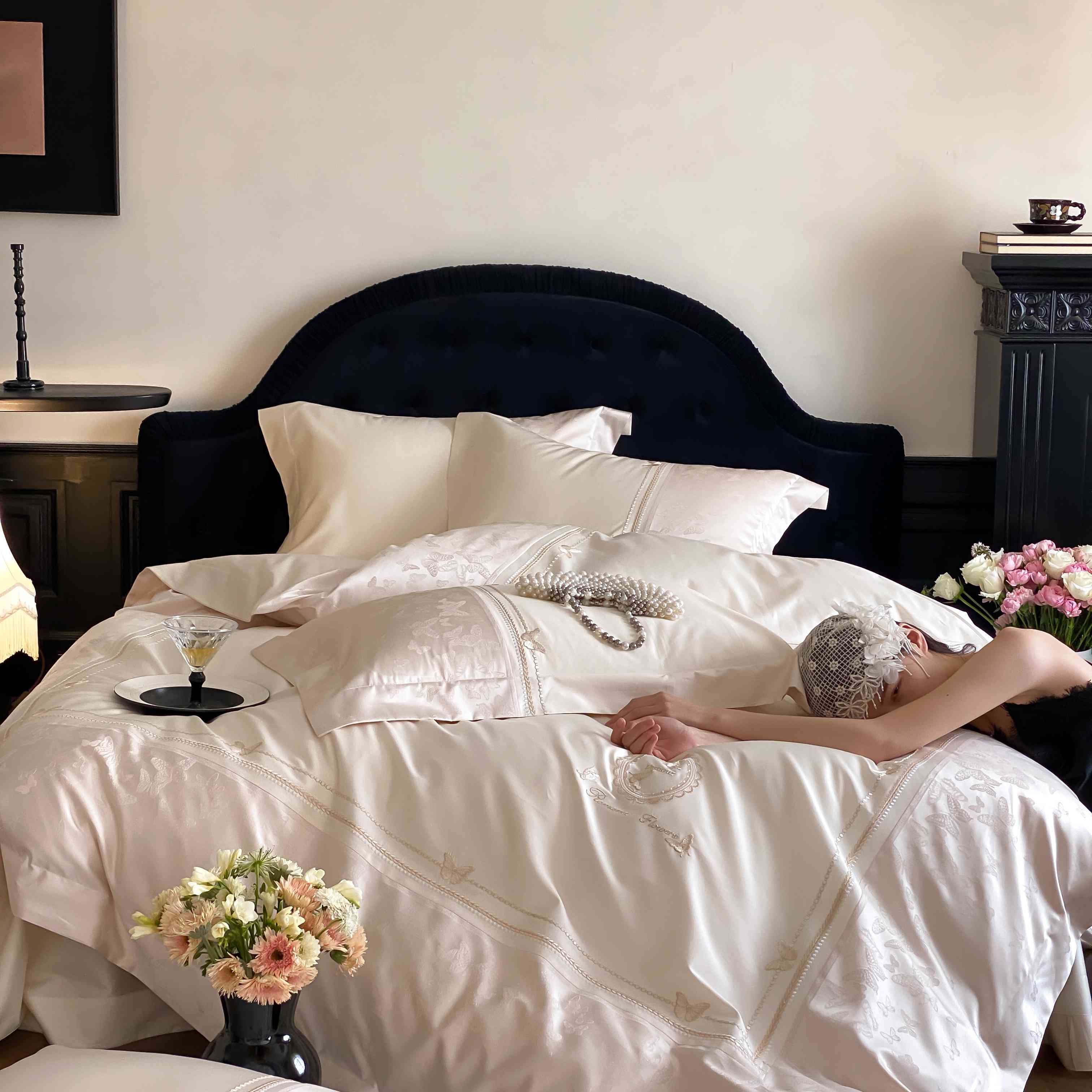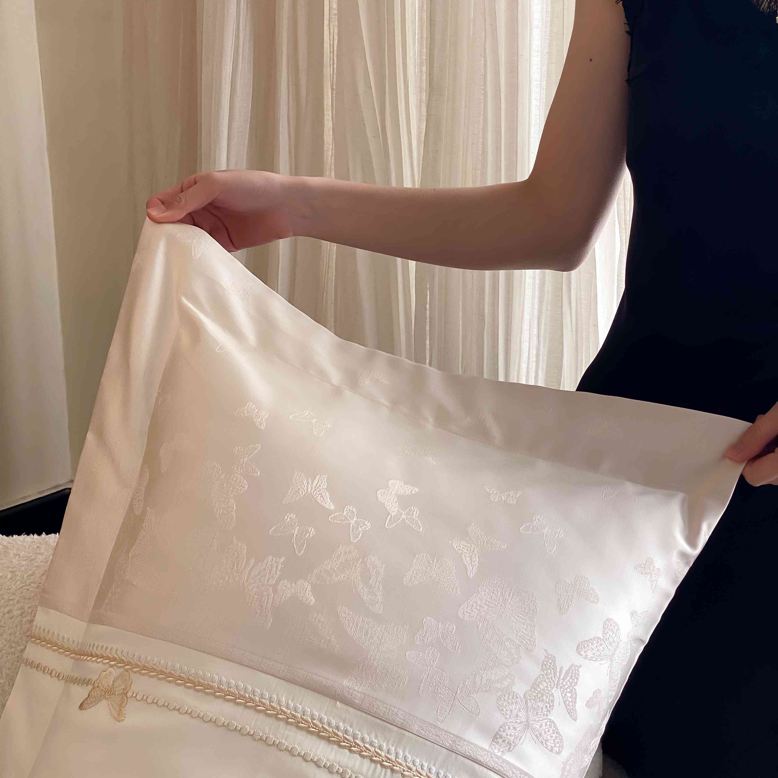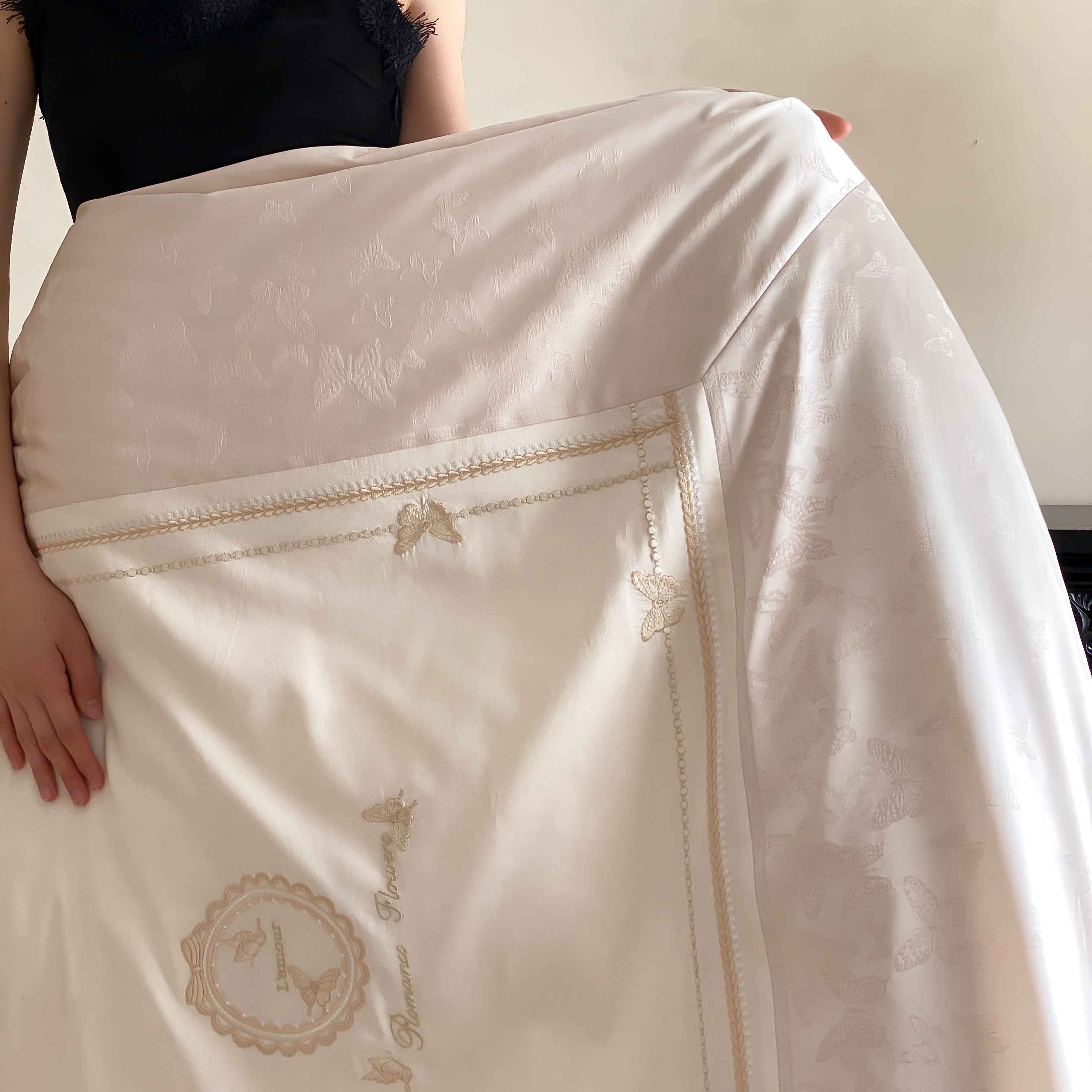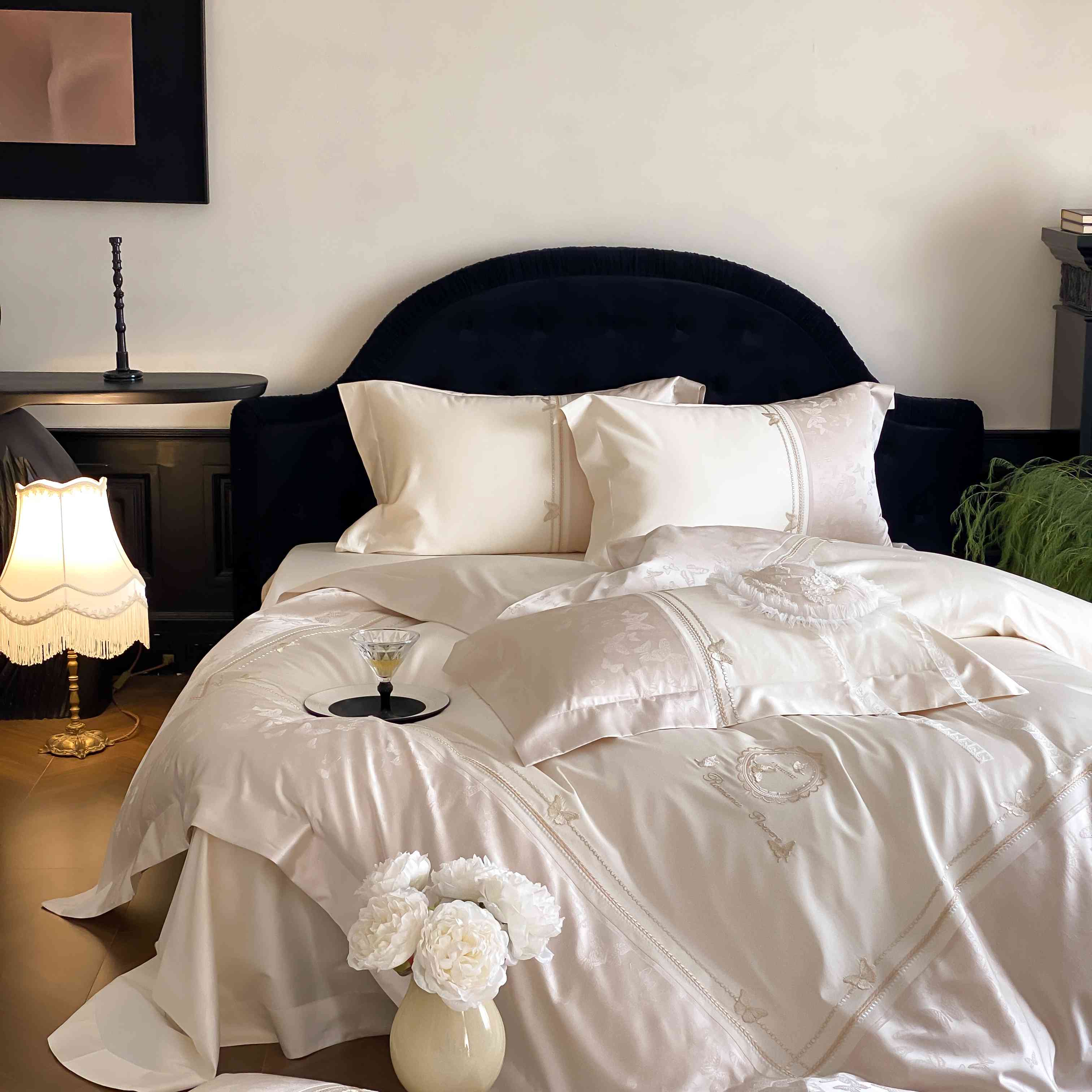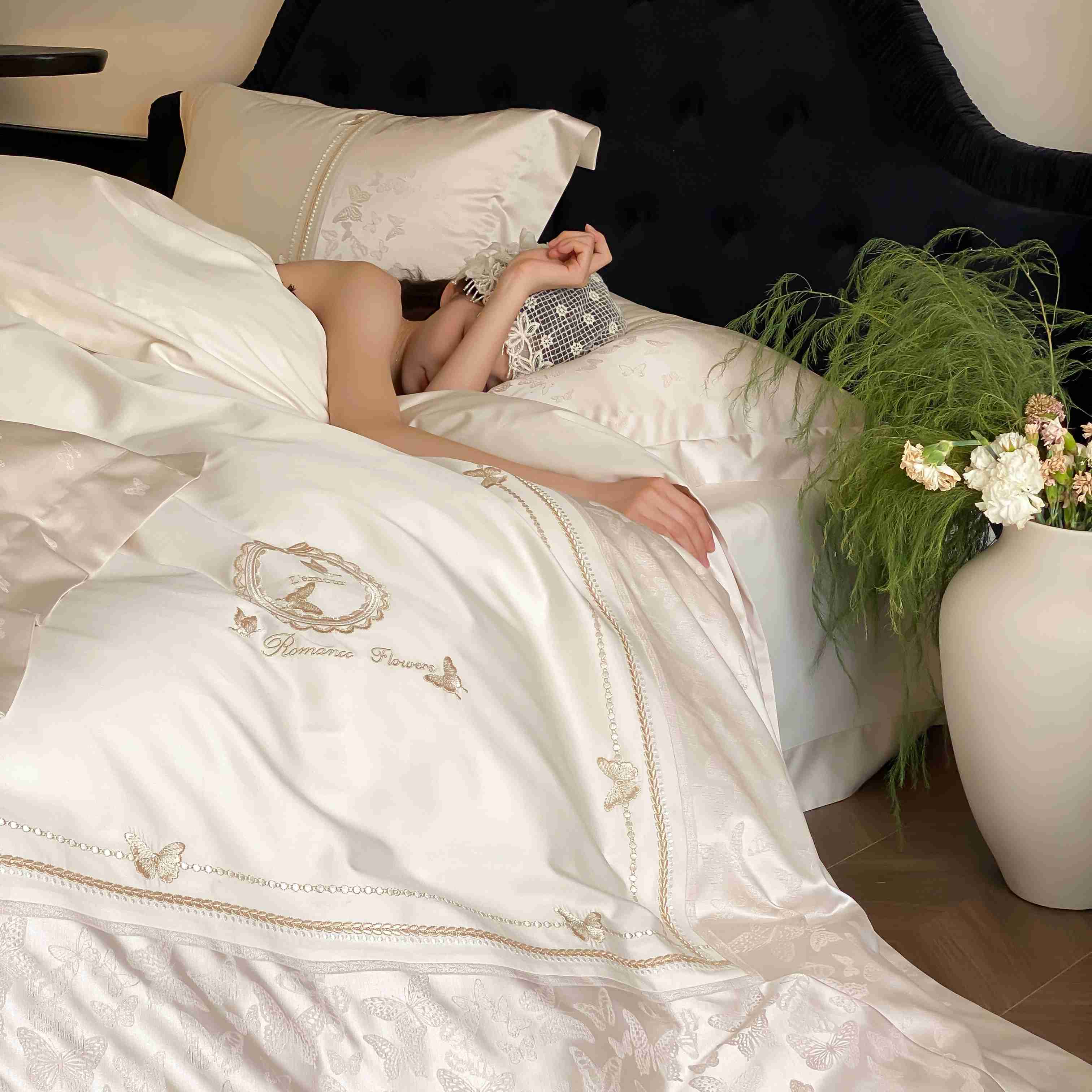 商品名称:太古汇家居 2025新款长绒棉高精密提花+绣花四件套“星辰梦蝶”系列 香槟色