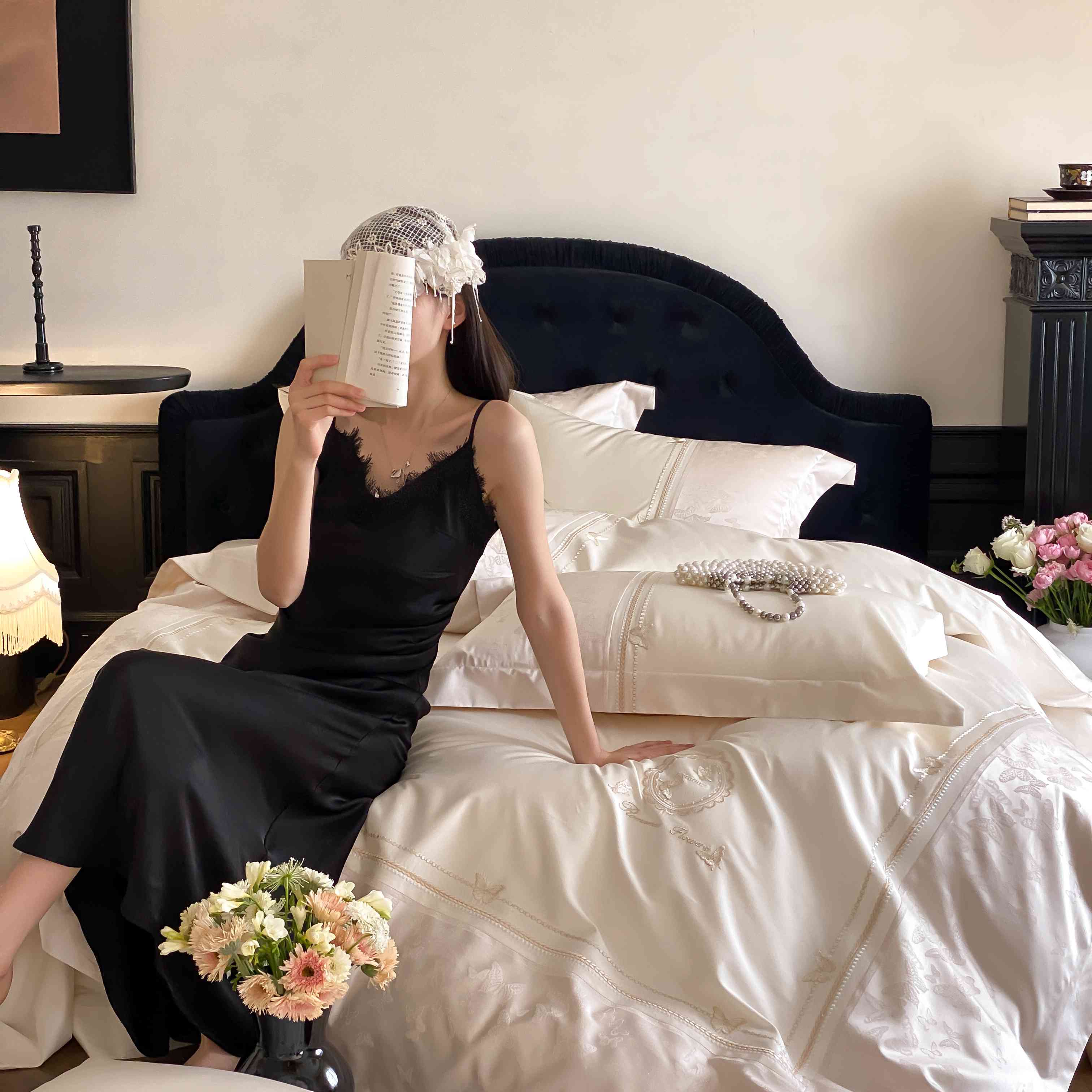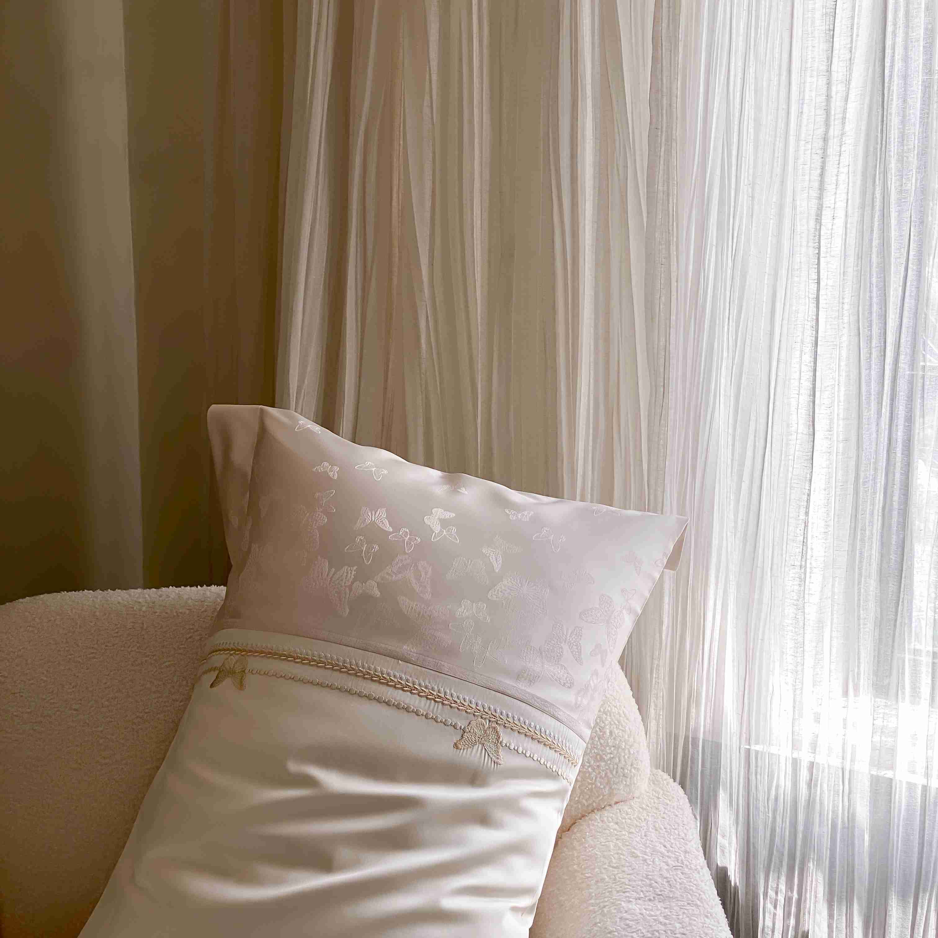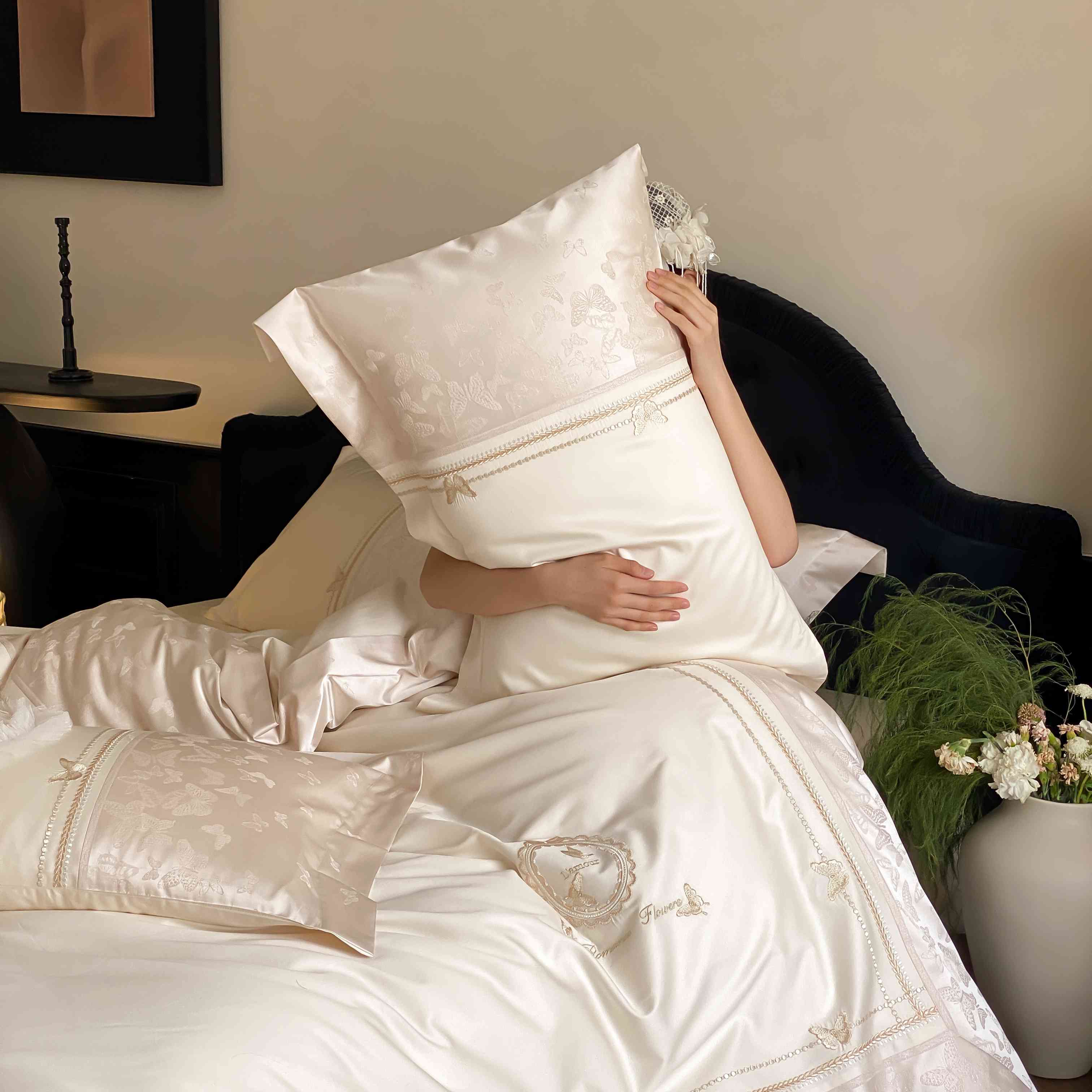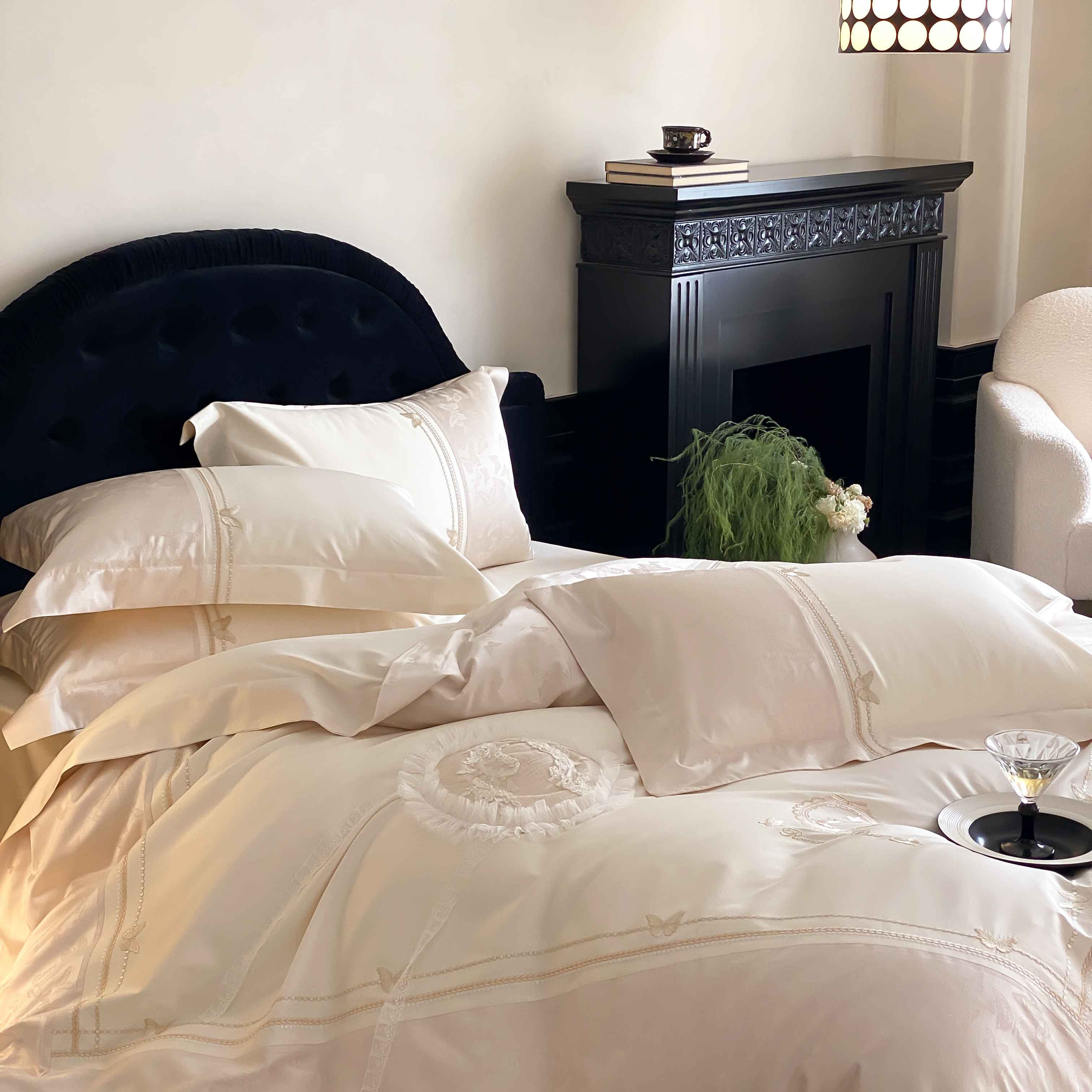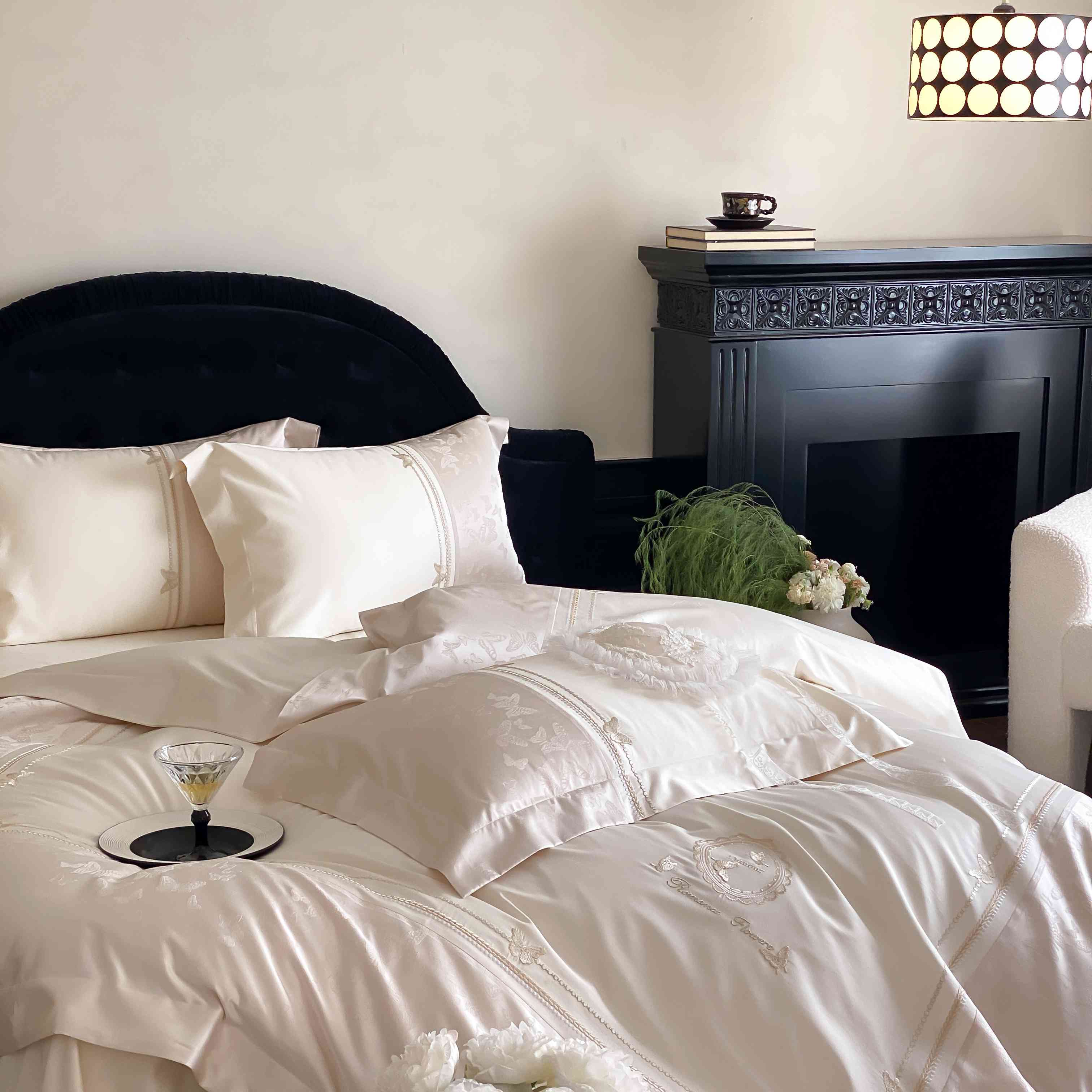 商品名称:太古汇家居 2025新款长绒棉高精密提花+绣花四件套“星辰梦蝶”系列 香槟色