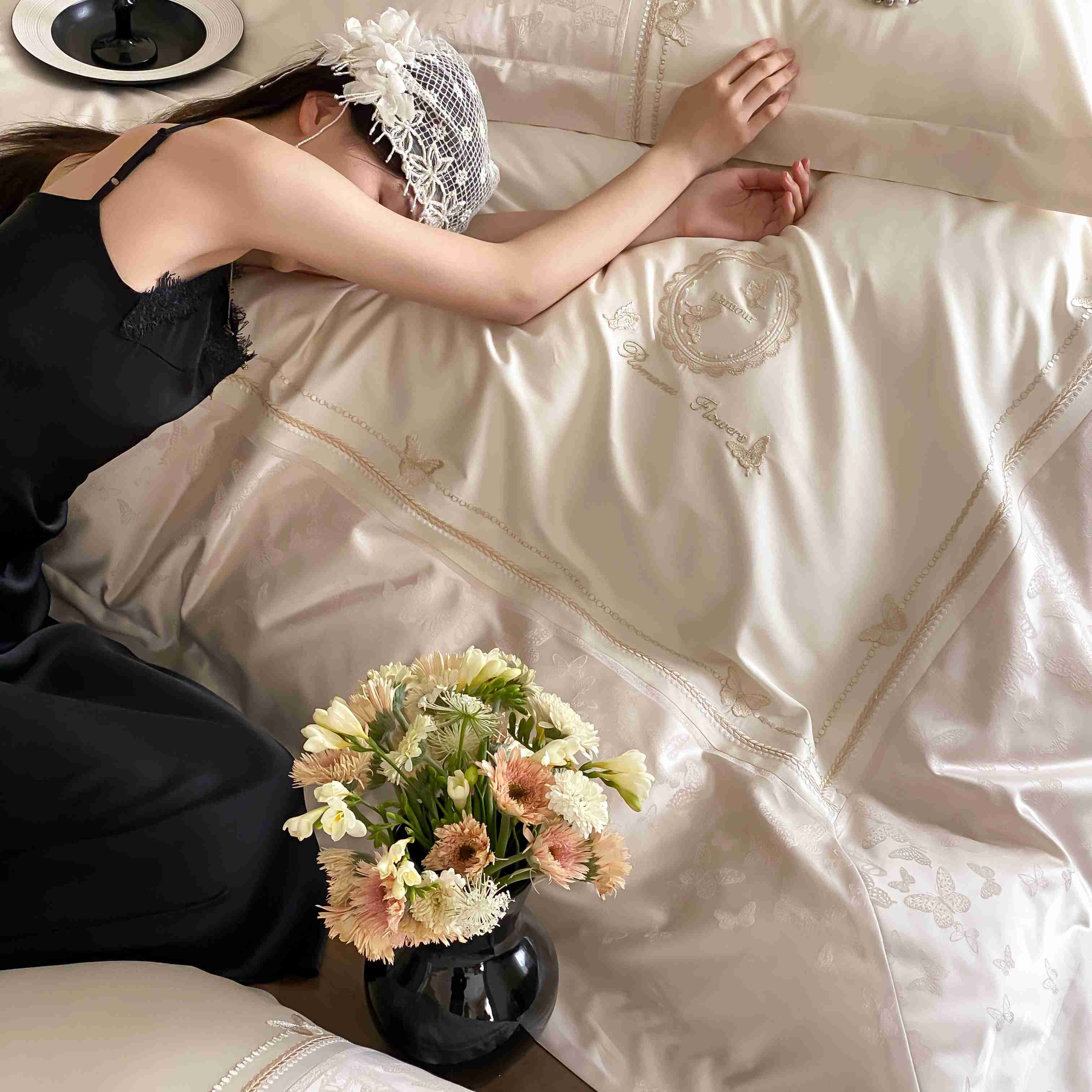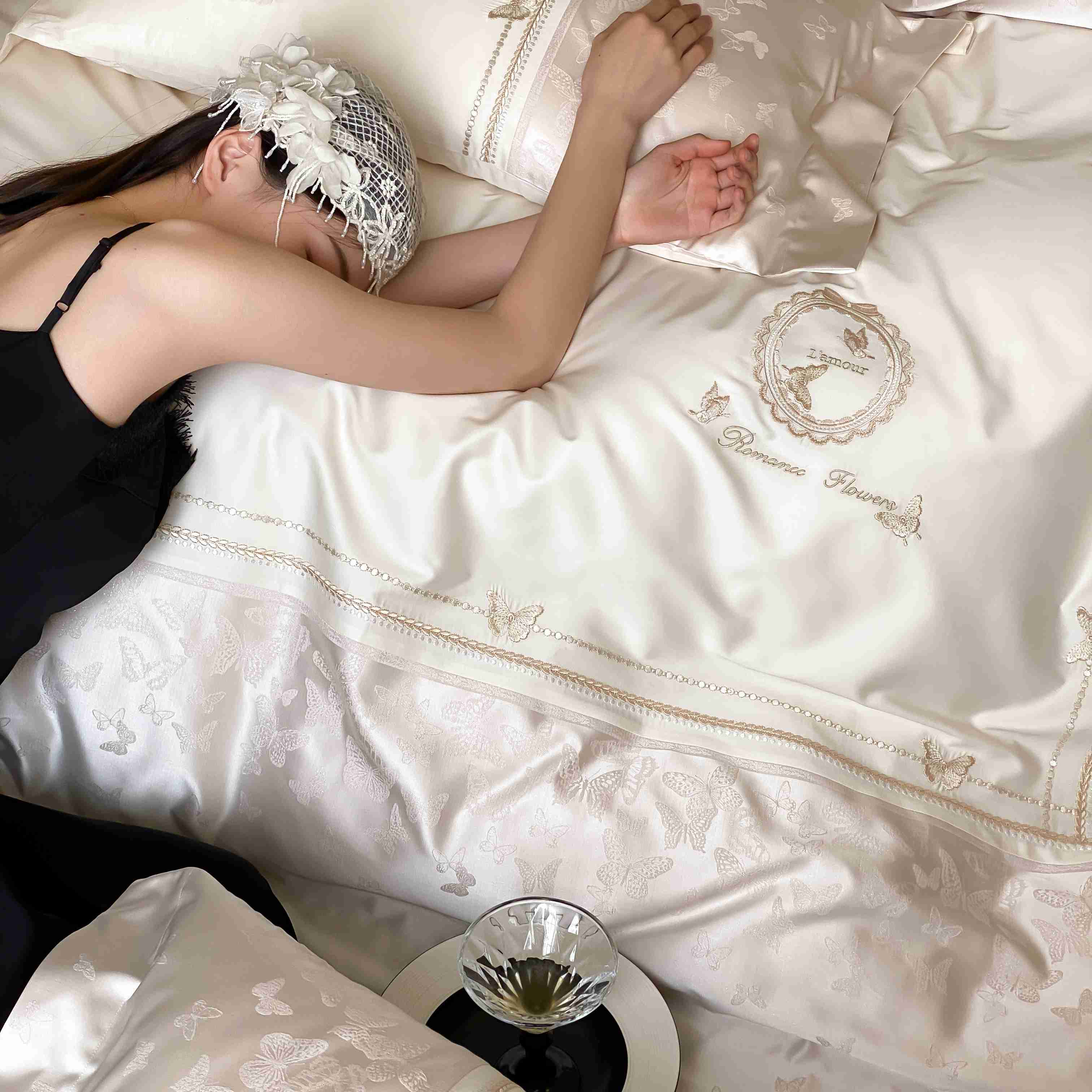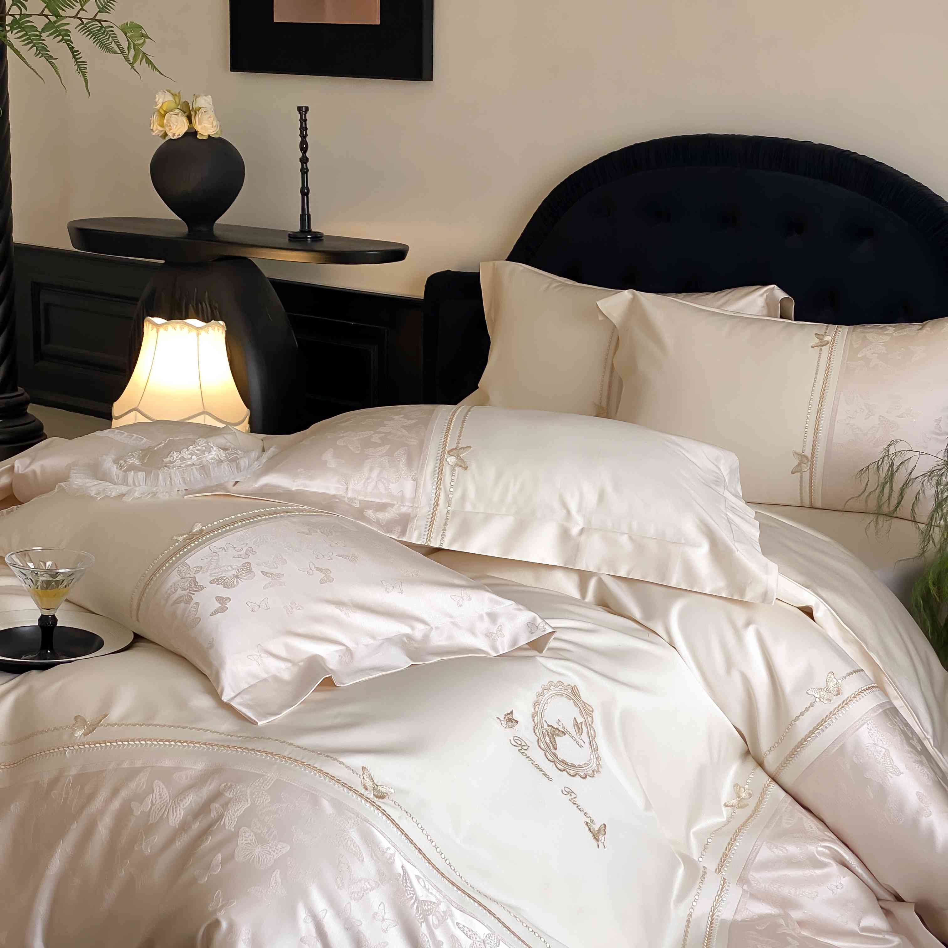 太古汇家居 2025新款长绒棉高精密提花+绣花四件套“星辰梦蝶”系列 香槟色