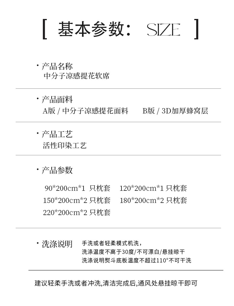 商品名称:(总)可恩欣 2025新款中分子凉感丝提花软席