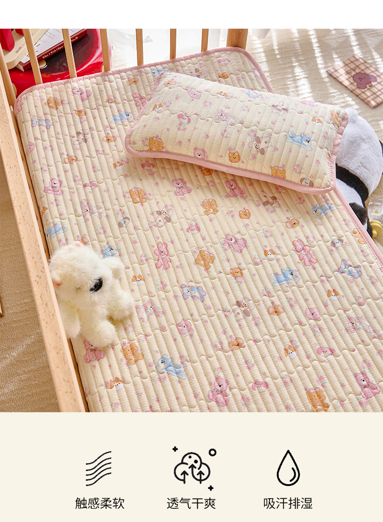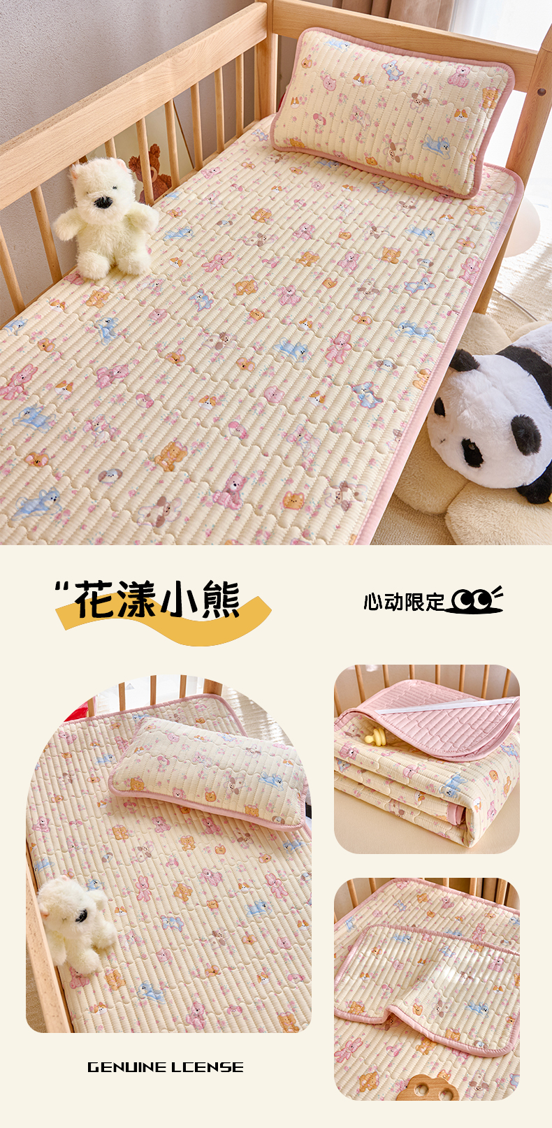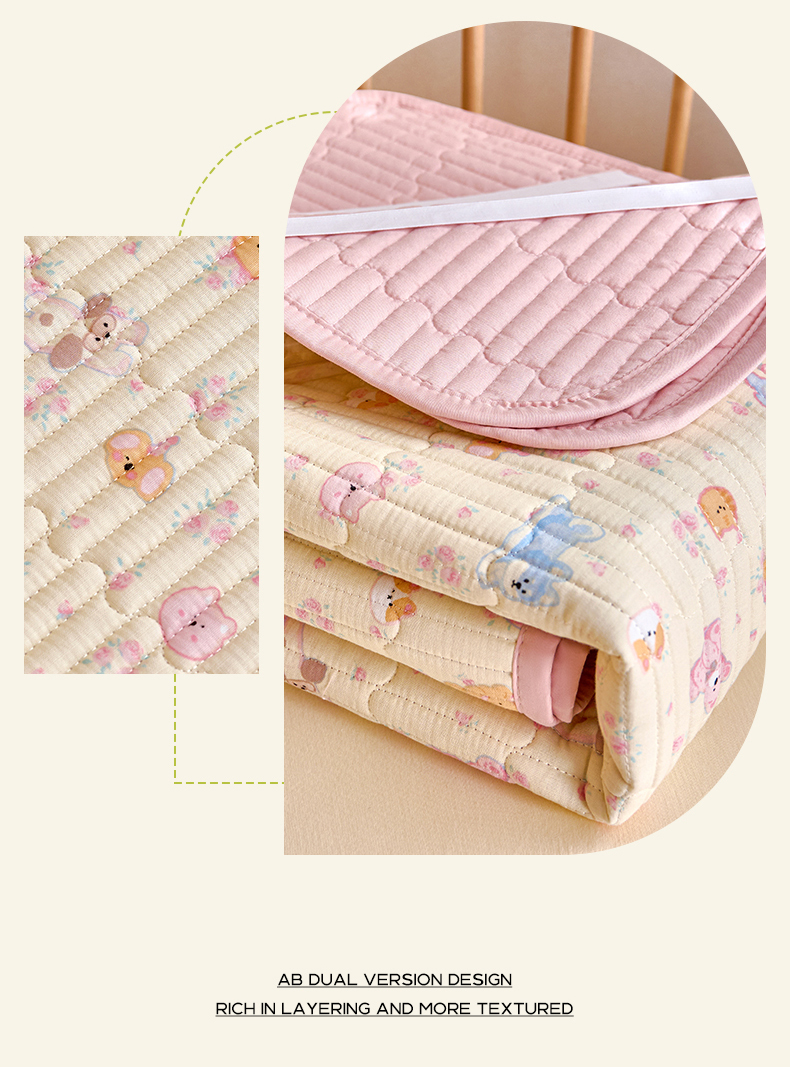 • 91家纺网 家纺一手货源 找家纺 X猫先生 2025新款全棉双层纱婴幼儿童床盖夹棉床单睡垫薄床垫子母婴级 花漾小熊