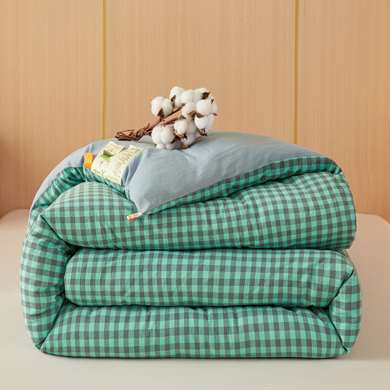 美尔惠家纺 2025新款无印水洗棉格子春秋被冬被被子被芯学生季被芯 蓝绿小格