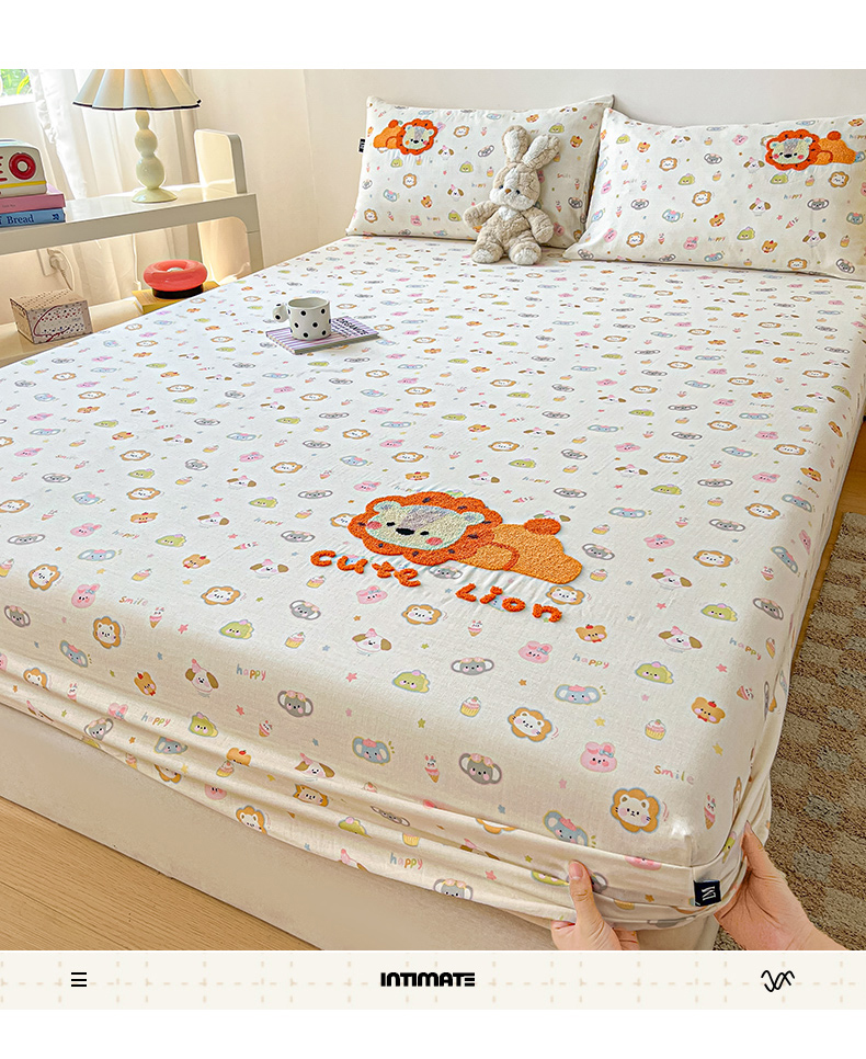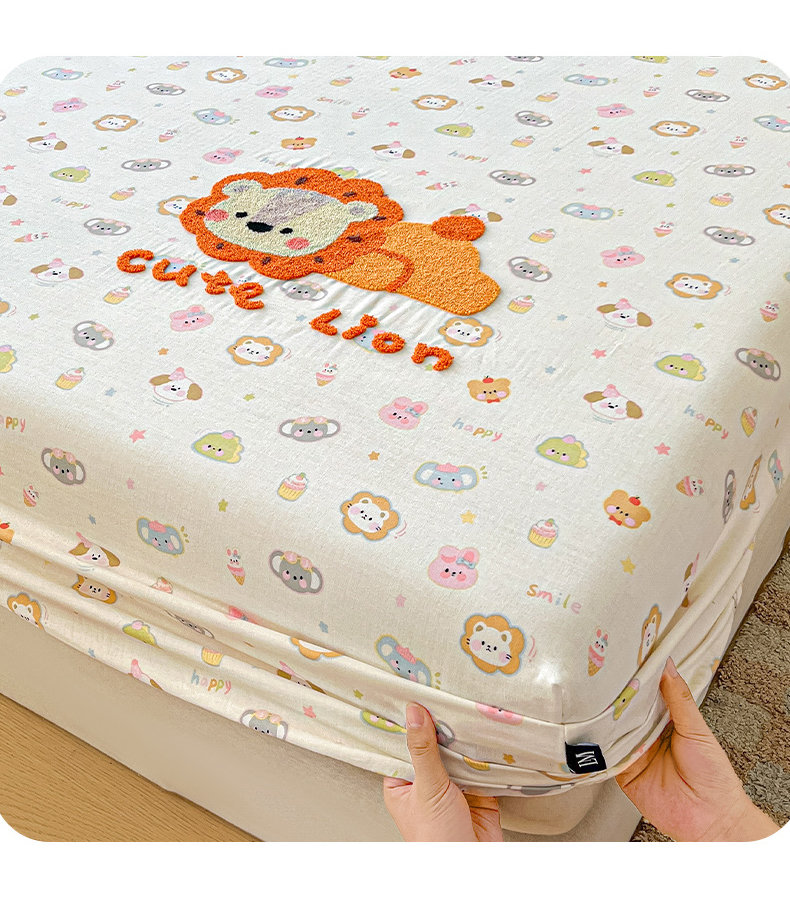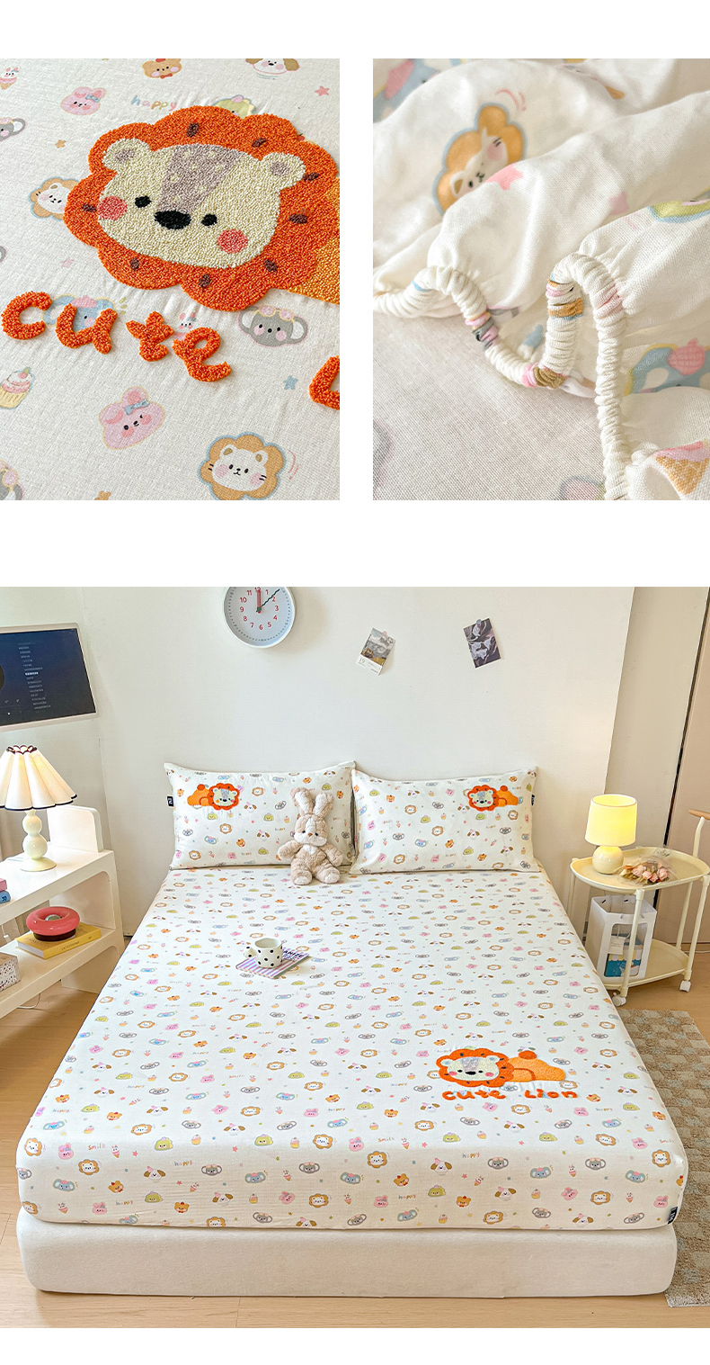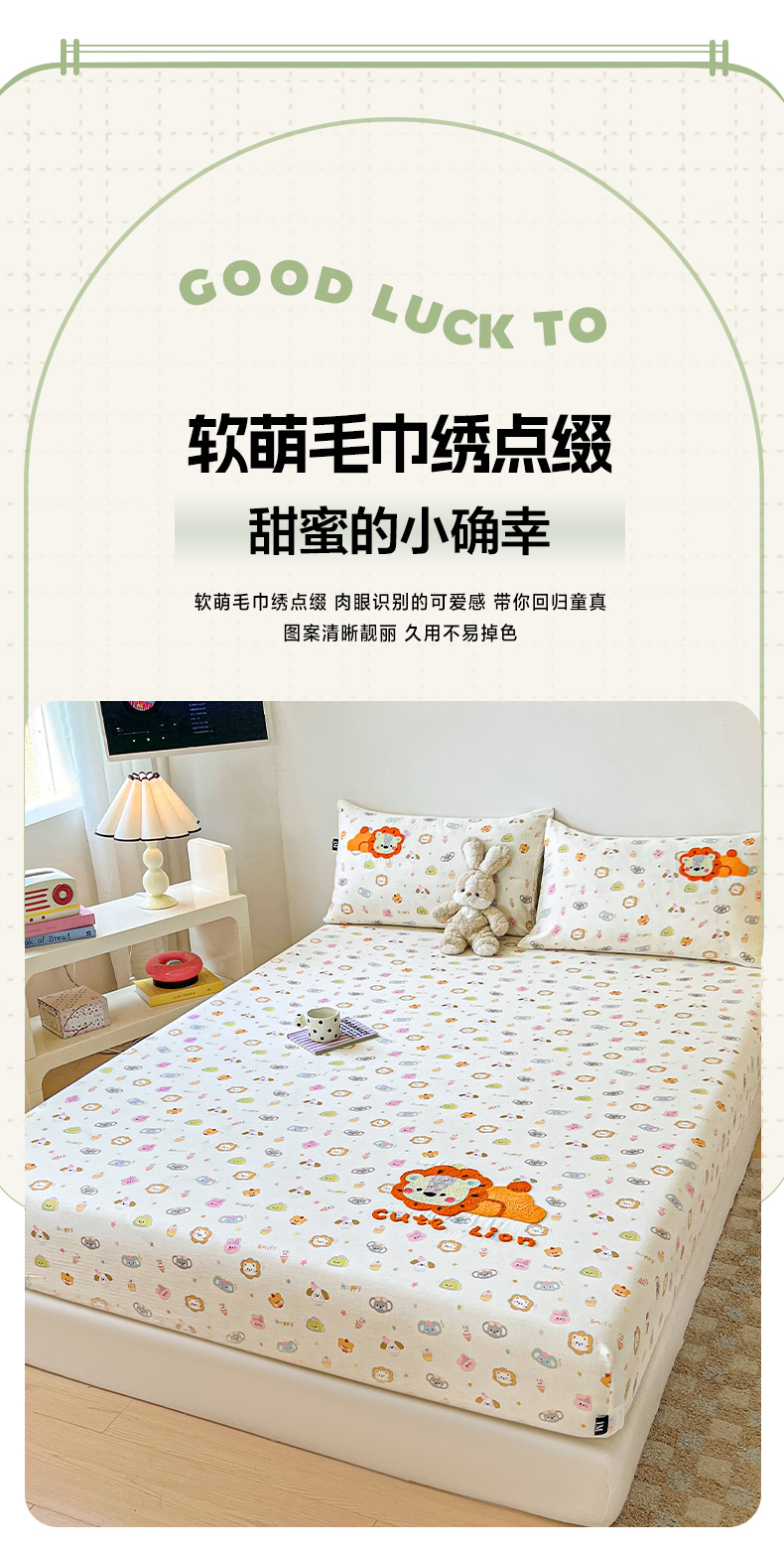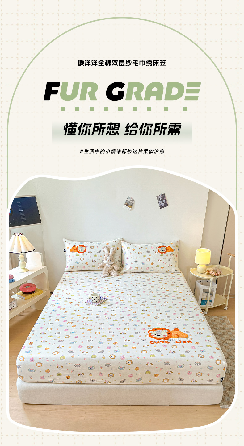 乐美家纺 2025新款懒洋洋全棉双层纱毛巾绣床笠三件套(提供买家秀) 笨笨狮