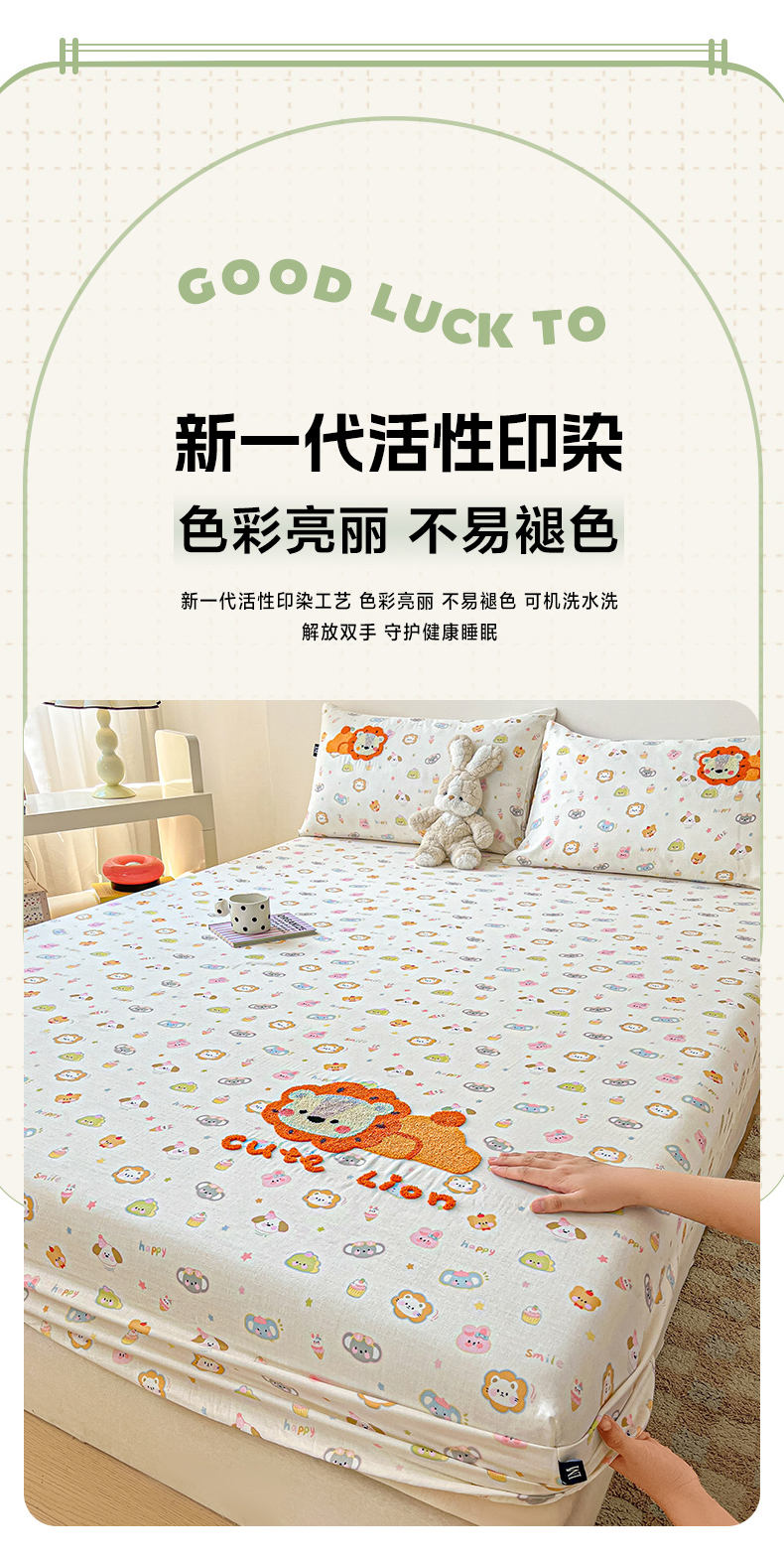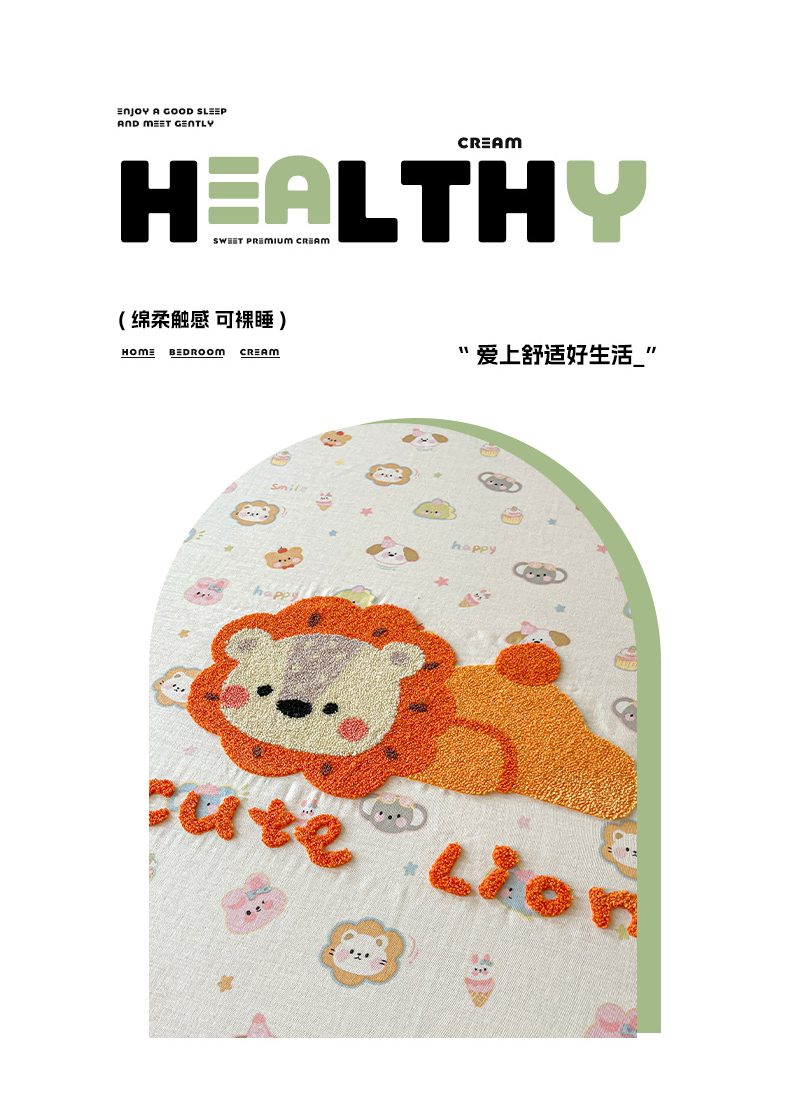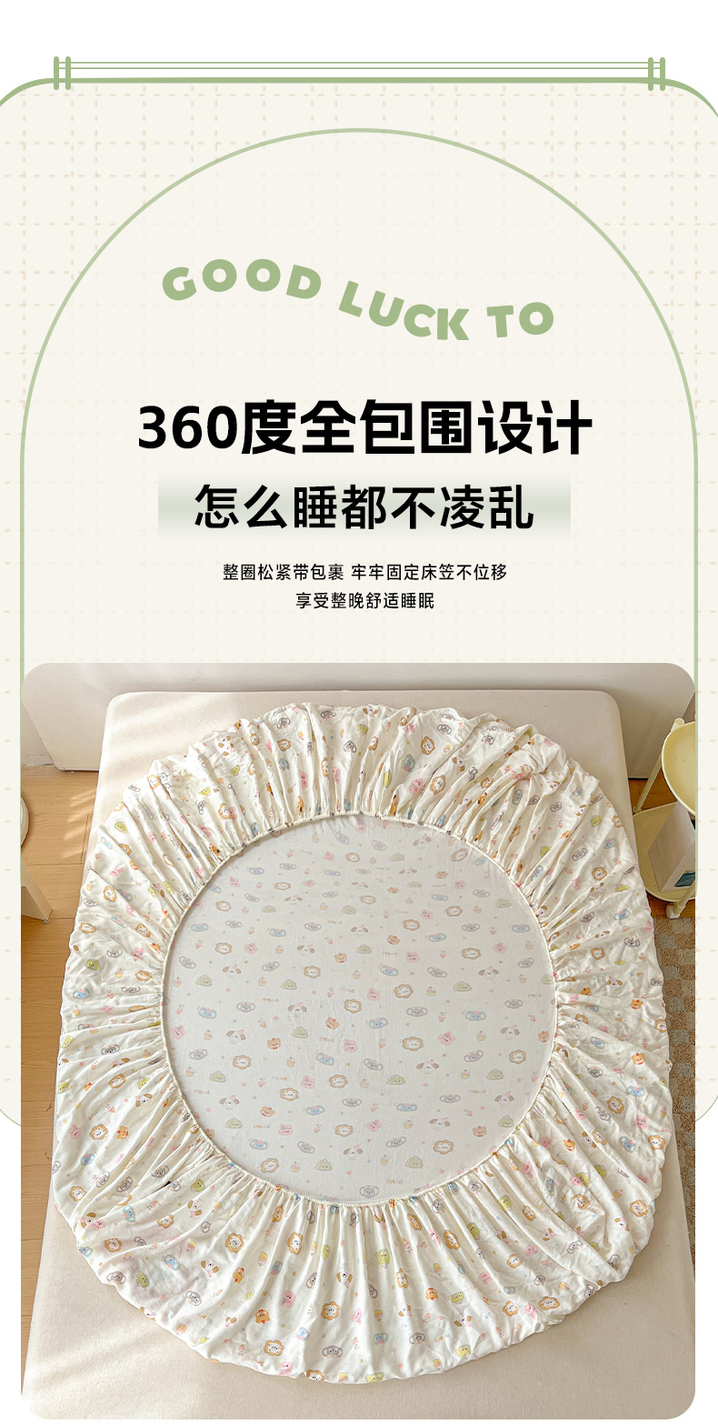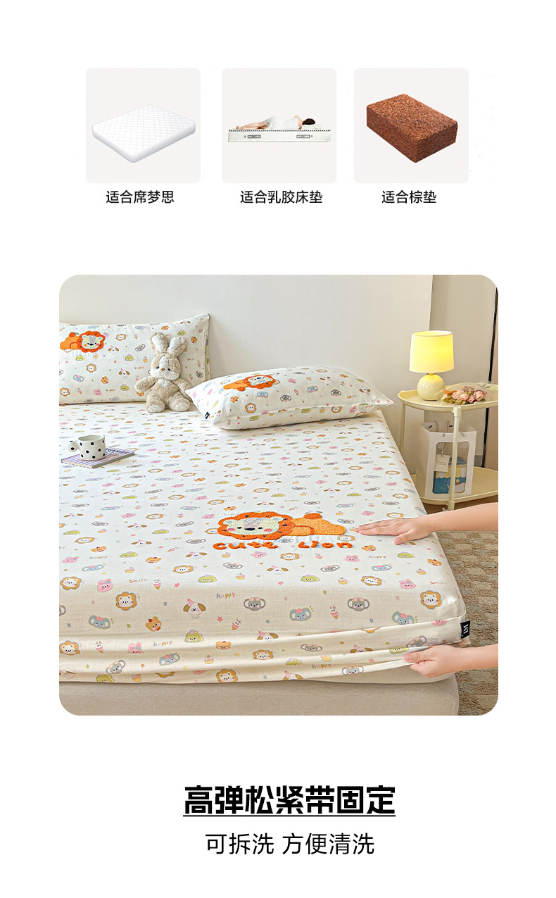 乐美家纺 2025新款懒洋洋全棉双层纱毛巾绣床笠三件套(提供买家秀) 笨笨狮
