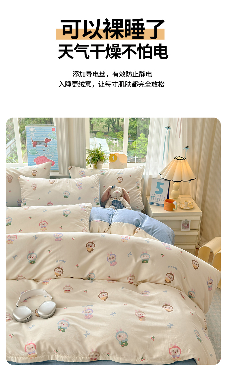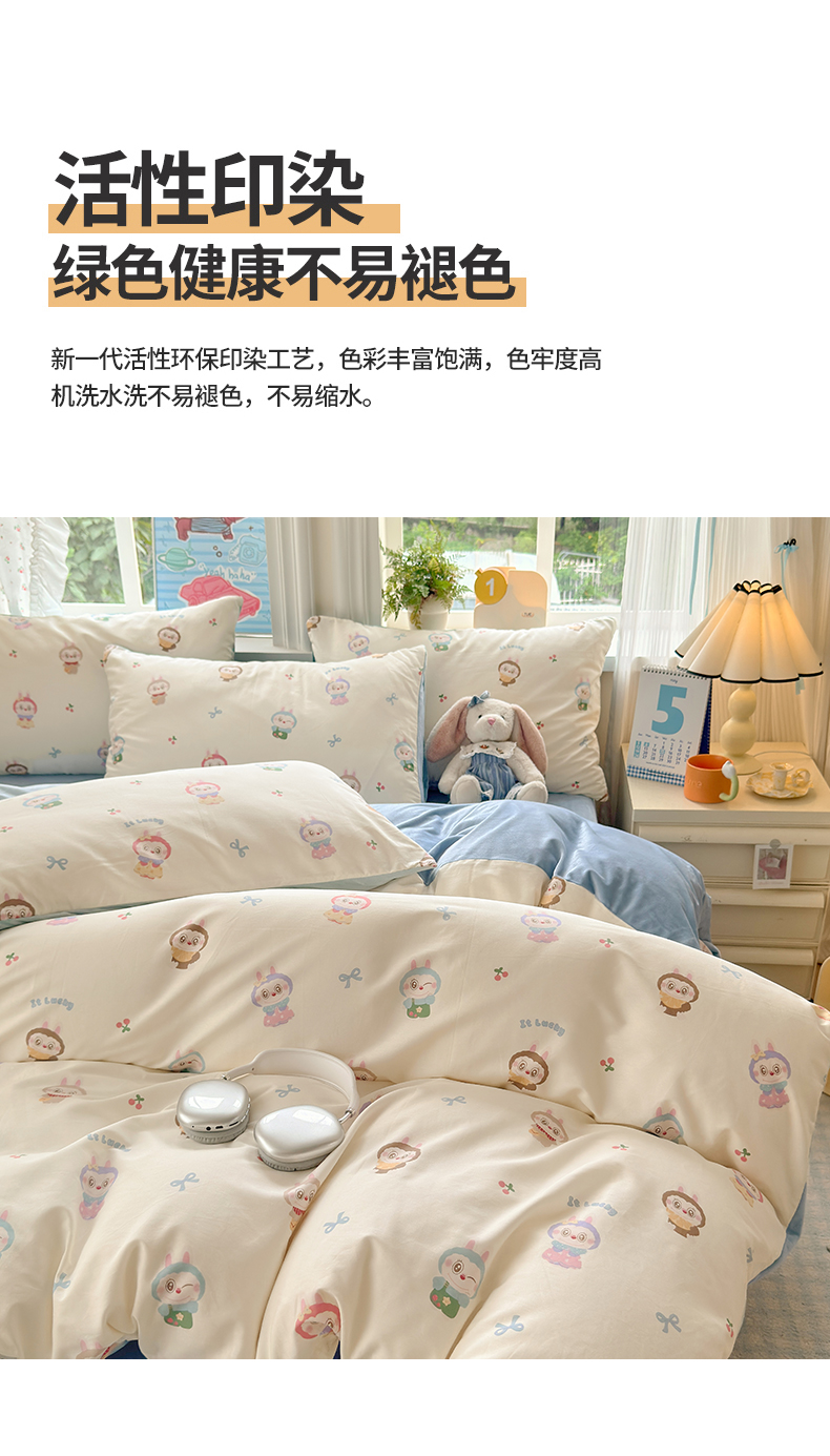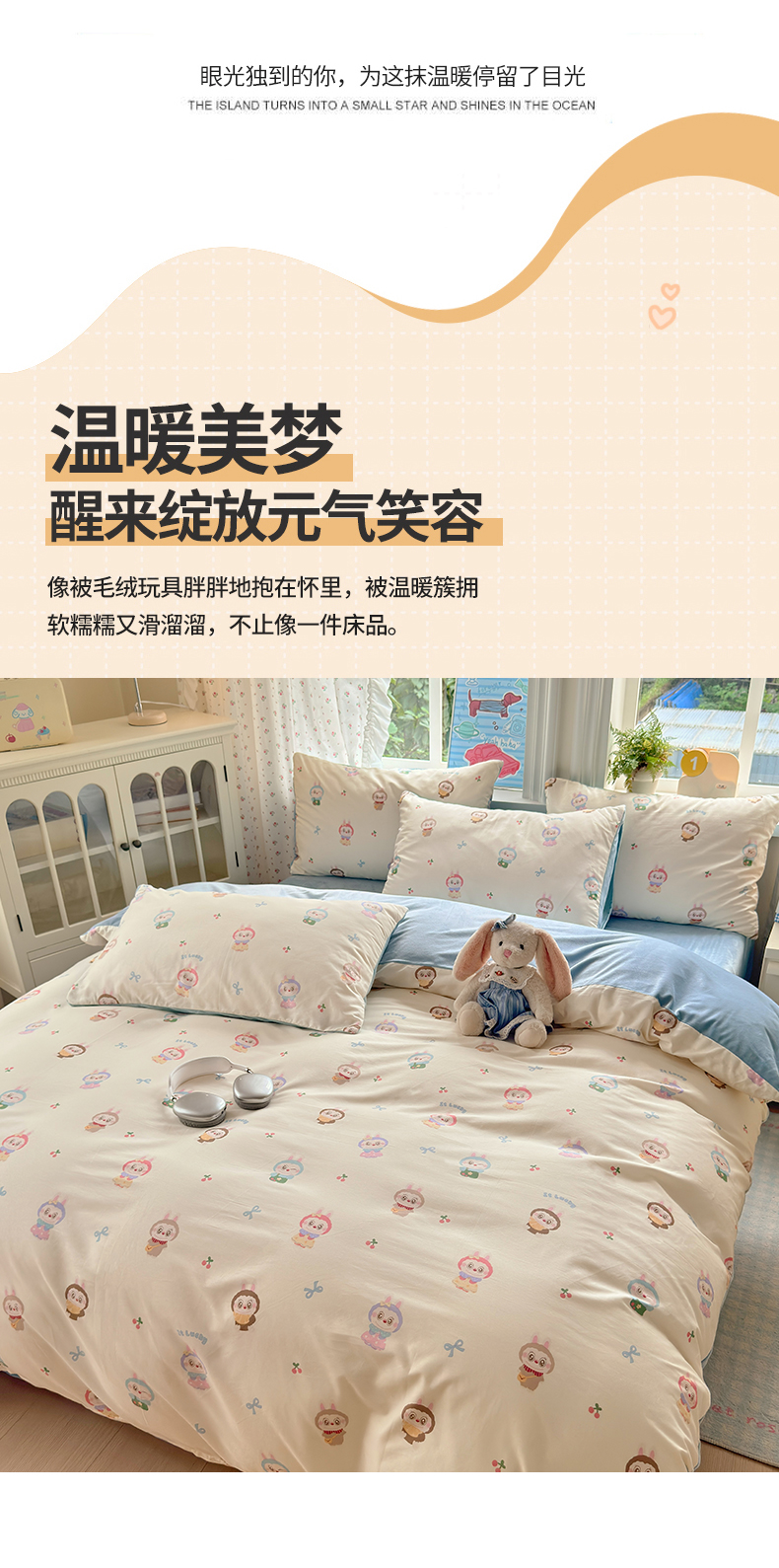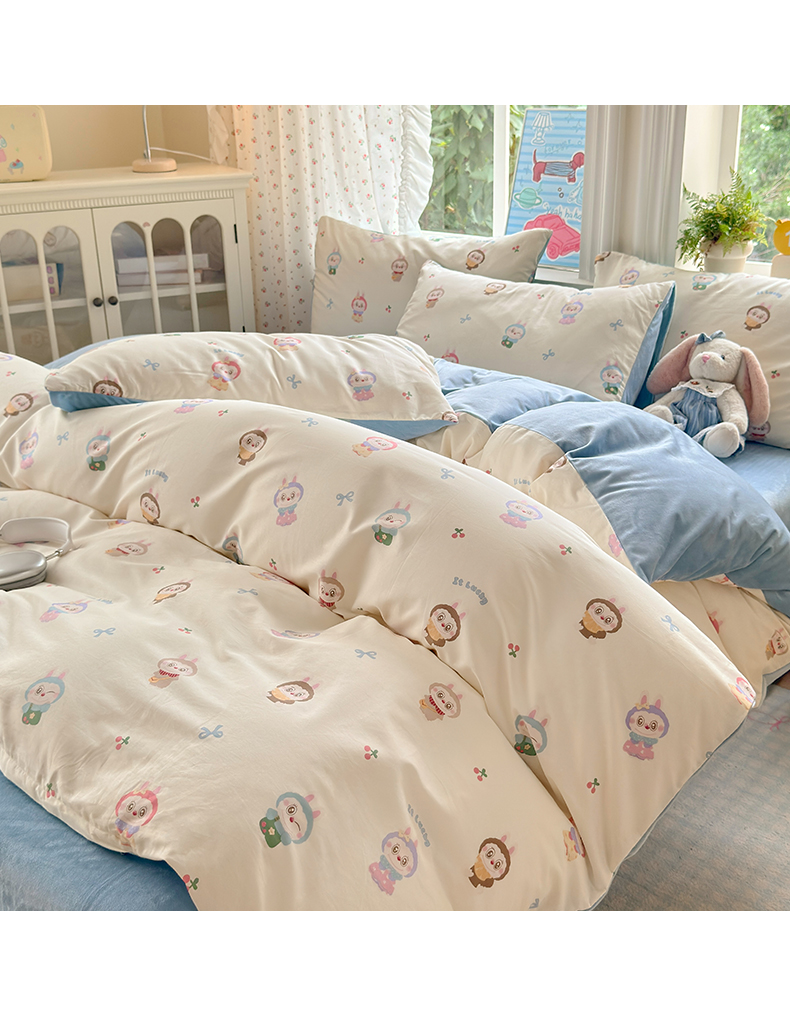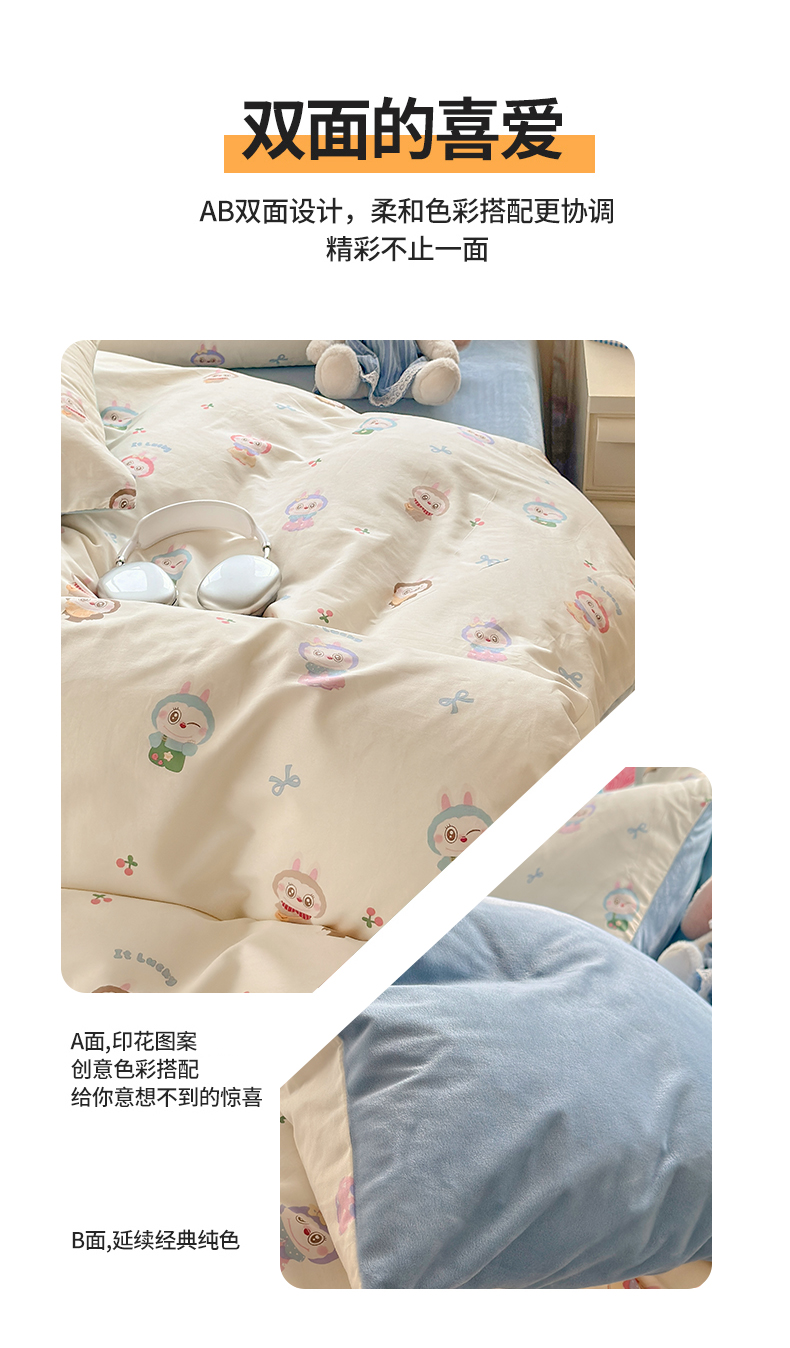 当前位置: 91家纺网 > 商品网购 > 床品套件 > 四件套 > 全棉普通四件套 > 清雅福 2025秋冬新品全棉印花棉加绒四件套系列 棉绒-大眼公仔