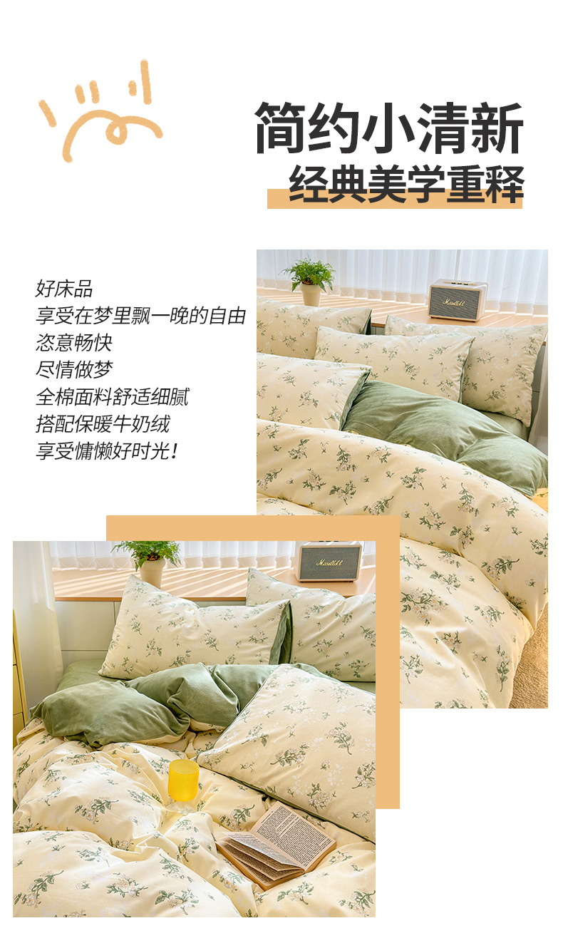 当前位置: 91家纺网 > 商品网购 > 床品套件 > 四件套 > 全棉普通四件套 > 清雅福 2025秋冬新品全棉印花棉加绒四件套系列 棉绒-茶艺