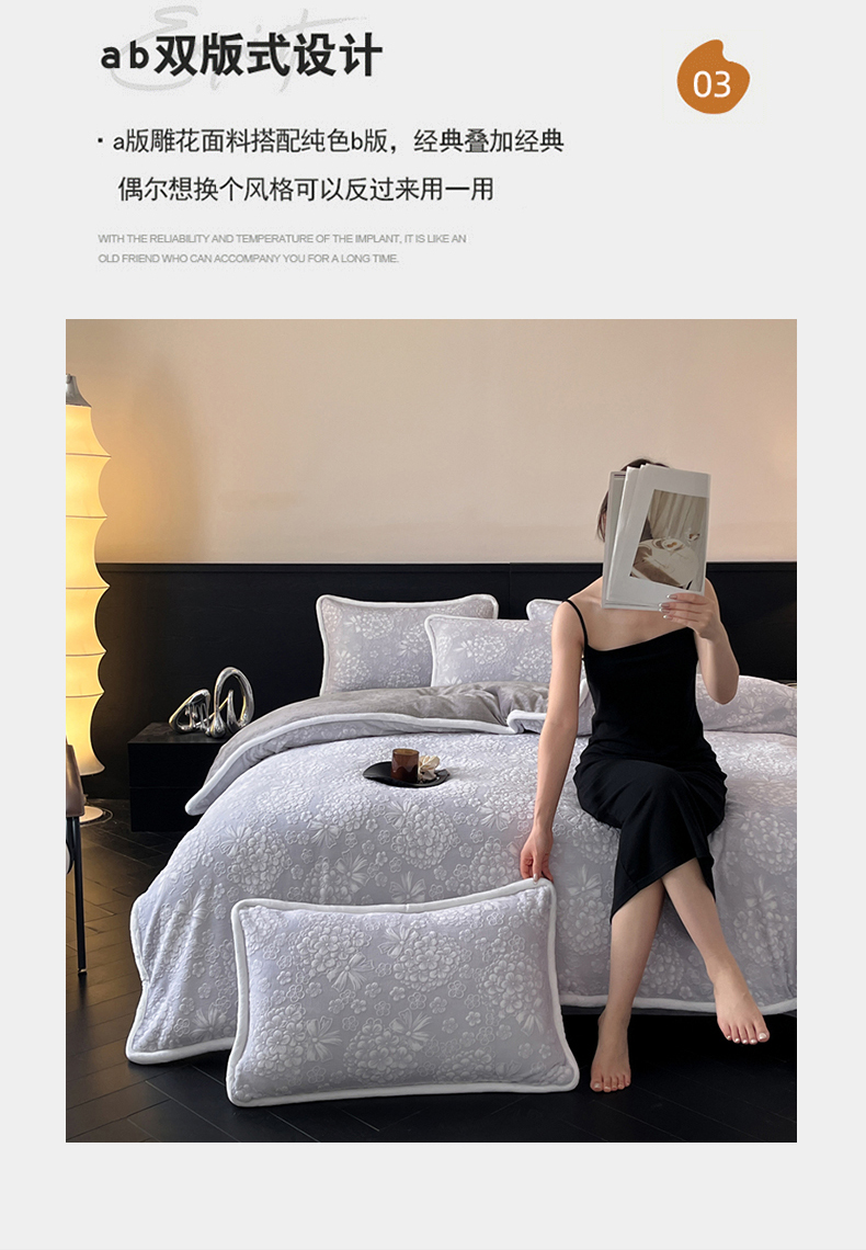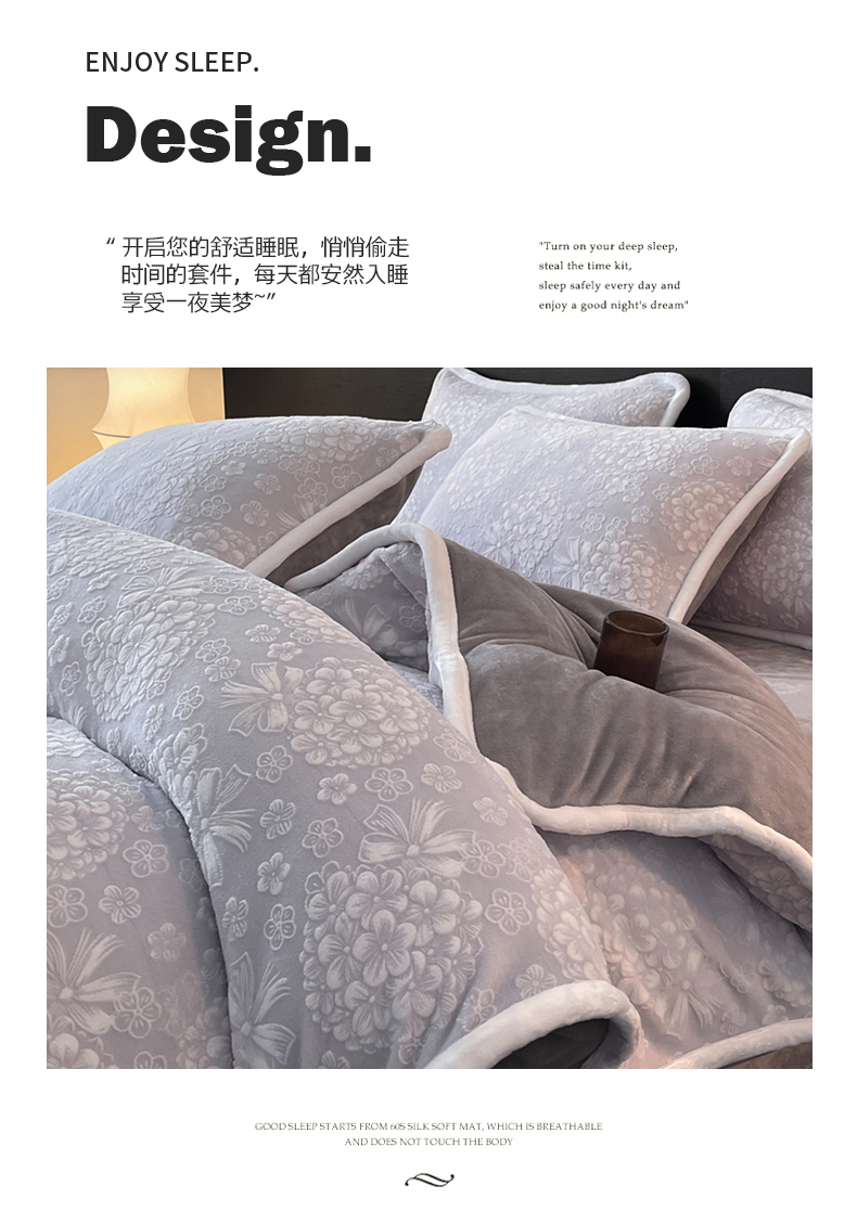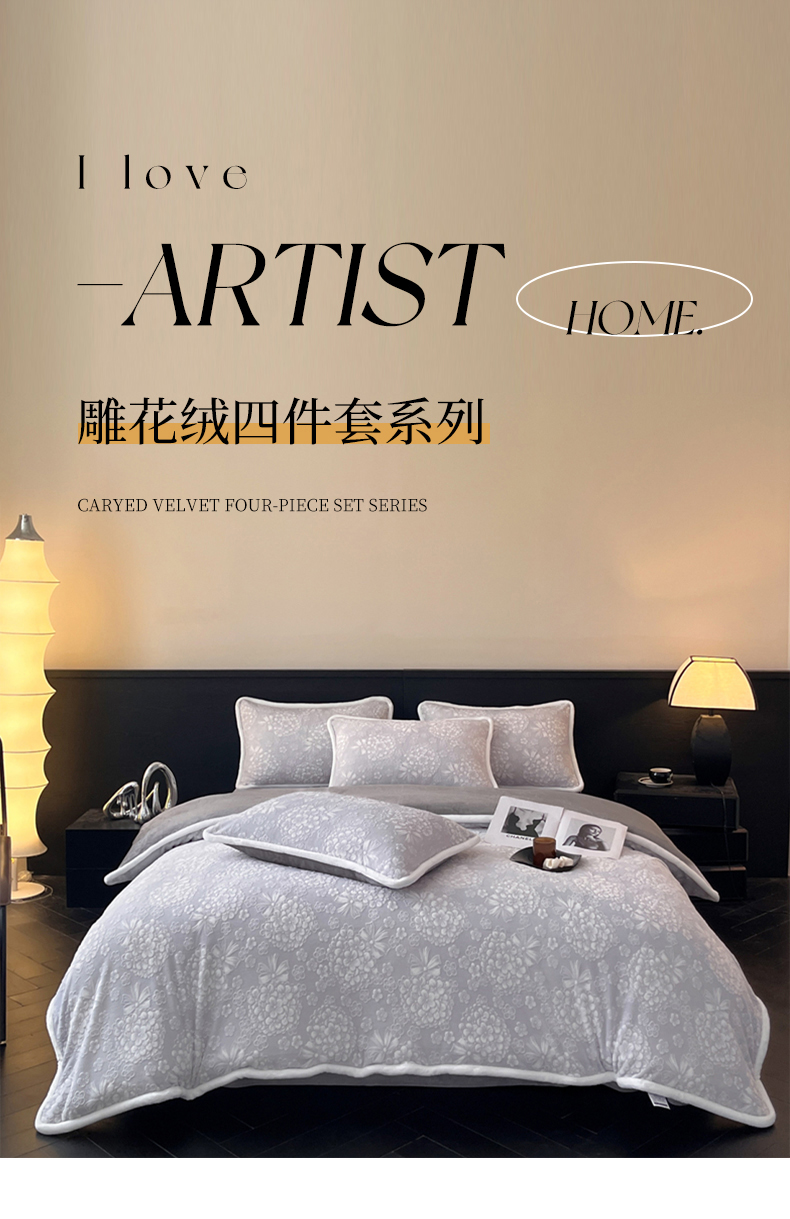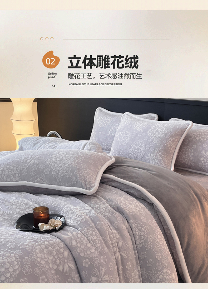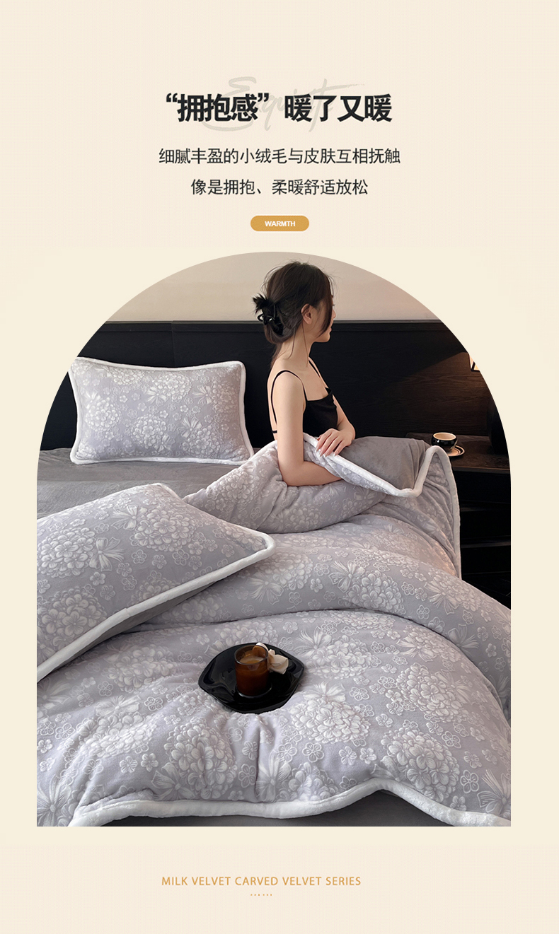 诺梵 2025新款8斤立体雕花牛奶绒四件套_控价标准高于139,加大高于149 绣球花束-灰