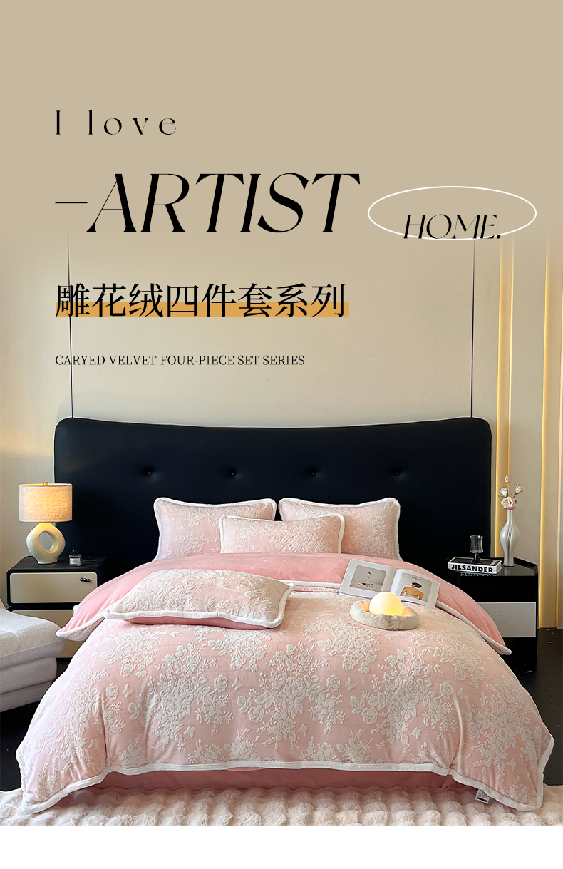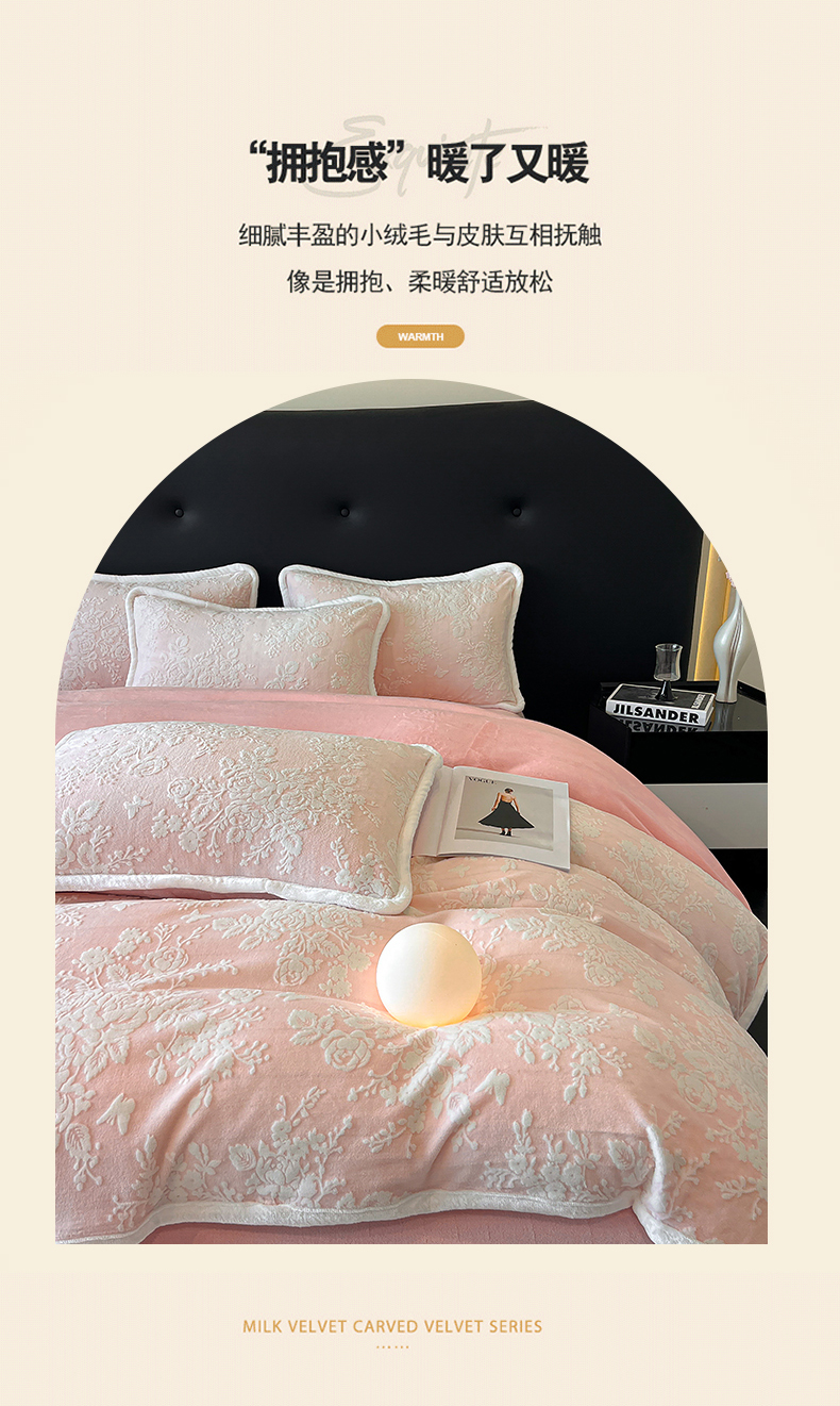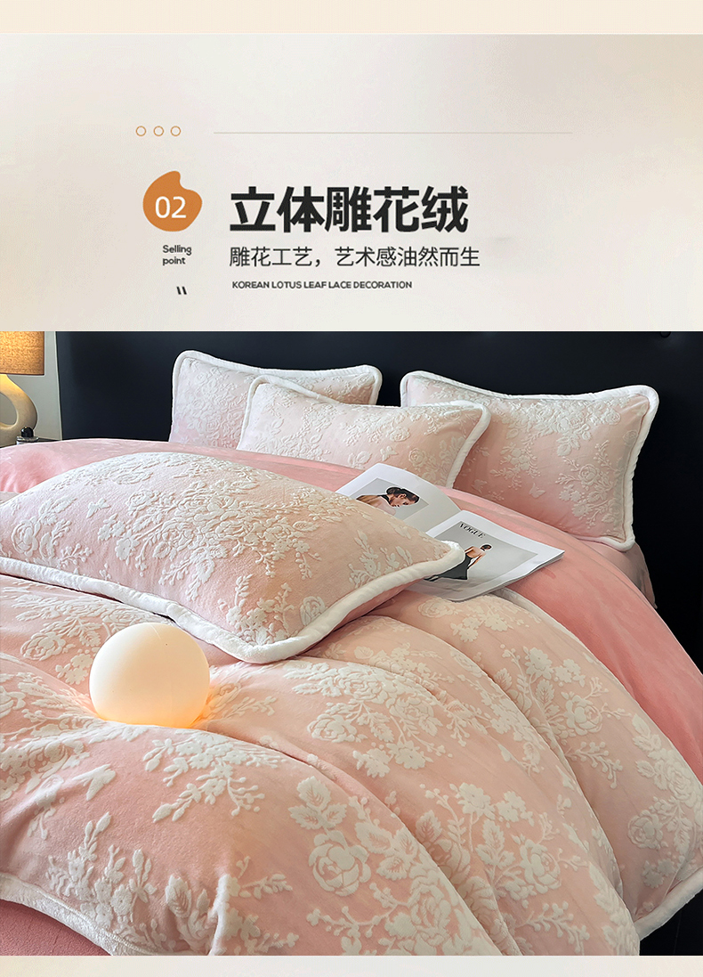 诺梵 2025新款8斤立体雕花牛奶绒四件套_控价标准高于139,加大高于149 蒂娜-粉
