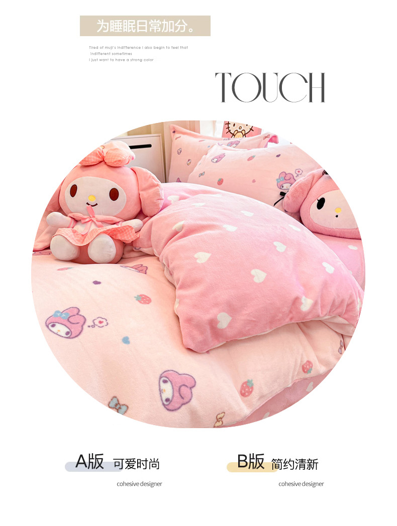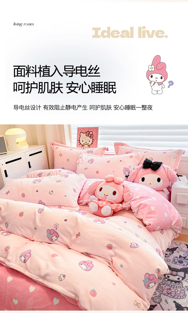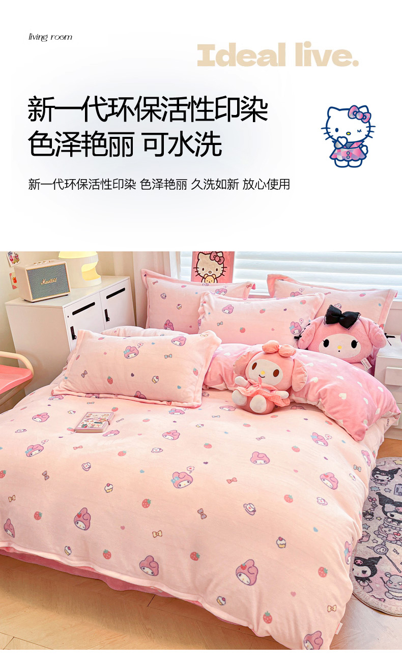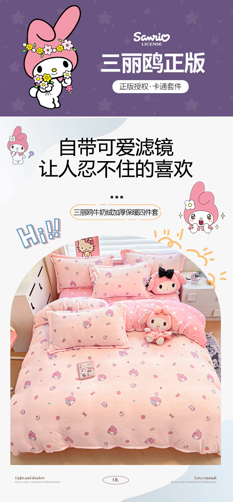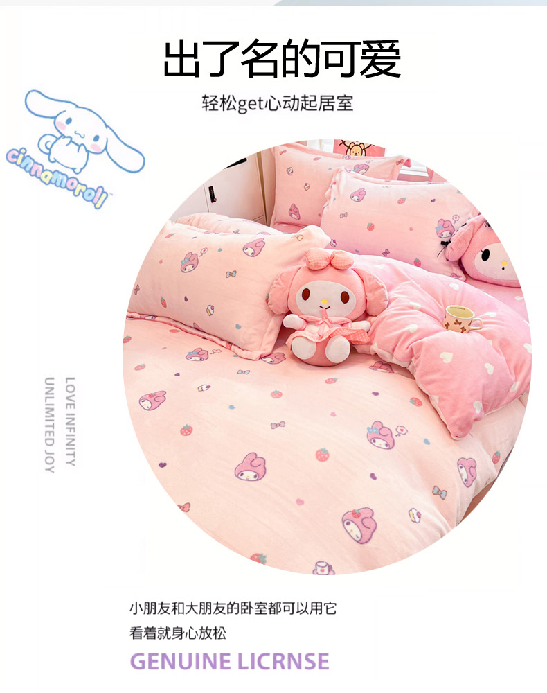 当前位置: 91家纺网 > 商品网购 > 床品套件 > 四件套 > 牛奶绒四件套 > 暮思家居 2025新款三丽鸥正版授权高克重200克加厚保暖卡通牛奶绒四件套 牛奶绒-可可美乐蒂