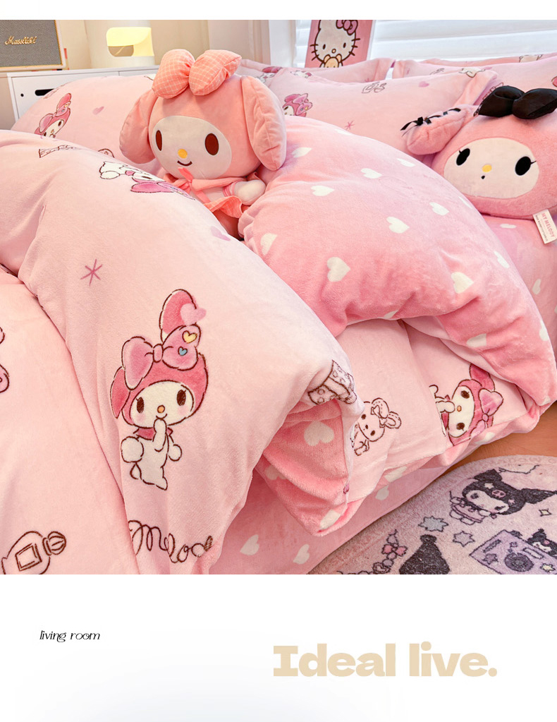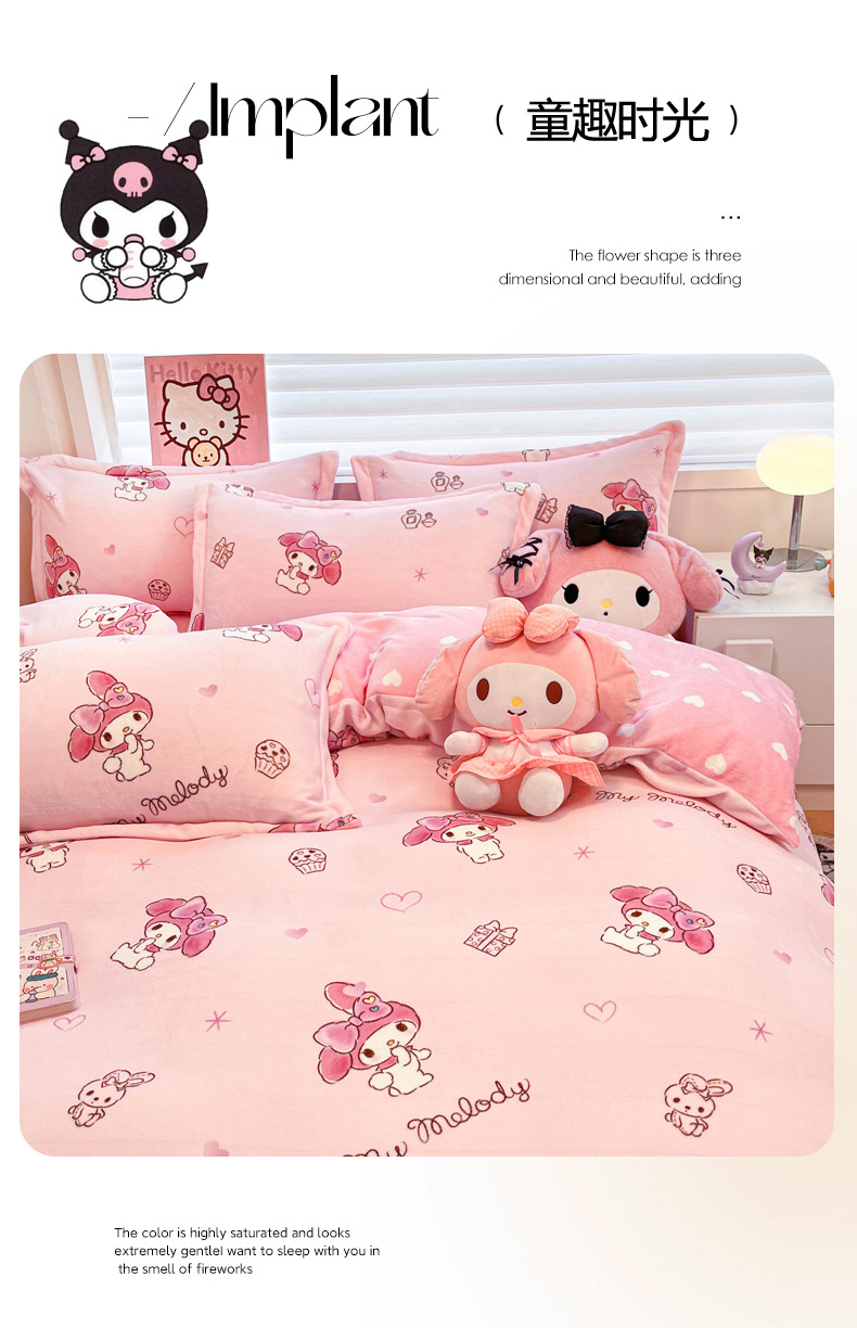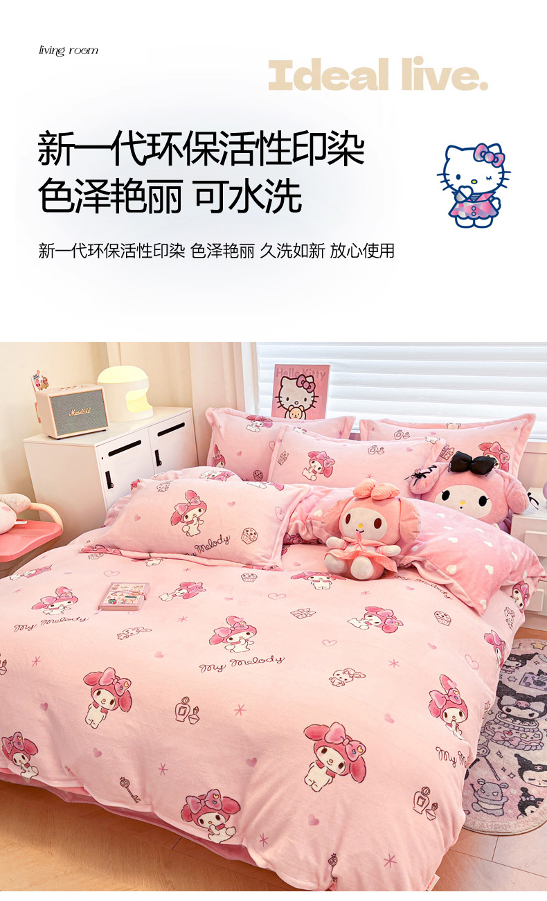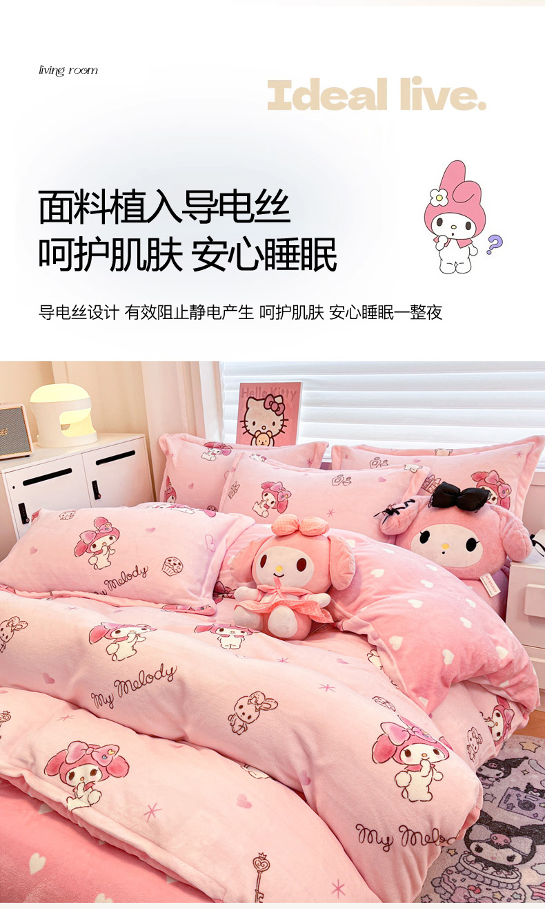 当前位置: 91家纺网 > 商品网购 > 床品套件 > 四件套 > 牛奶绒四件套 > 暮思家居 2025新款三丽鸥正版授权高克重200克加厚保暖卡通牛奶绒四件套 牛奶绒-兔妮美乐蒂