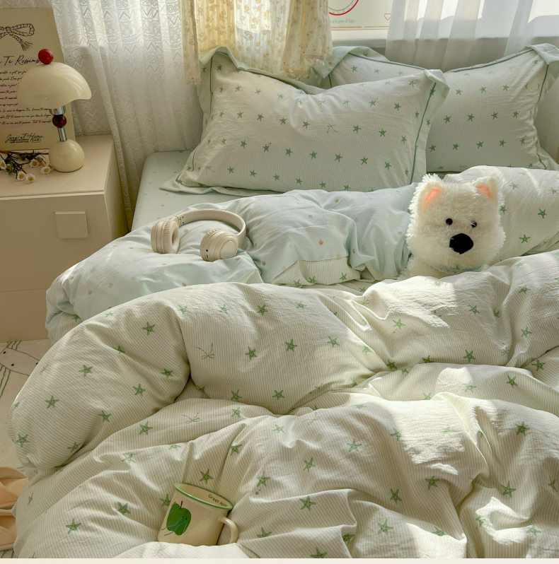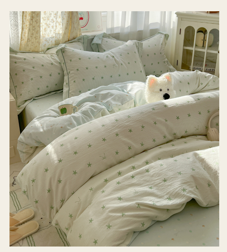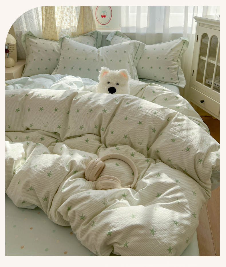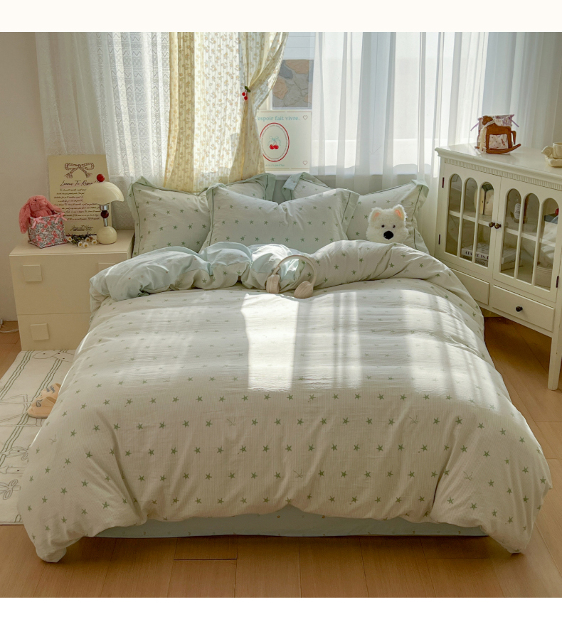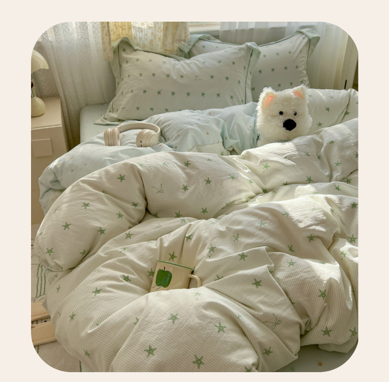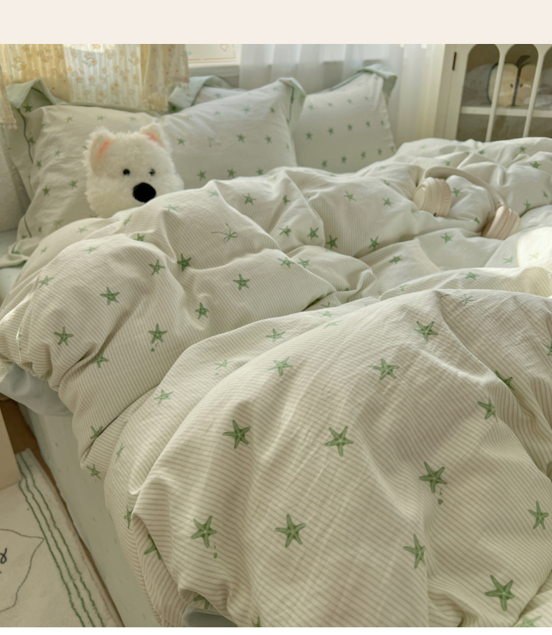 当前位置: 91家纺网 > 商品网购 > 床品套件 > 四件套 > 水洗棉四件套 > 亨通家纺 2025新款爆款韩国小布袋古法水洗棉云感棉四件套【提供买家秀】 小海星-绿