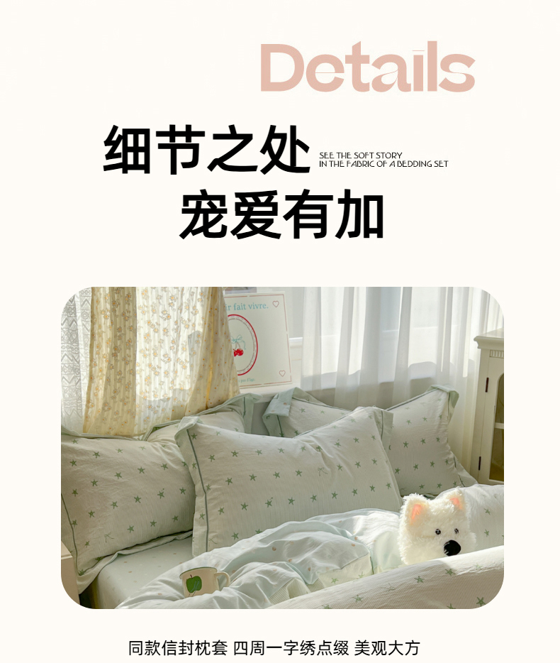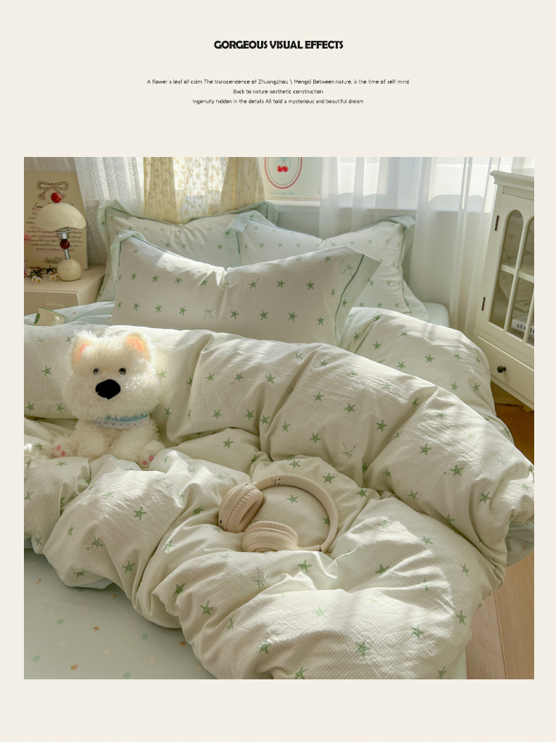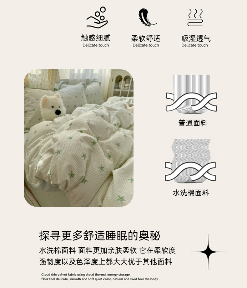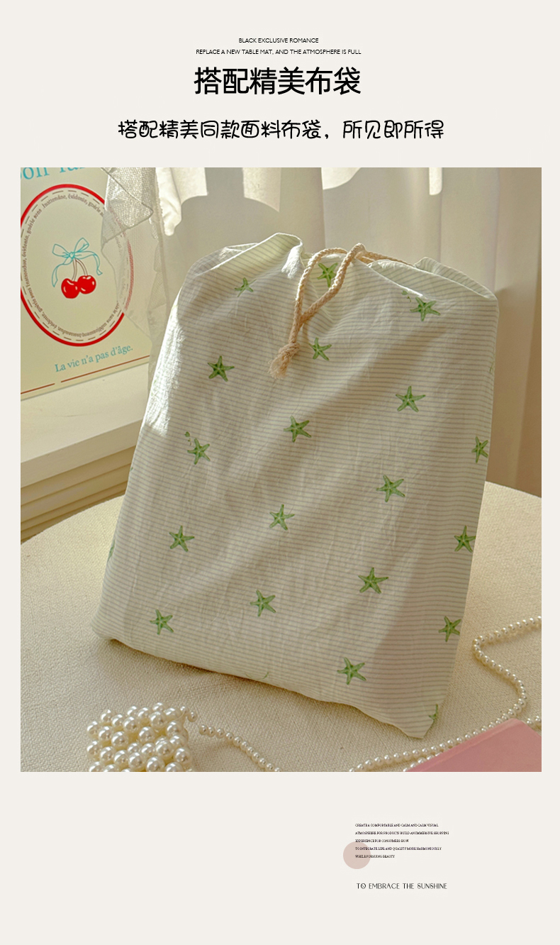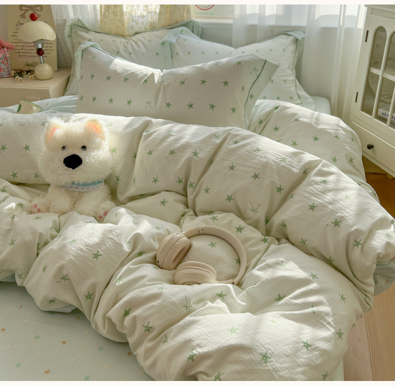 当前位置: 91家纺网 > 商品网购 > 床品套件 > 四件套 > 水洗棉四件套 > 亨通家纺 2025新款爆款韩国小布袋古法水洗棉云感棉四件套【提供买家秀】 小海星-绿