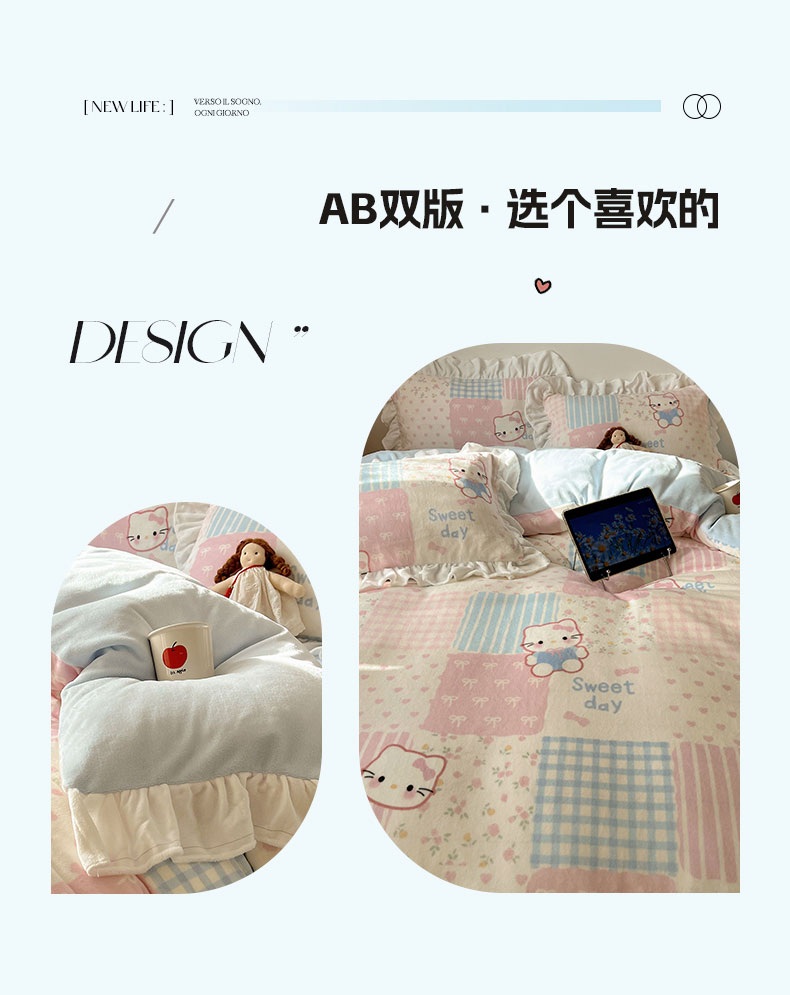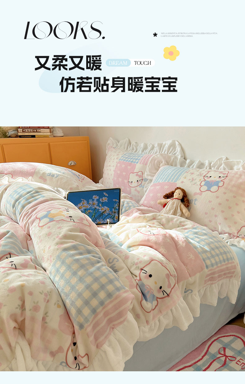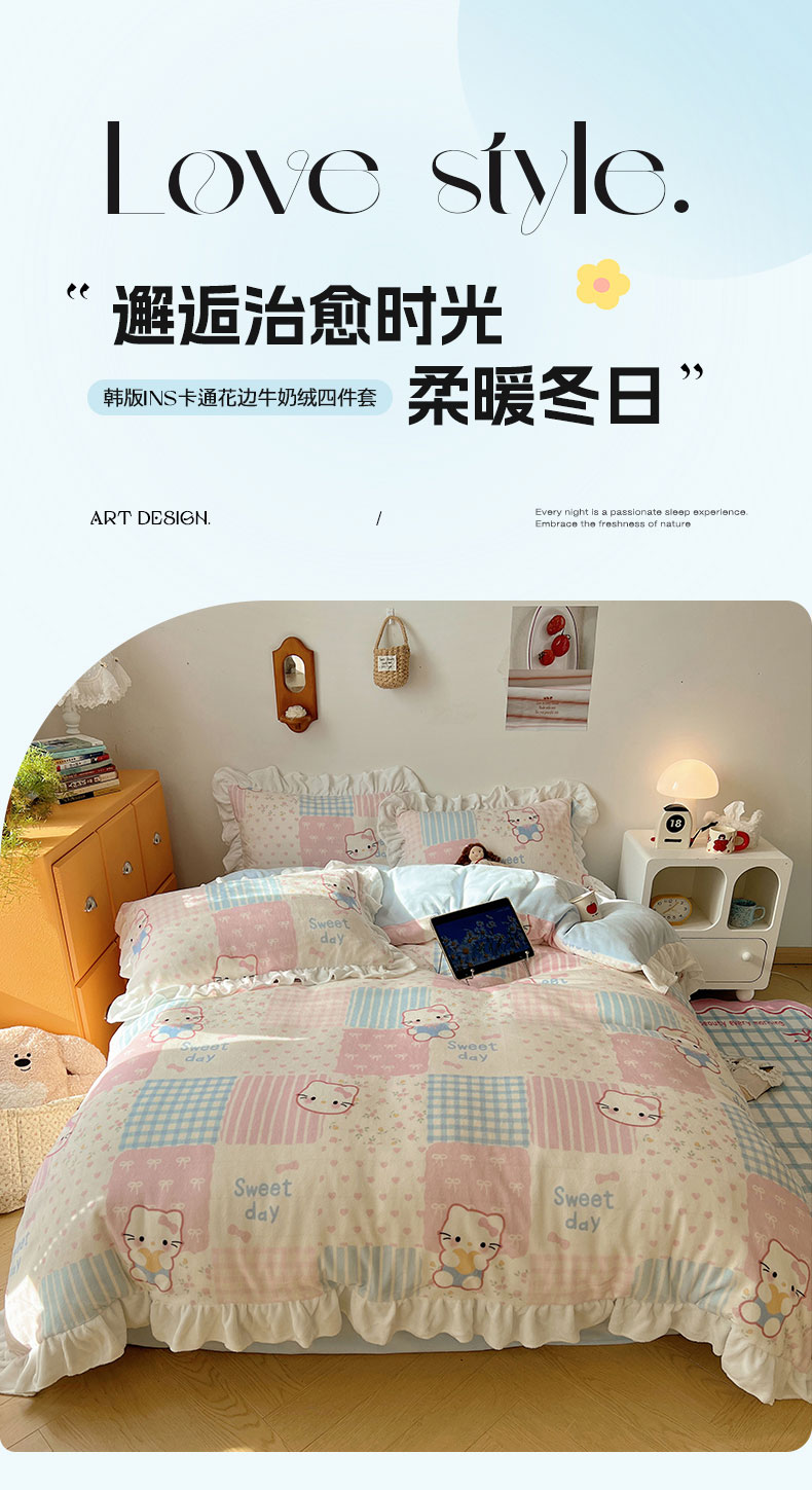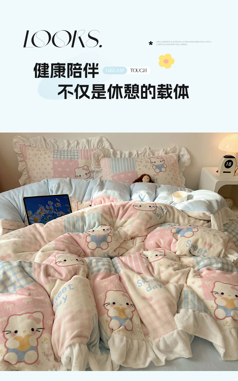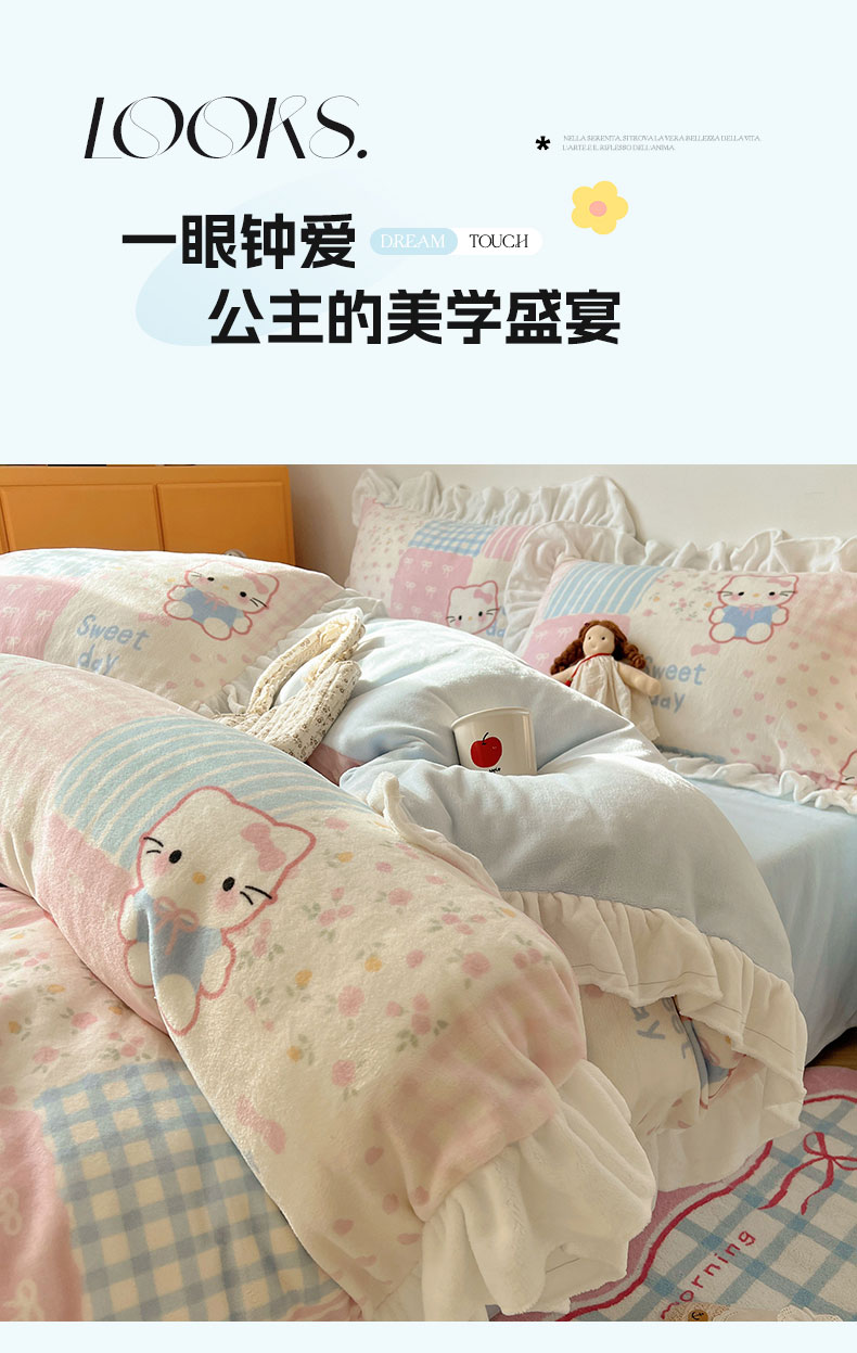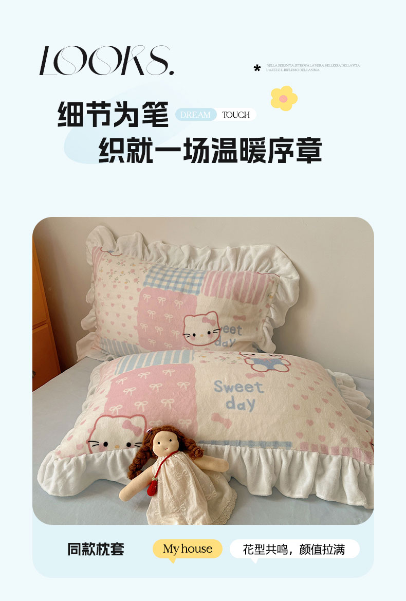 当前位置: 91家纺网 > 商品网购 > 床品套件 > 四件套 > 牛奶绒四件套 > 六巷胡同 2025新款韩式博主风花边款INS卡通牛奶绒四件套(第二系) 花边软萌碎花猫