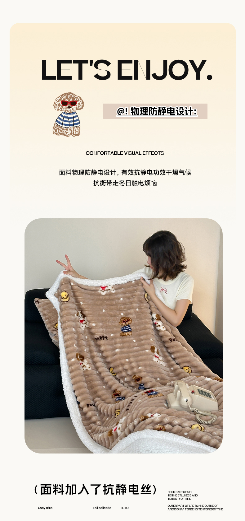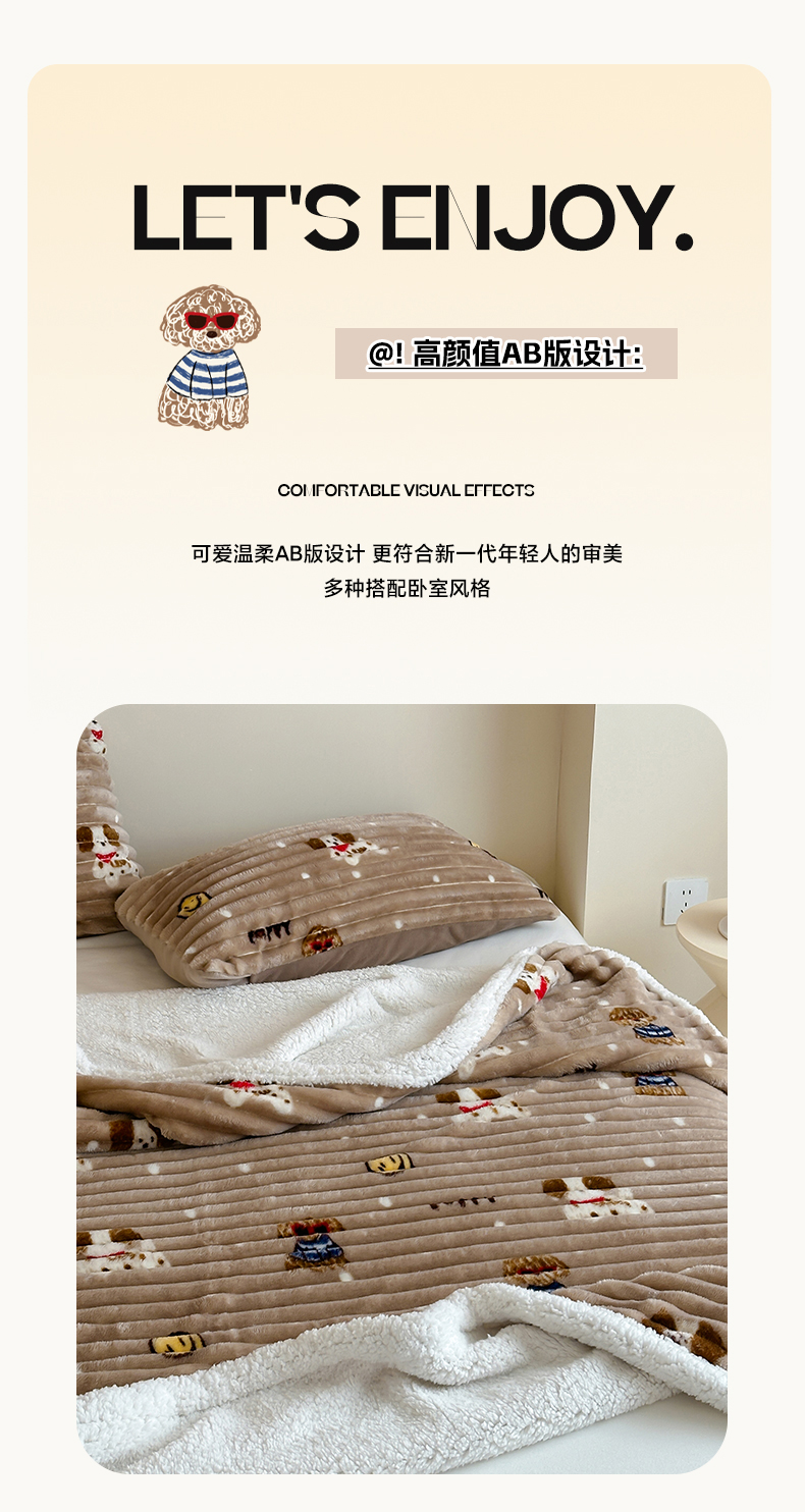 商品名称:(总)RYB红黄兰 2025新款设计师原创抽条280g兔兔绒羊羔绒加厚毛毯