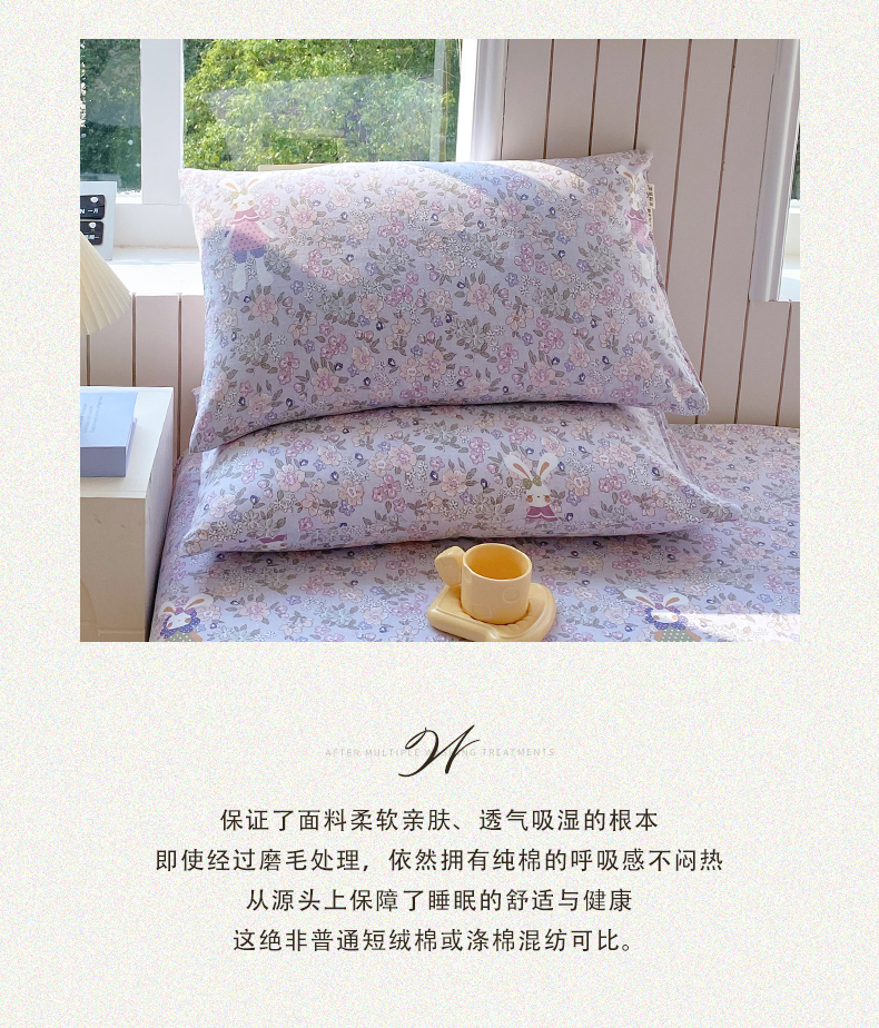 春皖家纺 2025新款原棉磨毛单枕套 枕套单件-风格一 萌萌兔
