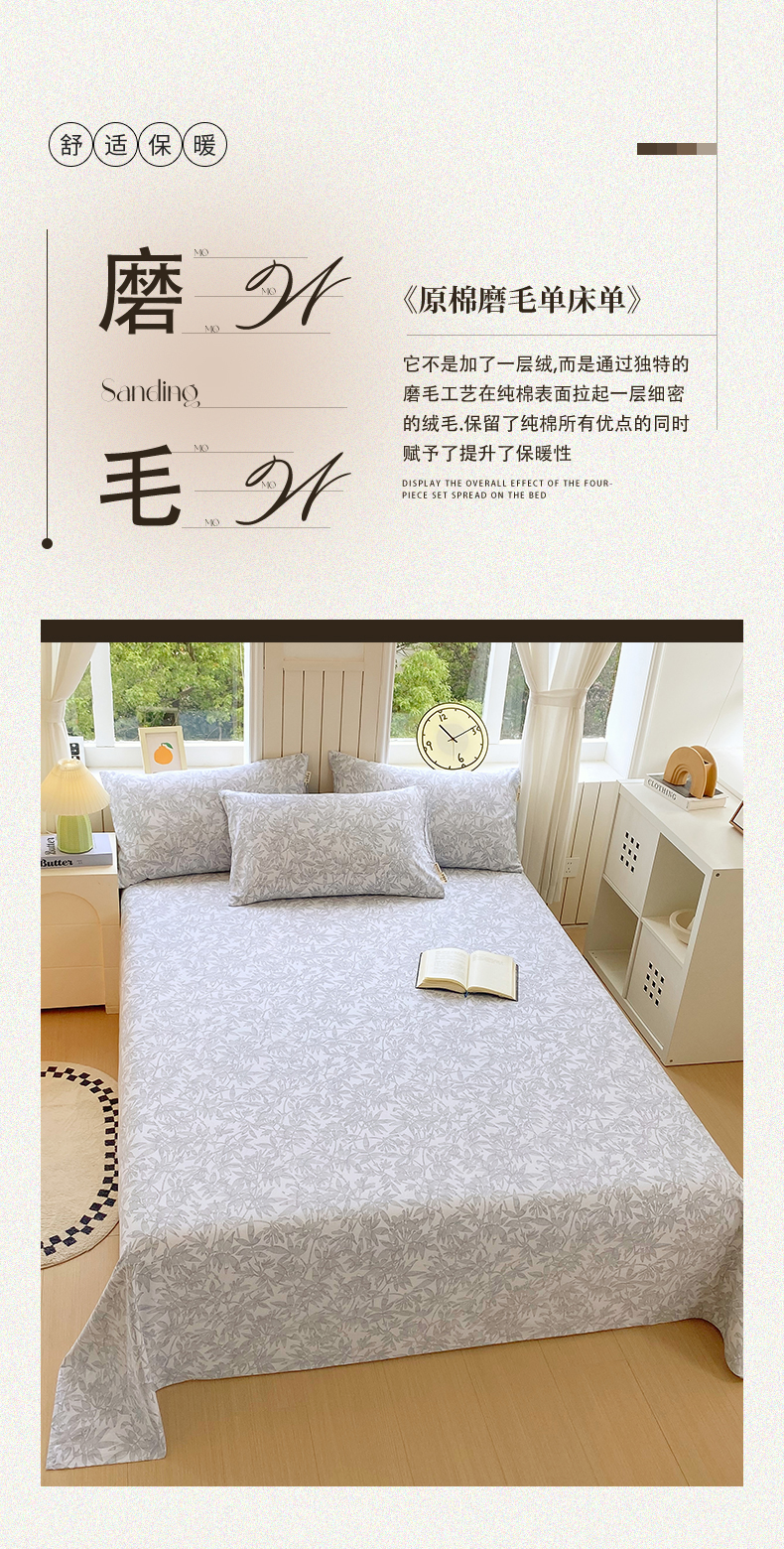 春皖家纺 2025新款原棉磨毛单床单 床单单件-风格一 恋影春天