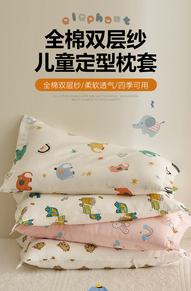 商品名称:乐可 2025新款双层纱儿童定型枕套 TC2礼帽小象白