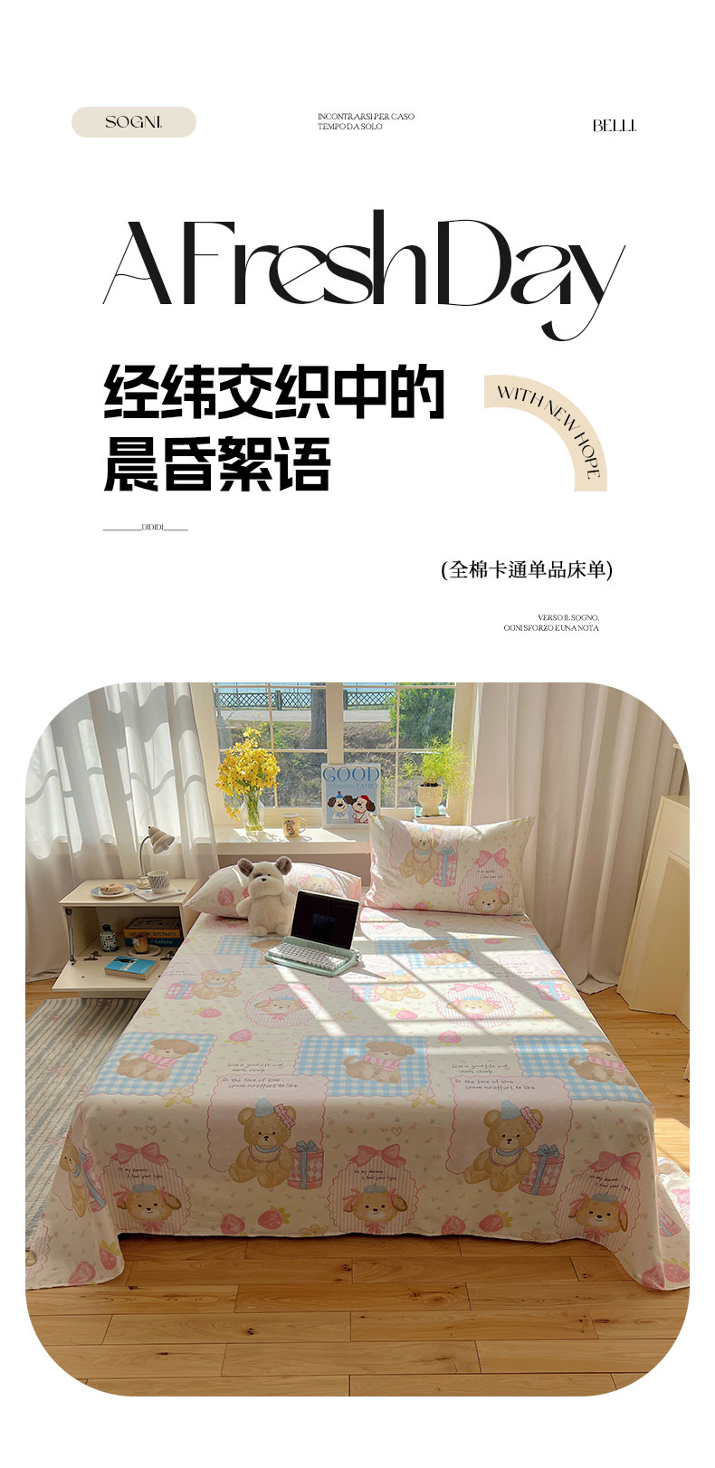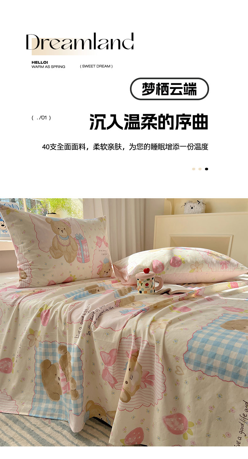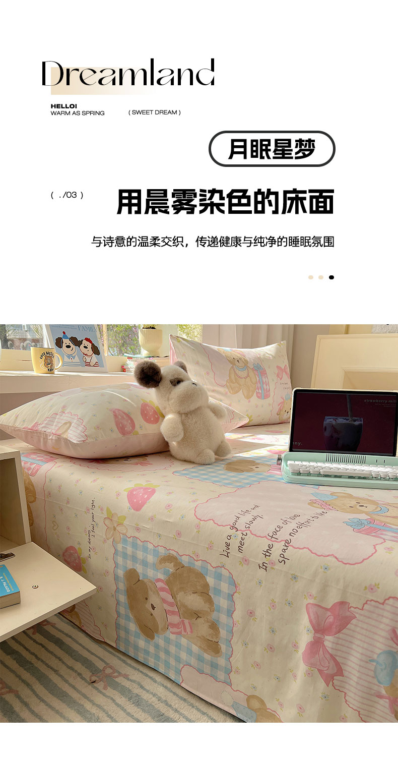 商品名称:六巷胡同 2026新款40支全棉13070卡通单品床单 草莓甜心犬