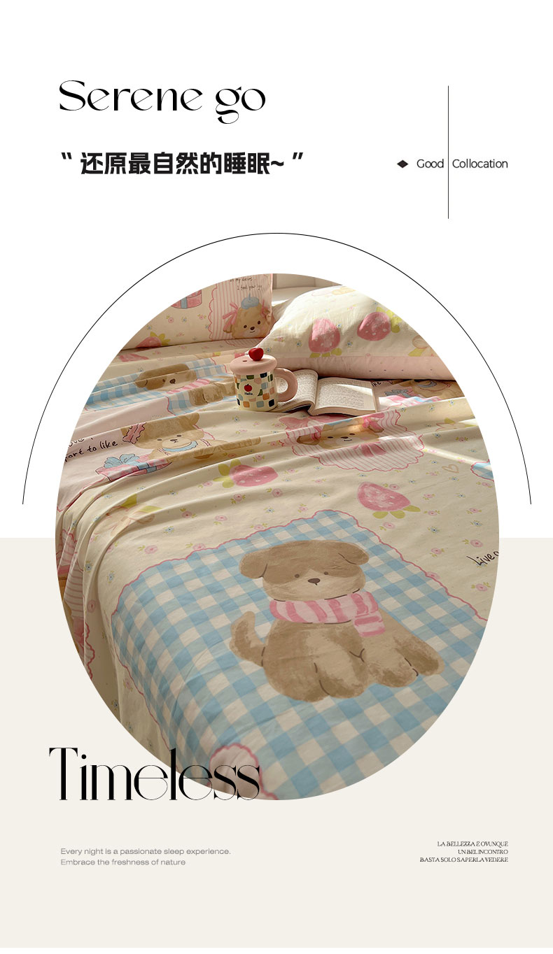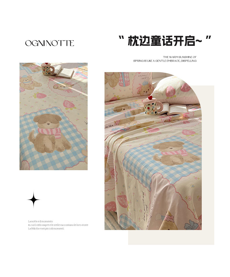 六巷胡同 2026新款40支全棉13070卡通单品床单 草莓甜心犬