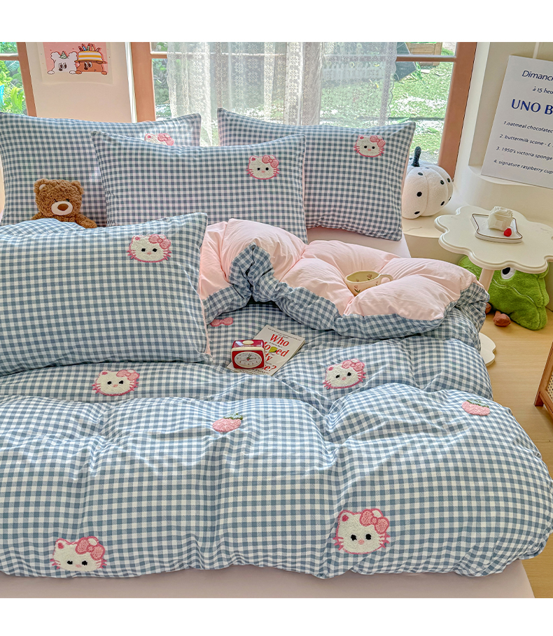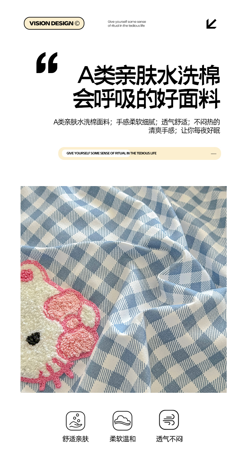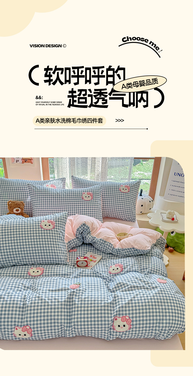 当前位置: 91家纺网 > 商品网购 > 床品套件 > 四件套 > 水洗棉四件套 > 优卡迪家纺馆 2026新款A类亲肤水洗棉毛巾绣系列四件套下载文件包含买家秀 草莓KT-布丁蓝