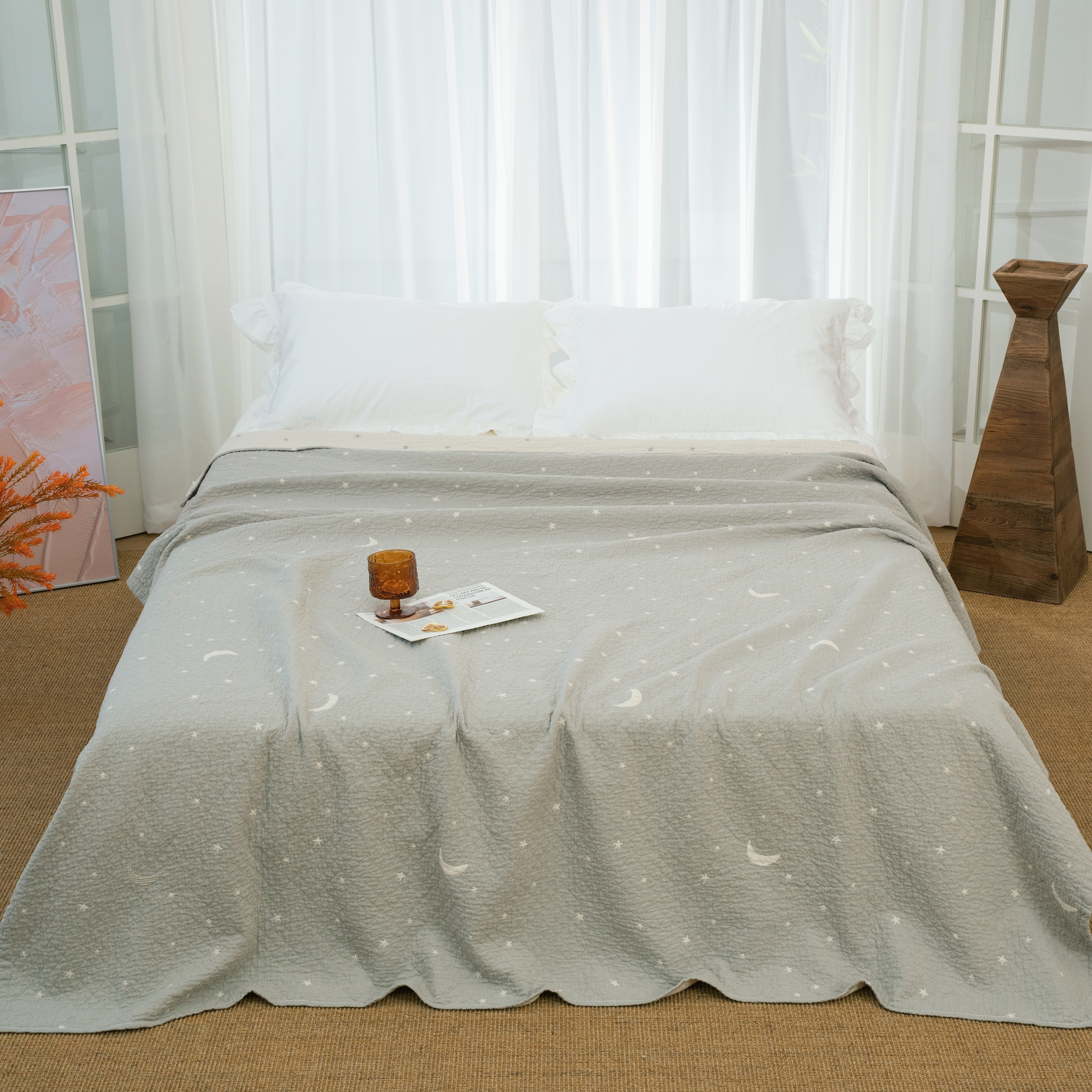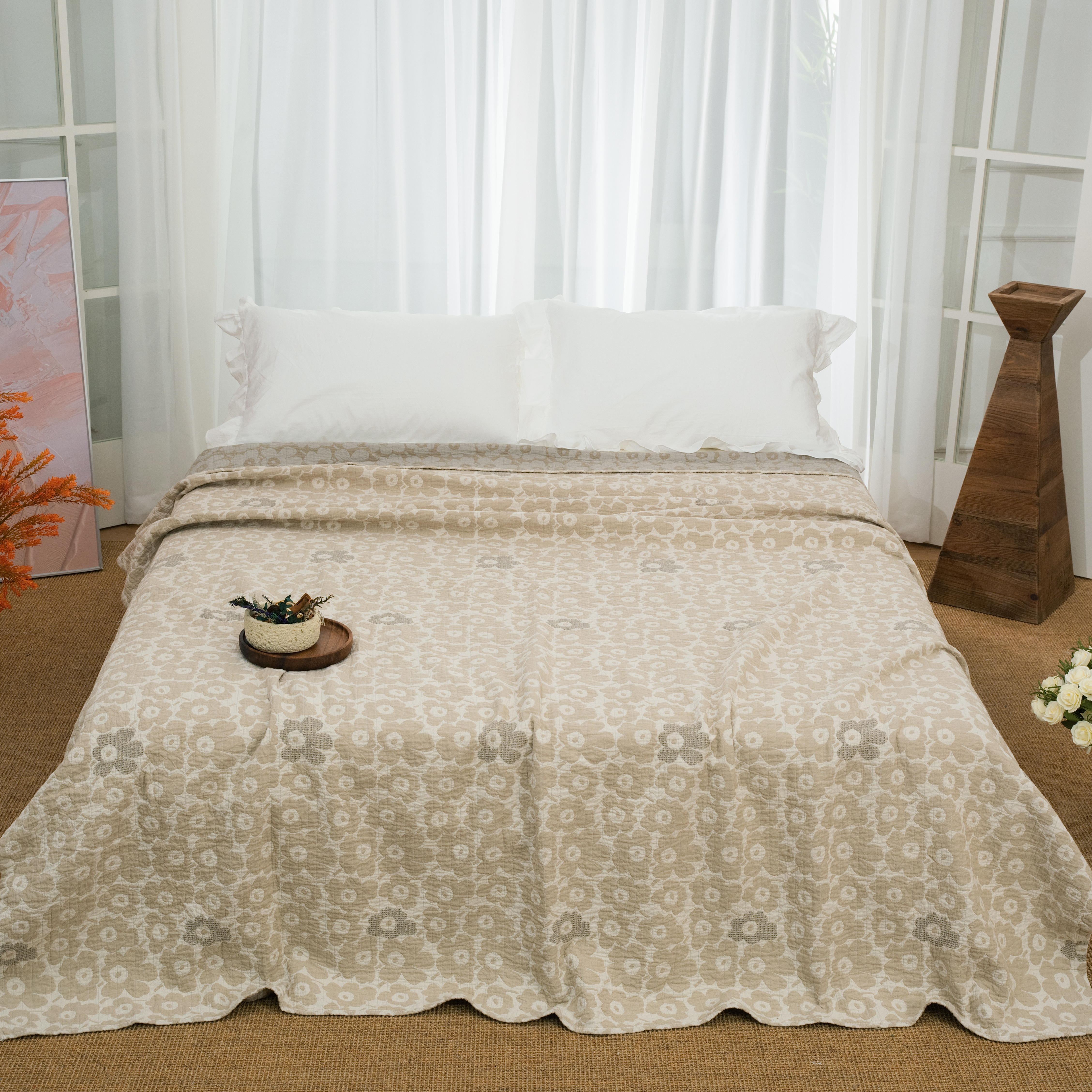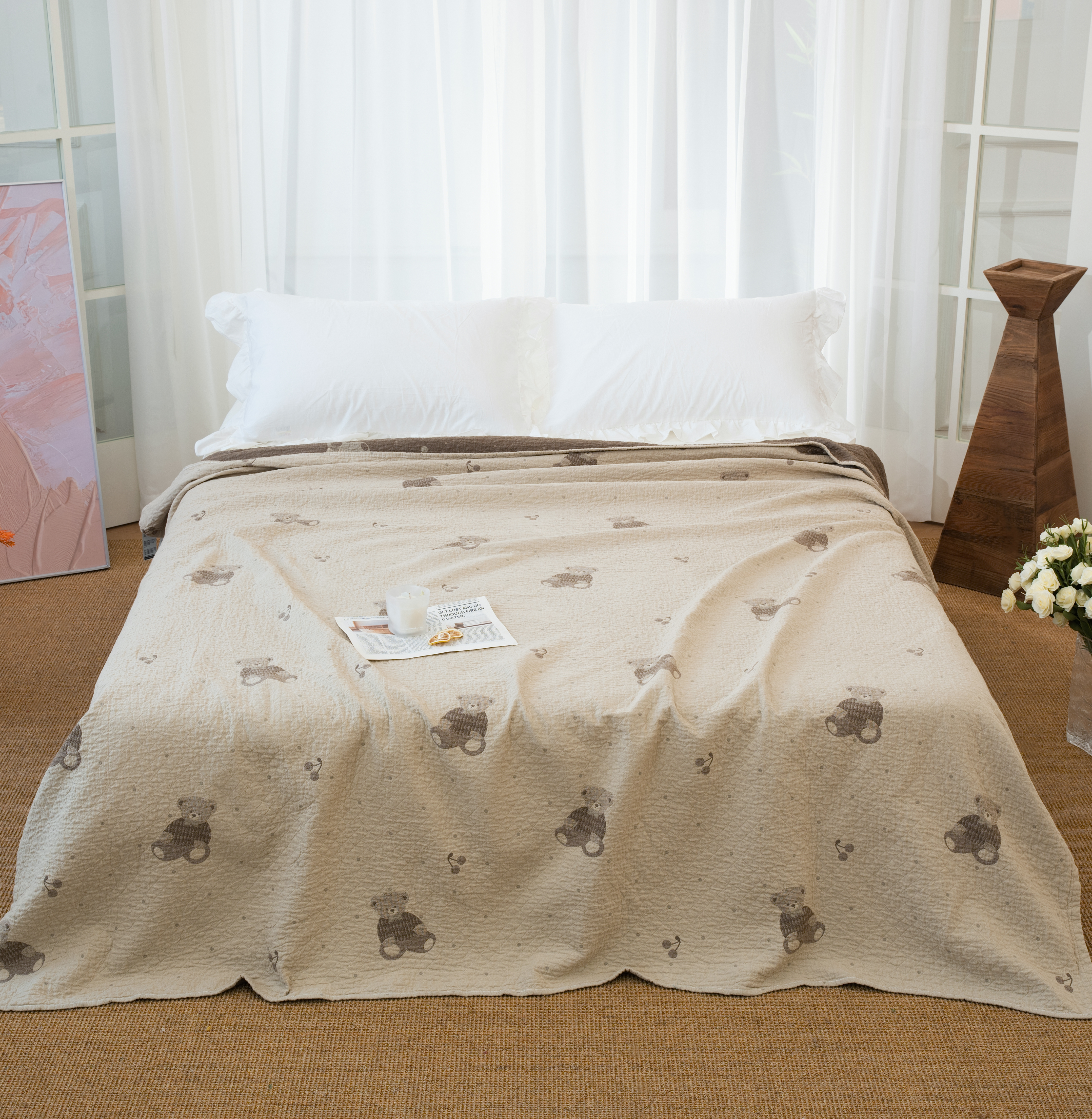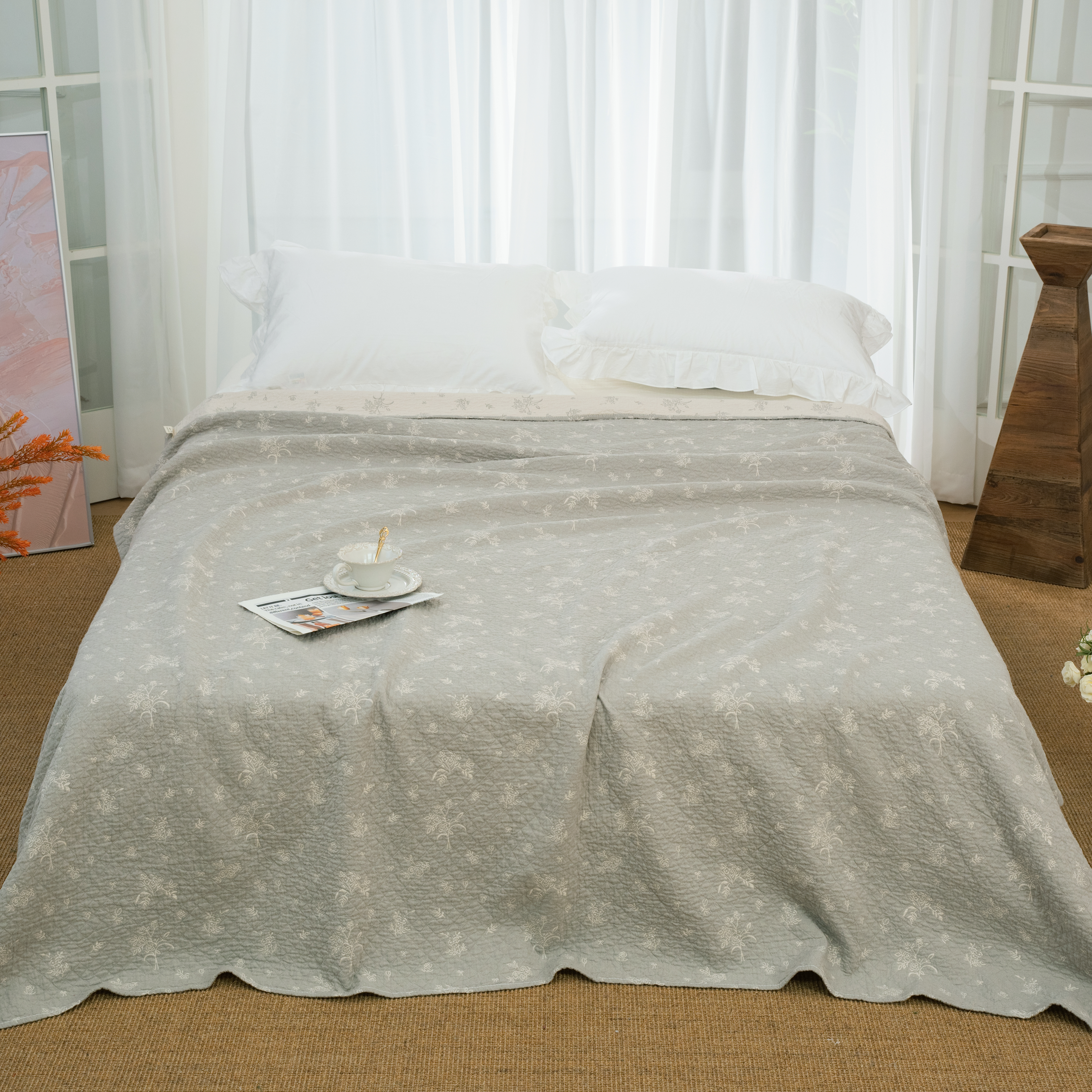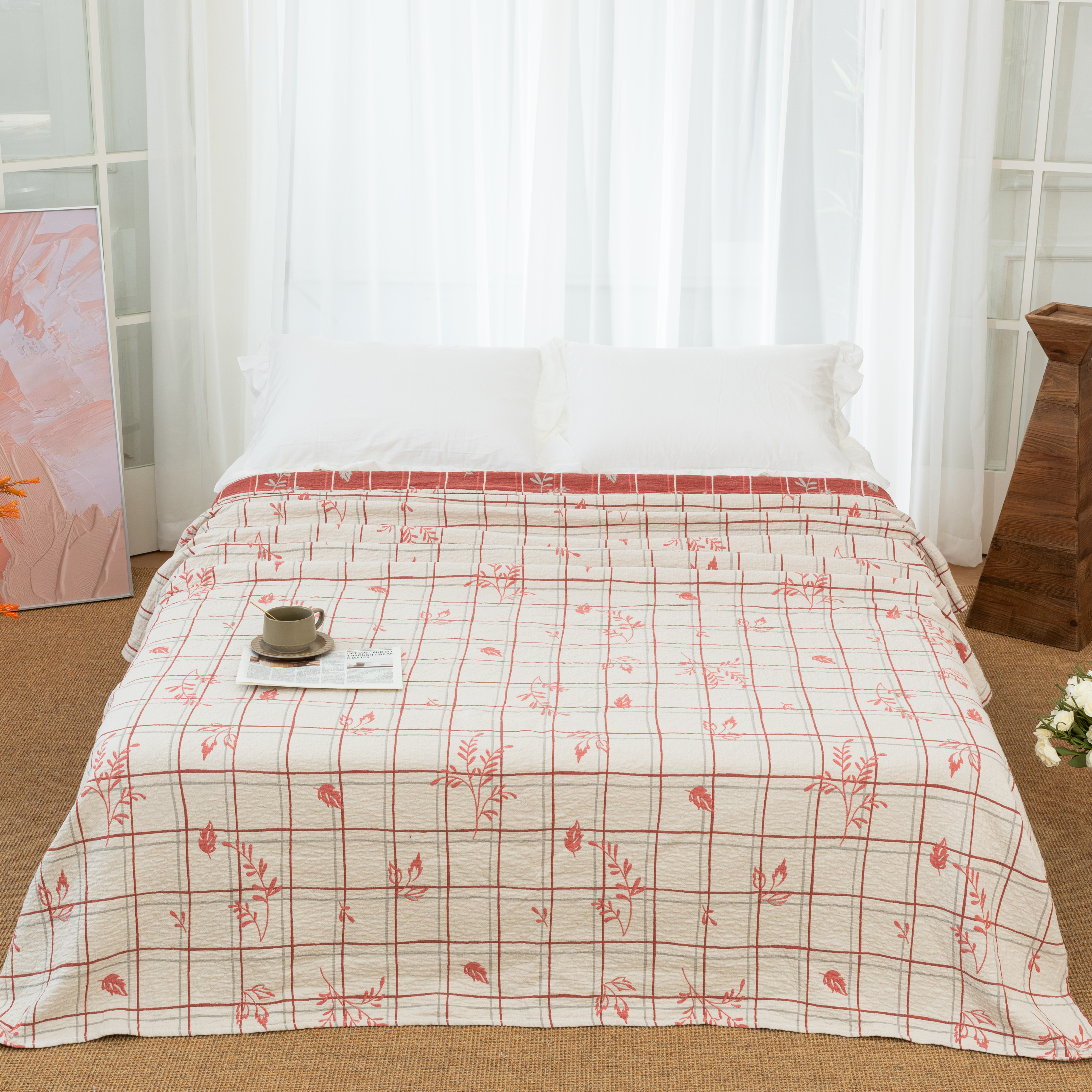 商品名称:(总)松色家居 2026新款全棉多层纱的全棉色织提花床盖