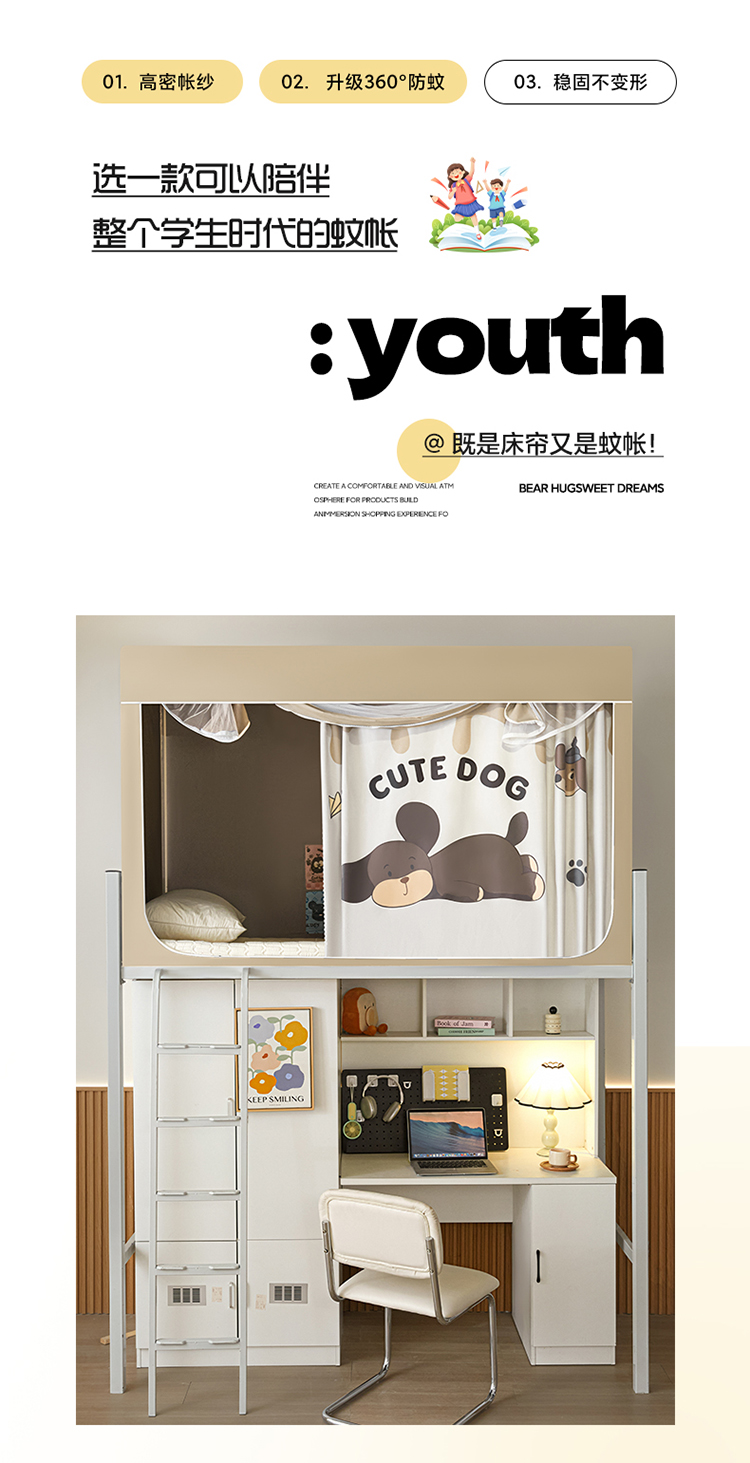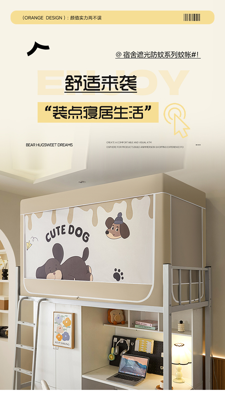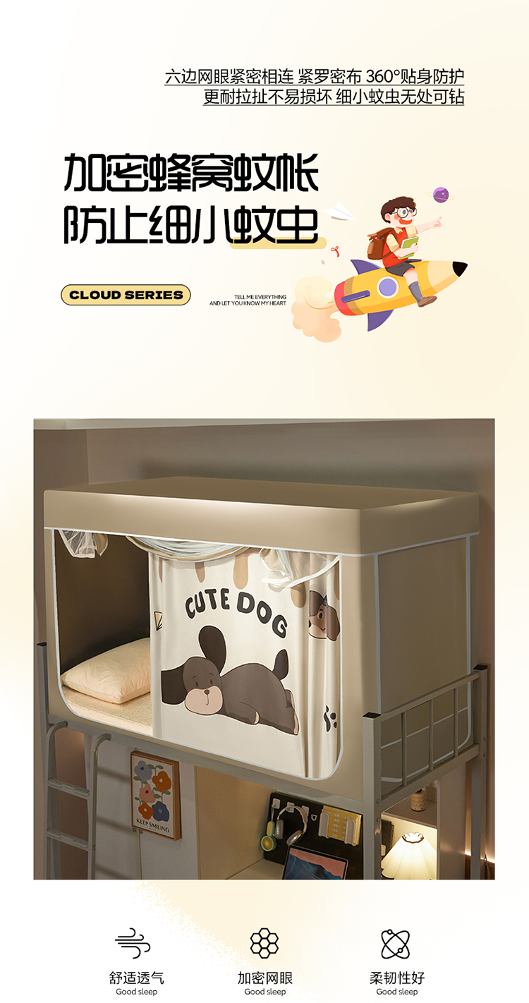 (总)初心家纺 2026新款学生床遮光蚊帐,绿色煤球,藏青,草莓熊,雏菊,花园熊猫,帕恰狗-灰,帕恰狗-蓝,甜心宝贝,玉桂狗,蓝色恐龙,小金鱼,纯灰色