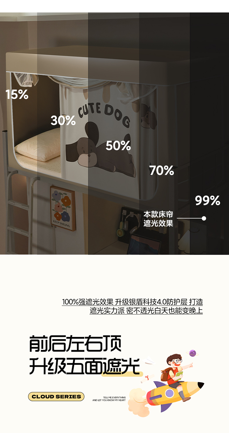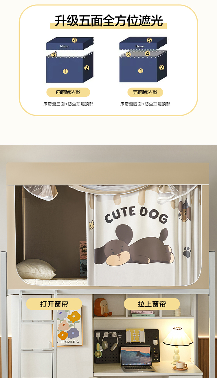 (总)初心家纺 2026新款99%五面遮光加厚涂层遮光大版数码印花带靠墙帘卡通学生蚊帐,摆烂芝麻球,发呆呆考拉,粉红小玉桂,奋斗的小狗,可爱俱乐部,快乐小新,奶萌labubu,俏皮猫咪,小熊懒洋洋