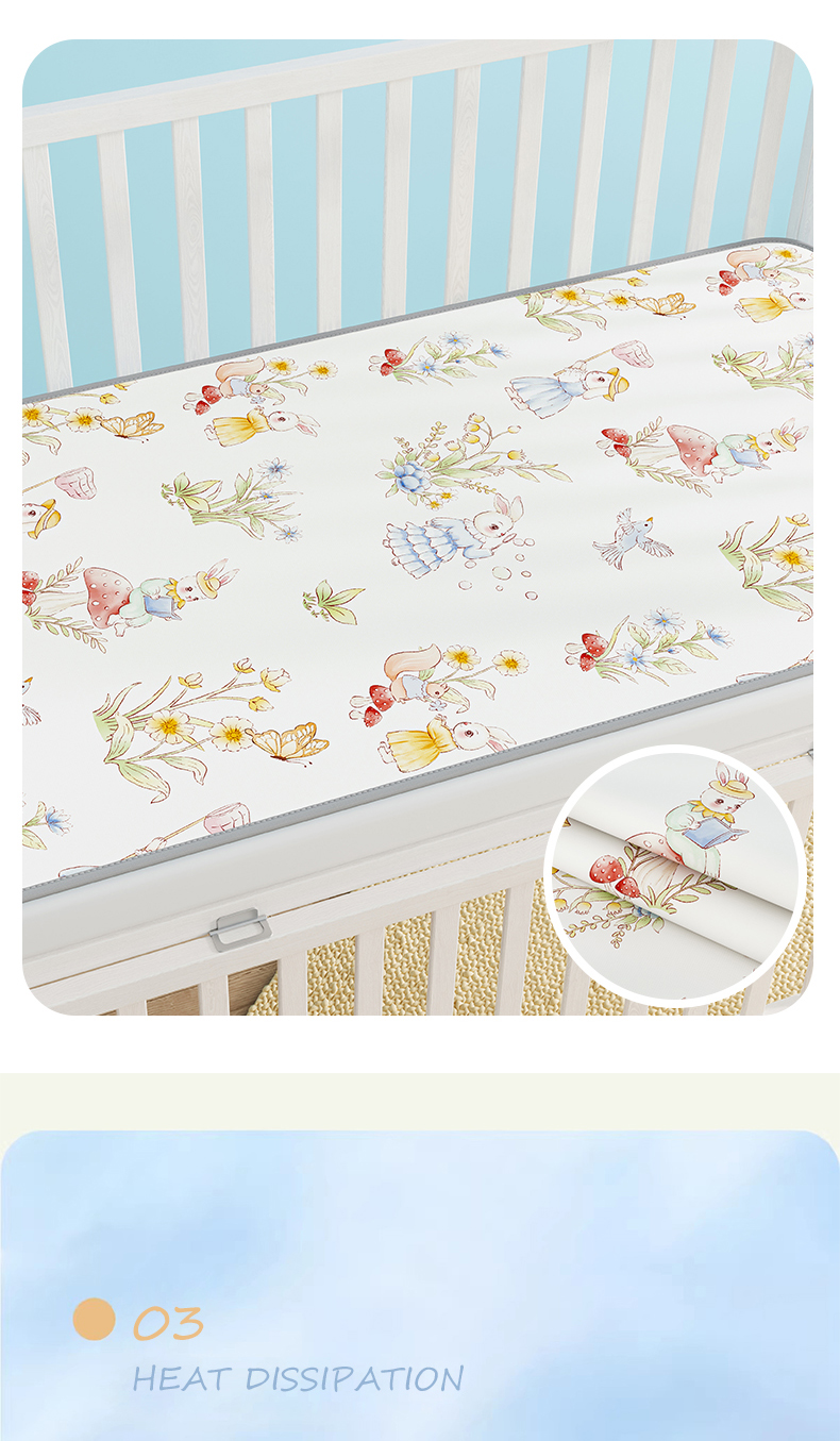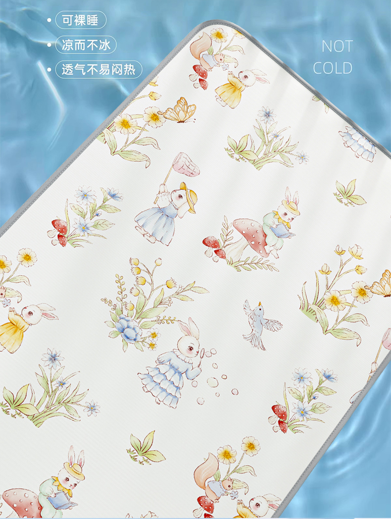 当前位置: 91家纺网 > 商品网购 > 婴童用品 > 婴童凉席 > 家品罗兰 2026春夏新款数码印花婴儿床冰丝席-水光冰丝系列 精灵小兔