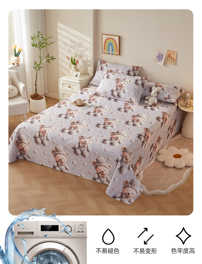 当前位置: 91家纺网 > 商品网购 > 床上用品 > 凉席 > 其他凉席 > 奇丝雅 2026新款数码印花5D加厚老粗布床单单件双人家用特厚被单三件套学生宿舍床单凉席 哈尼熊