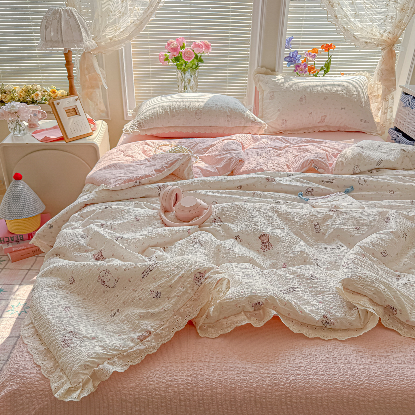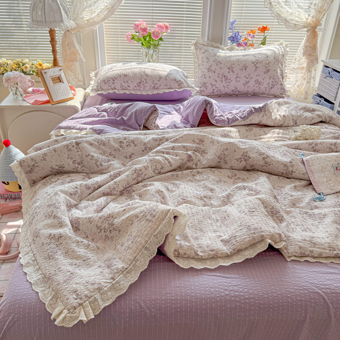 商品名称:玉海棠家纺 2026新款泡芙纱全棉纯棉蕾丝花边夏被-花笺系列(软乎乎的质感,治愈所有疲惫) 花笺-格格心