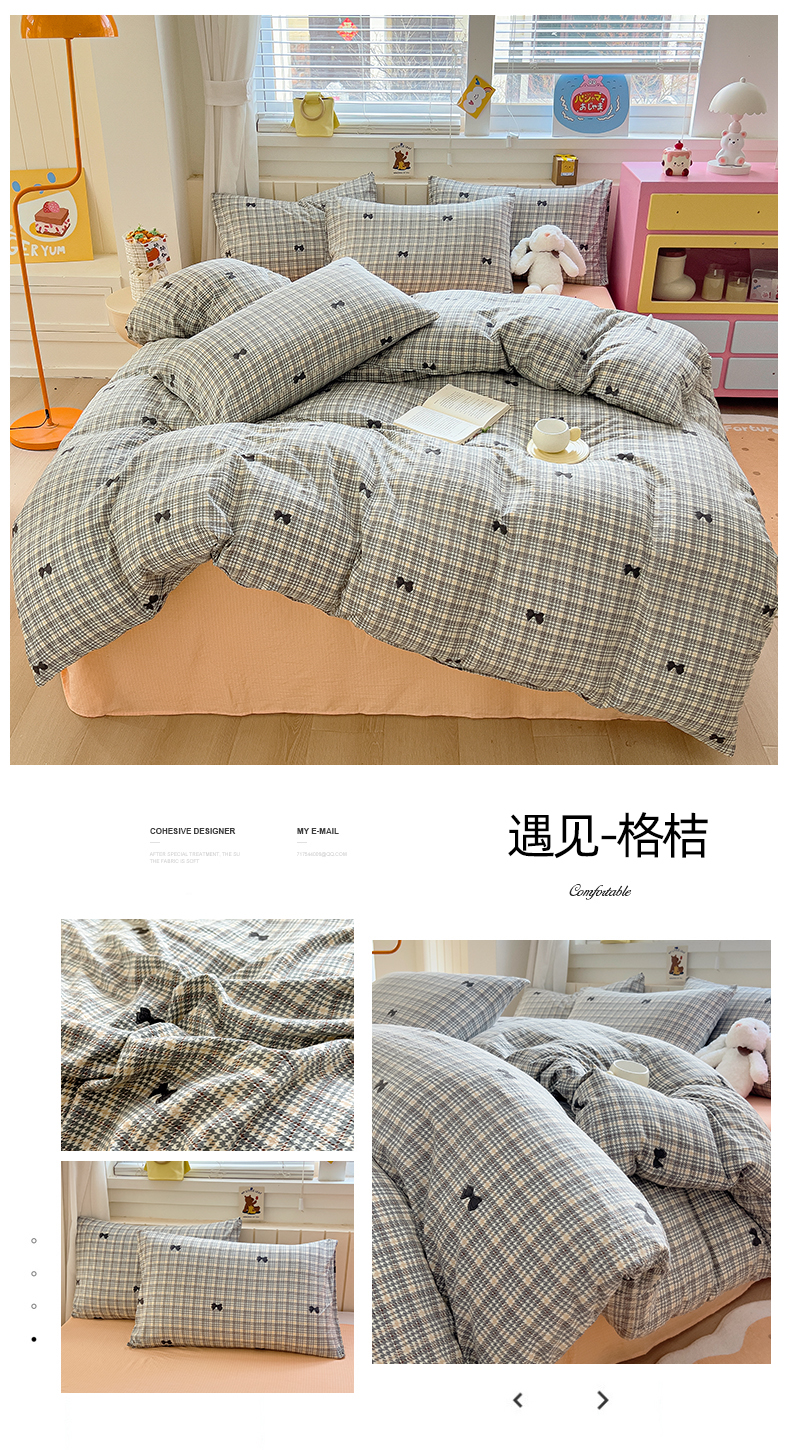 商品名称:找底底家纺 2026新款泡泡棉小清新双层纱床裙款四件套 遇见-格桔