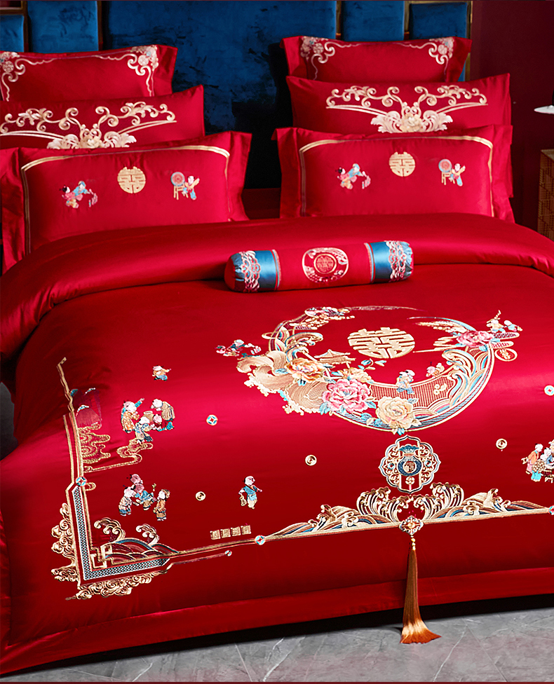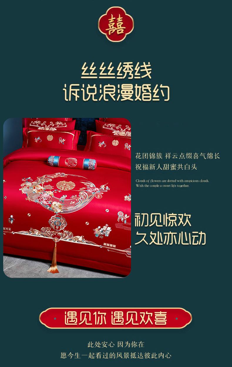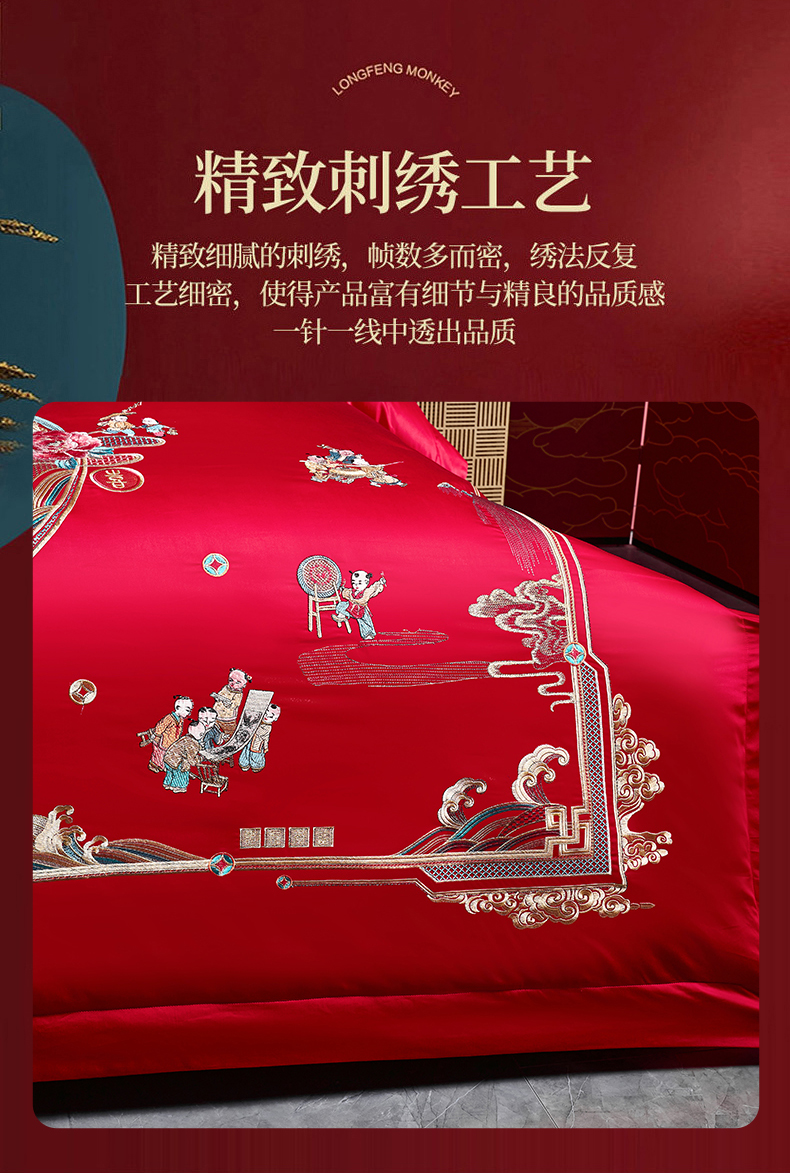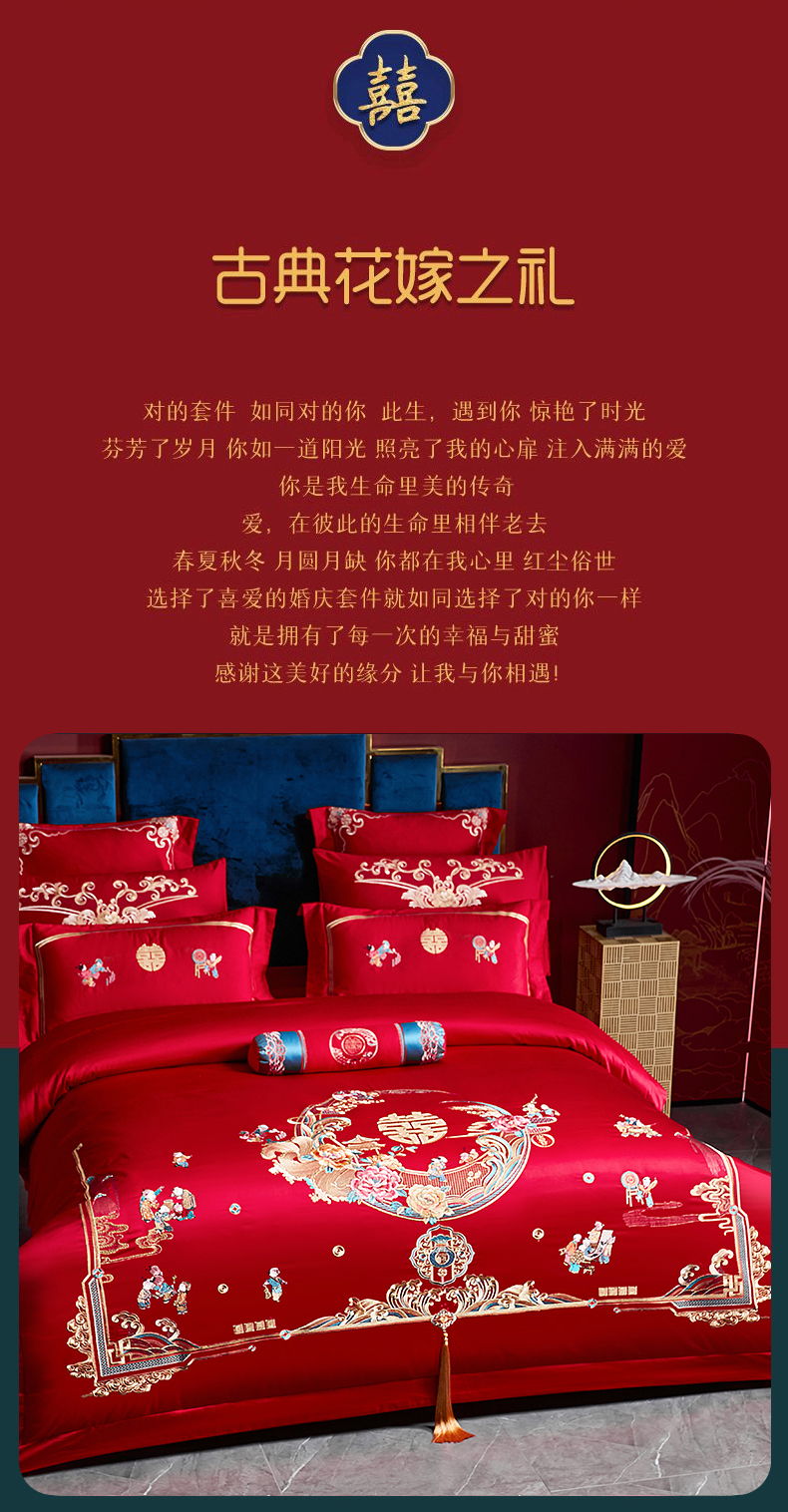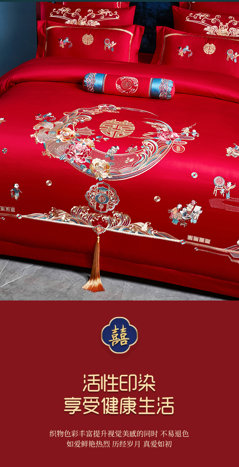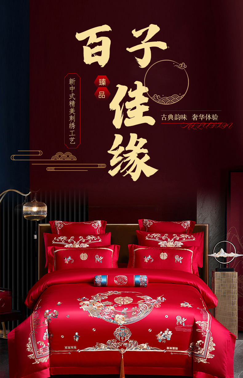 当前位置: 91家纺网 > 商品网购 > 床品套件 > 四件套 > 婚庆四件套 > 博之洋婚庆 2026新款全棉纯棉长绒棉刺绣婚庆四件套多件套 百子佳缘