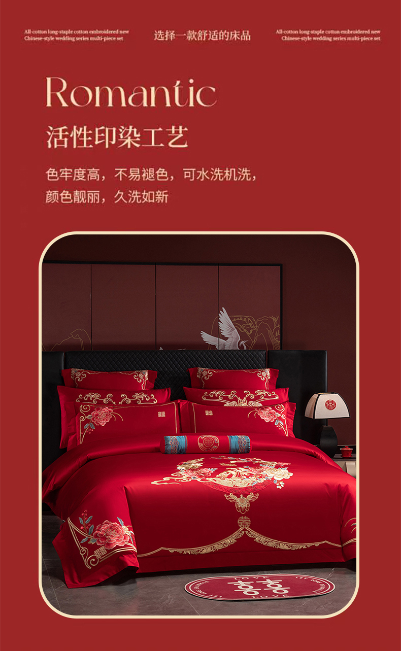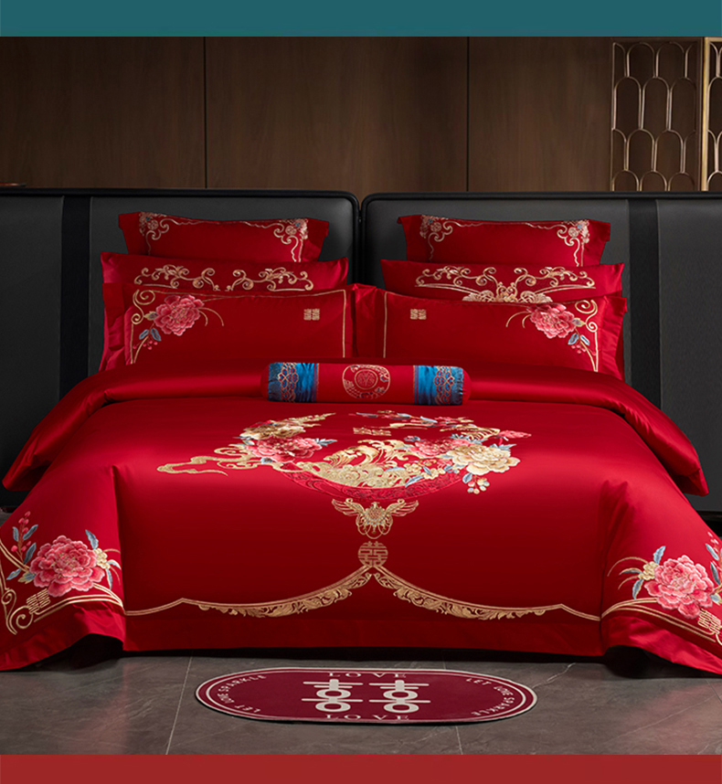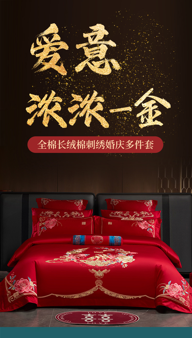当前位置: 91家纺网 > 商品网购 > 床品套件 > 四件套 > 婚庆四件套 > 博之洋婚庆 2026新款全棉纯棉长绒棉刺绣婚庆四件套多件套 爱意浓浓-金