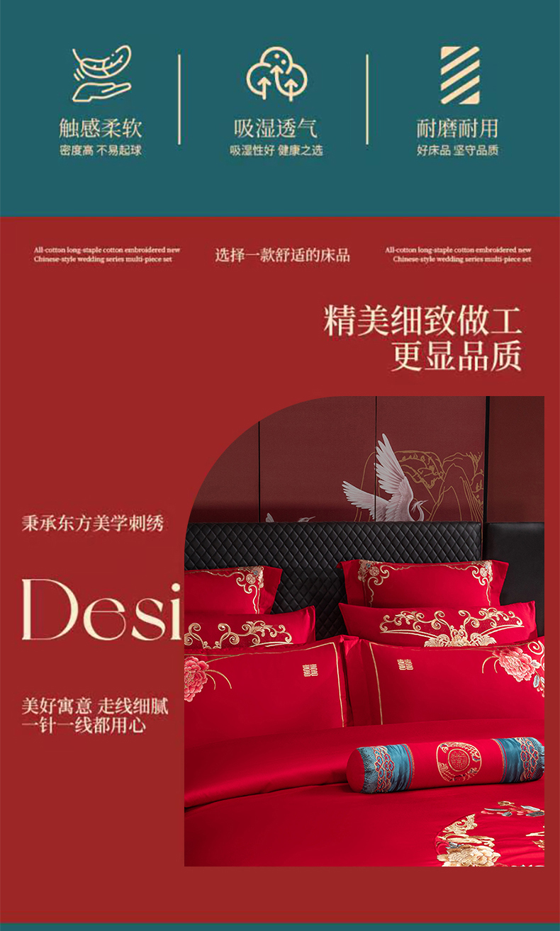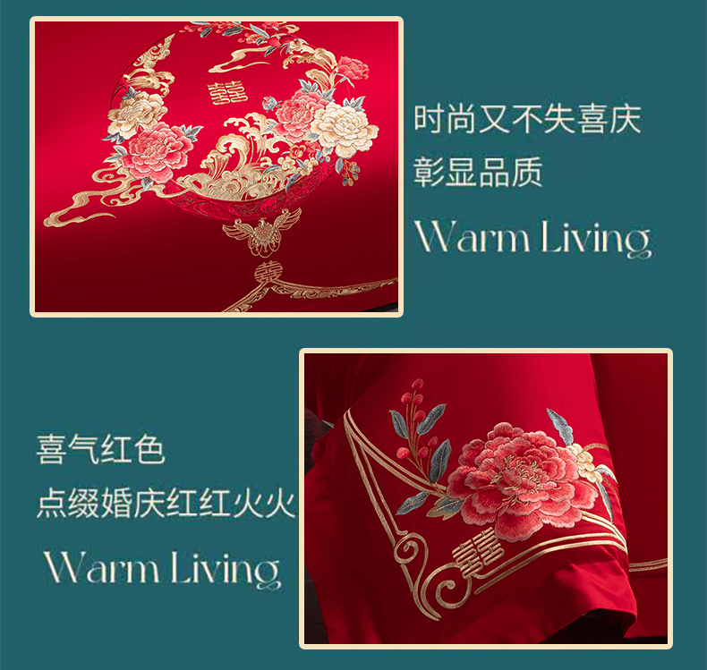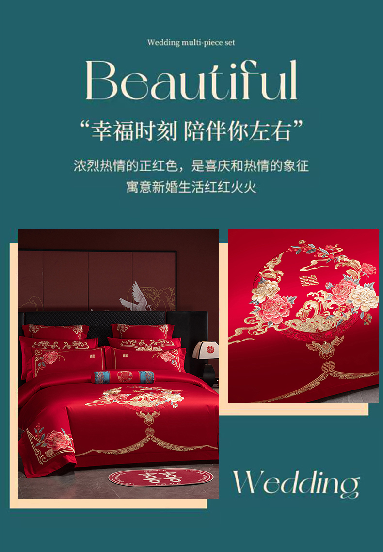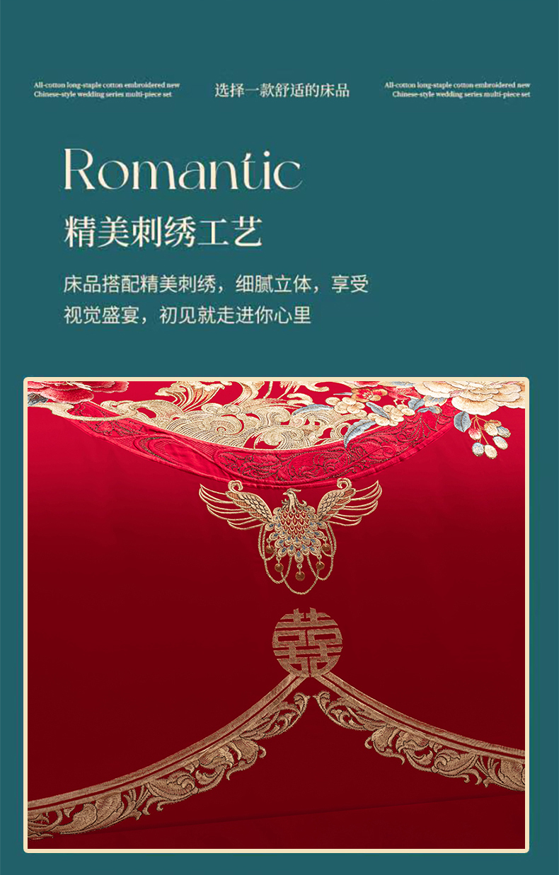 当前位置: 91家纺网 > 商品网购 > 床品套件 > 四件套 > 婚庆四件套 > 博之洋婚庆 2026新款全棉纯棉长绒棉刺绣婚庆四件套多件套 爱意浓浓-金