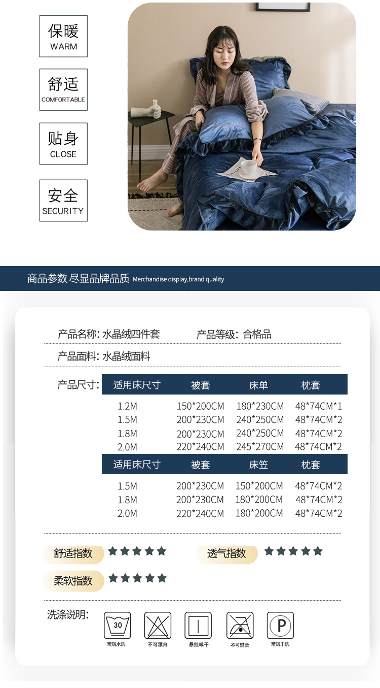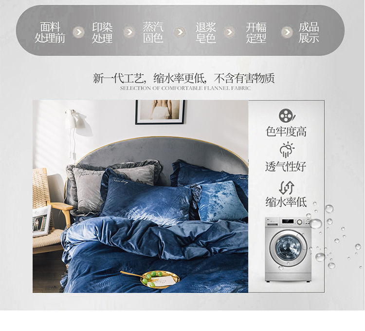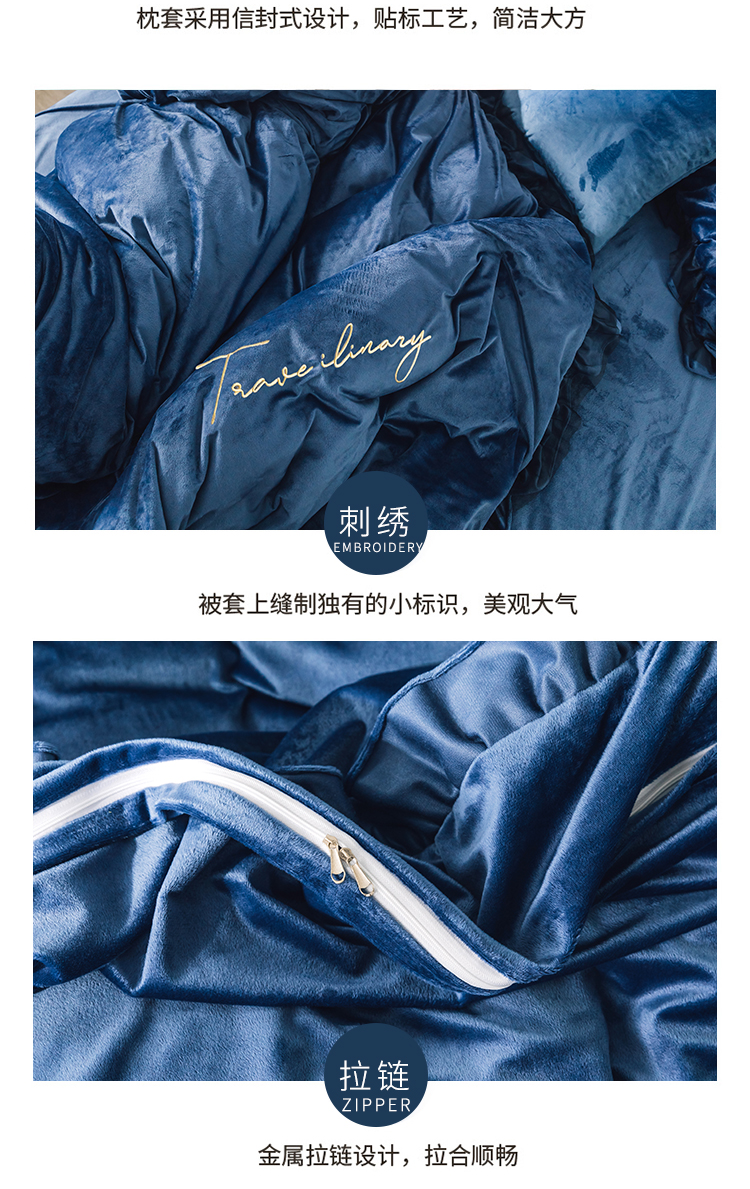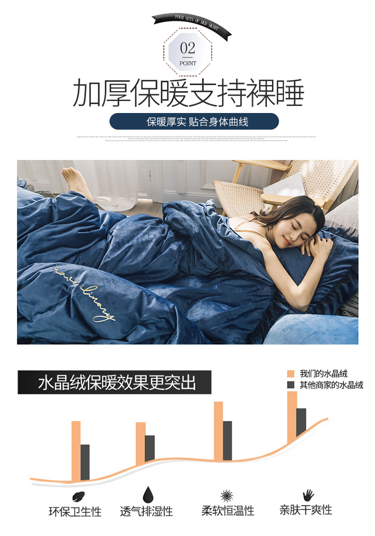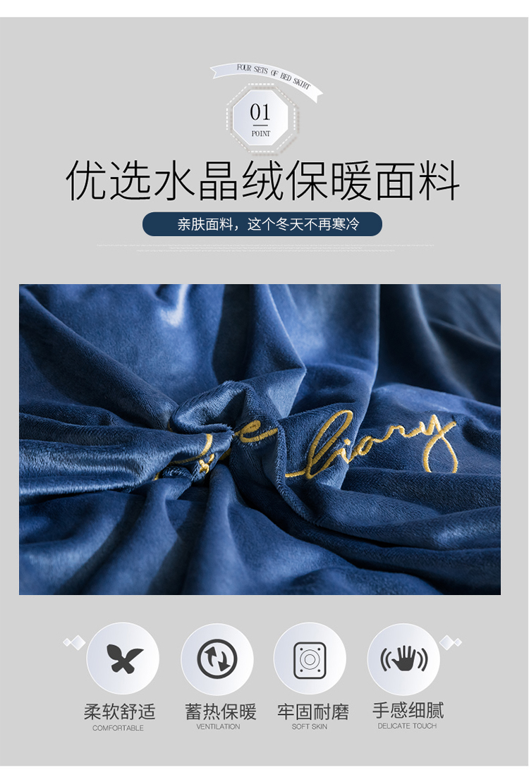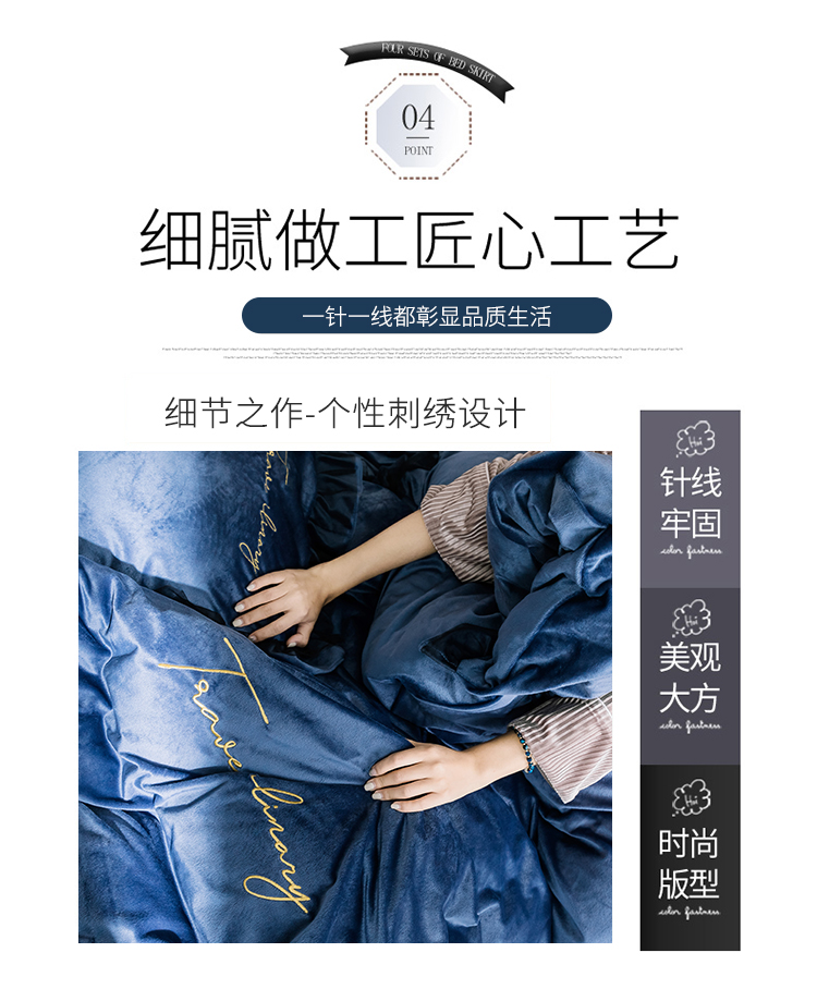 商品名称:润缦 2019新款水晶绒蕾丝边四件套 蕾丝-深海蓝