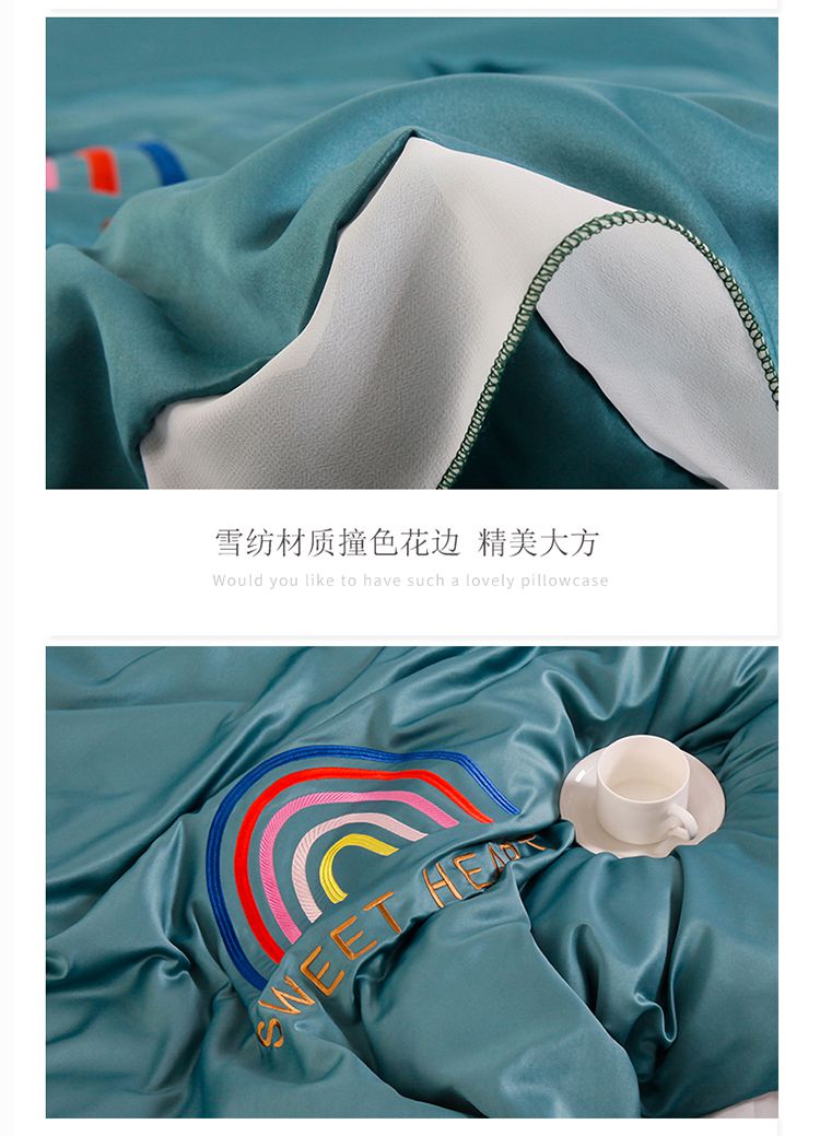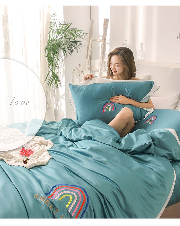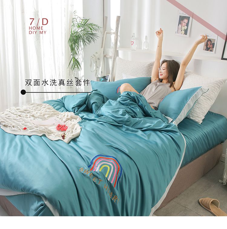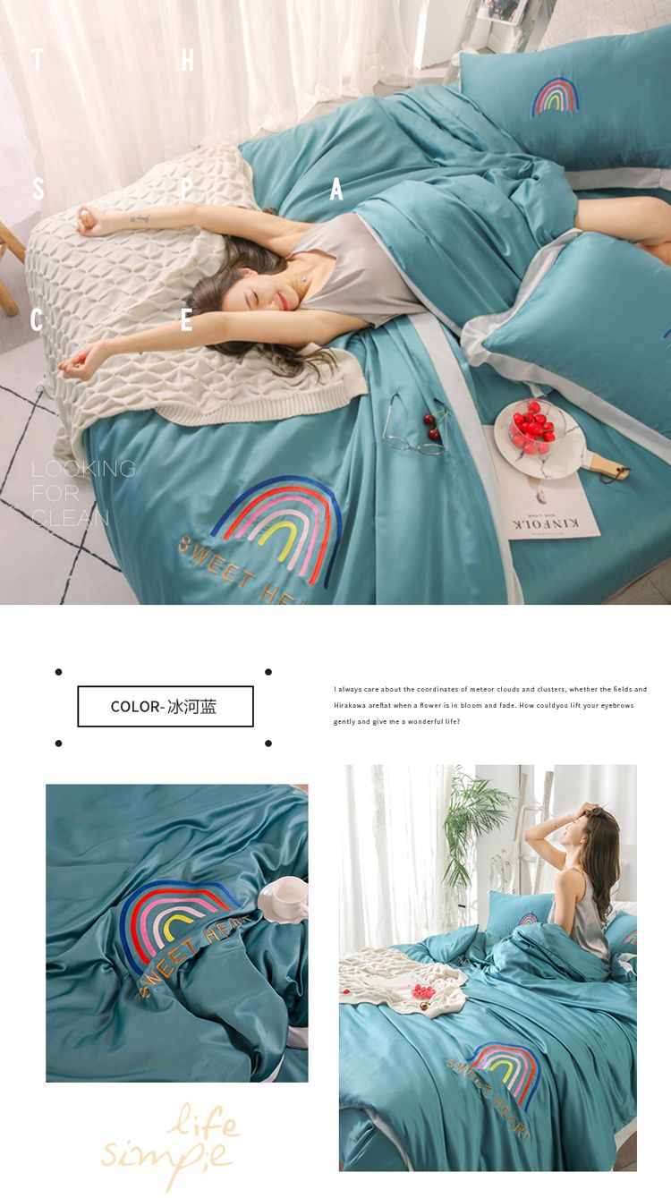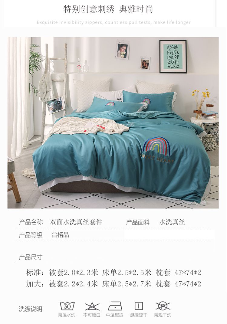 商品名称:博纳 2020新款双面水洗真丝四件套雪纺绣花彩虹之约 冰河蓝