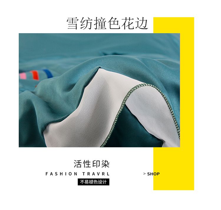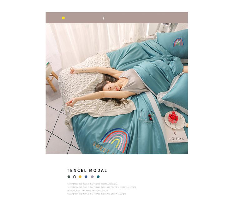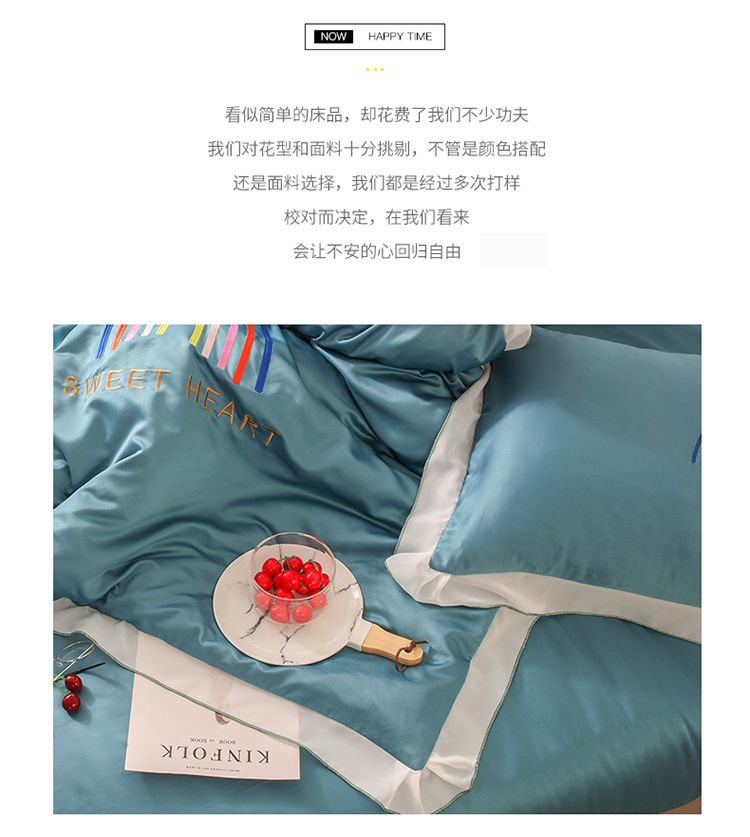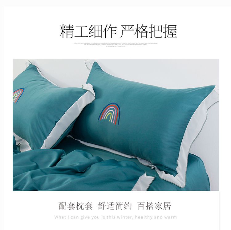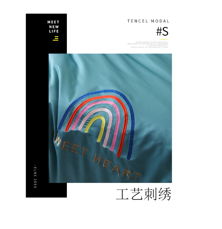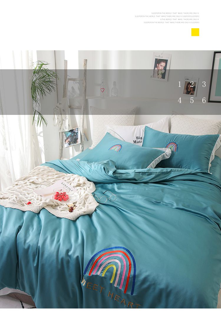 商品名称:博纳 2020新款双面水洗真丝四件套雪纺绣花彩虹之约 冰河蓝