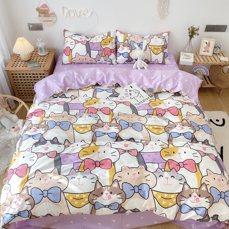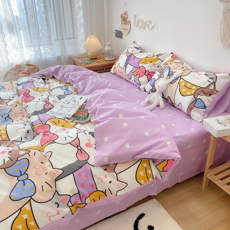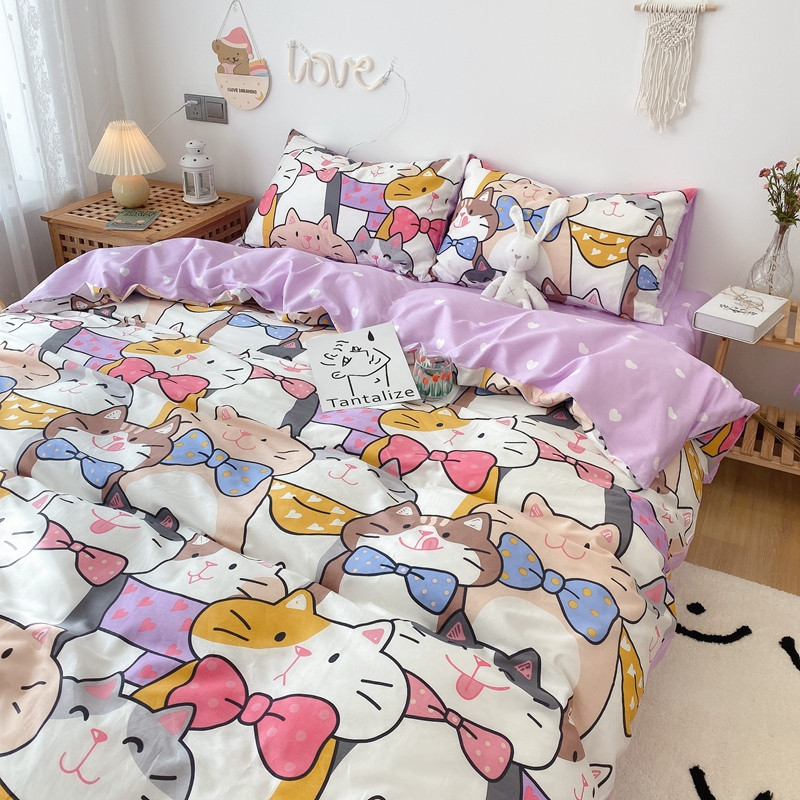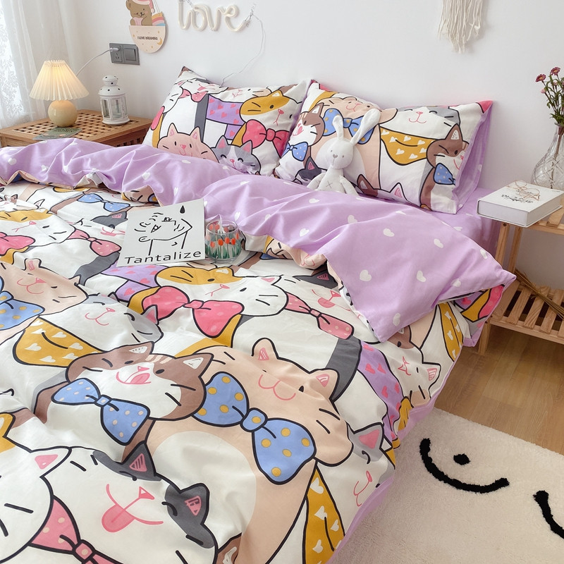 当前位置: 91家纺网 > 商品网购 > 床品套件 > 四件套 > 全棉普通四件套 > 2022年新款卡通系列全棉印花四件套实拍图直播爆款 喵喵聚会