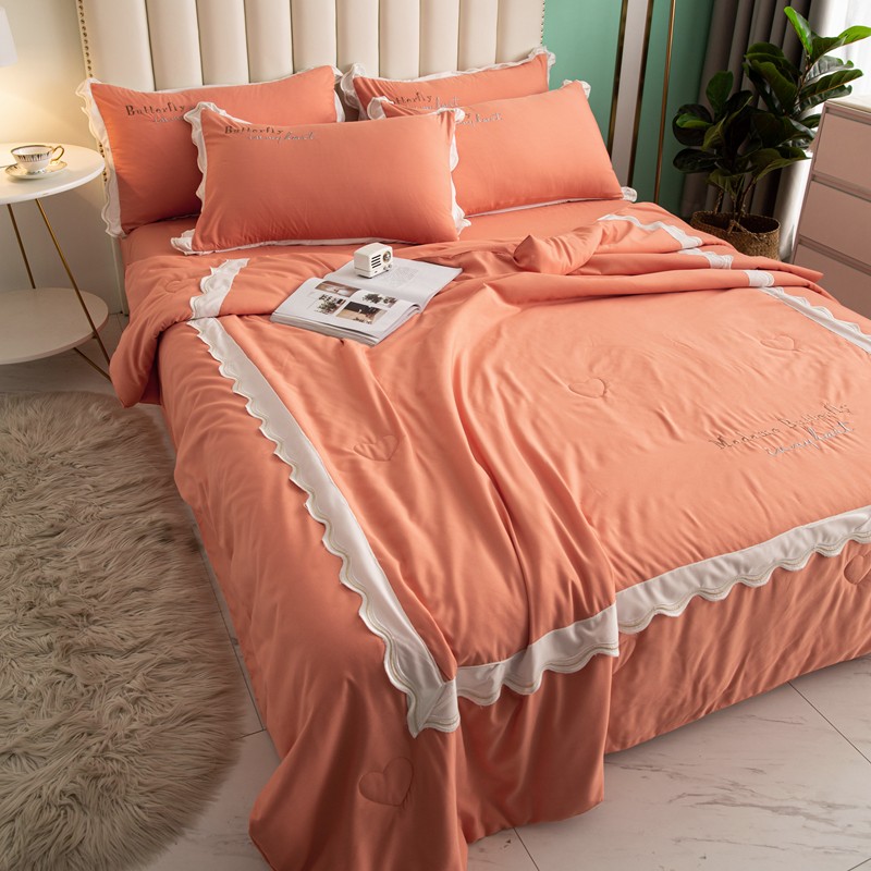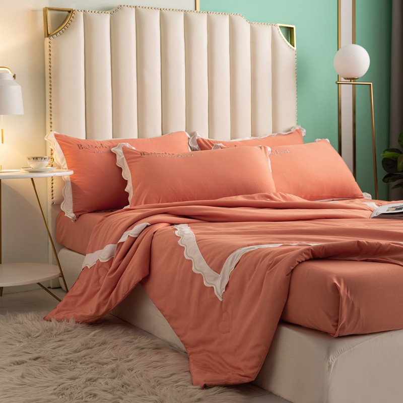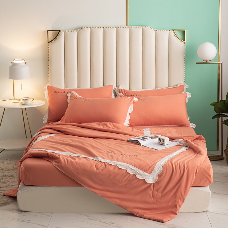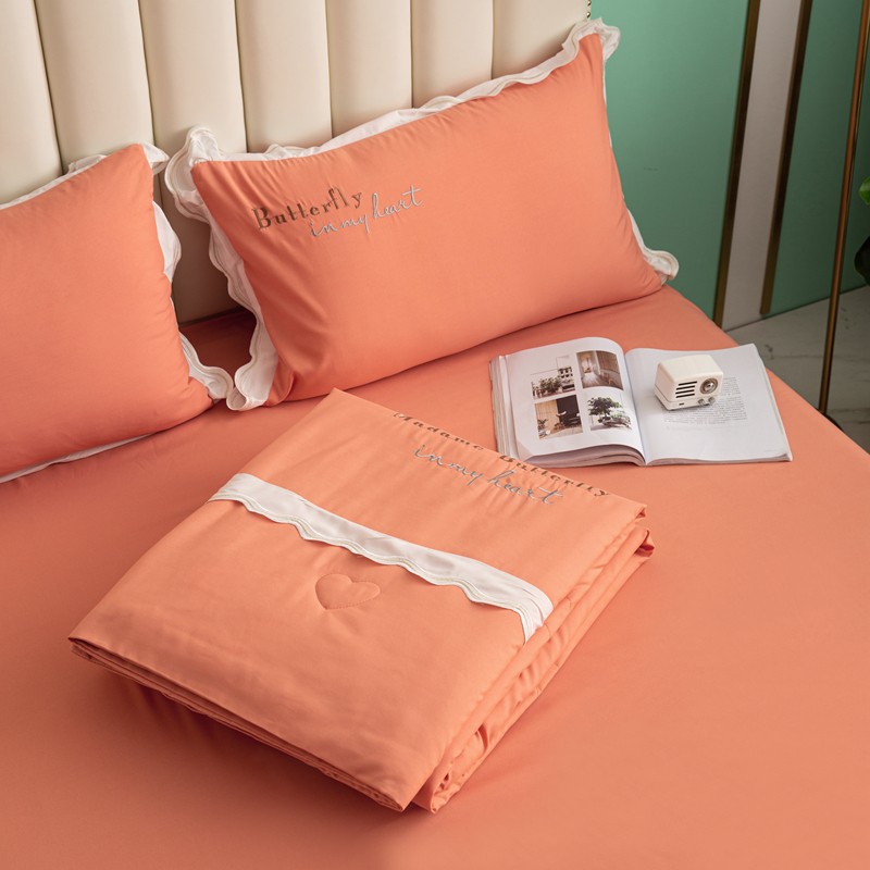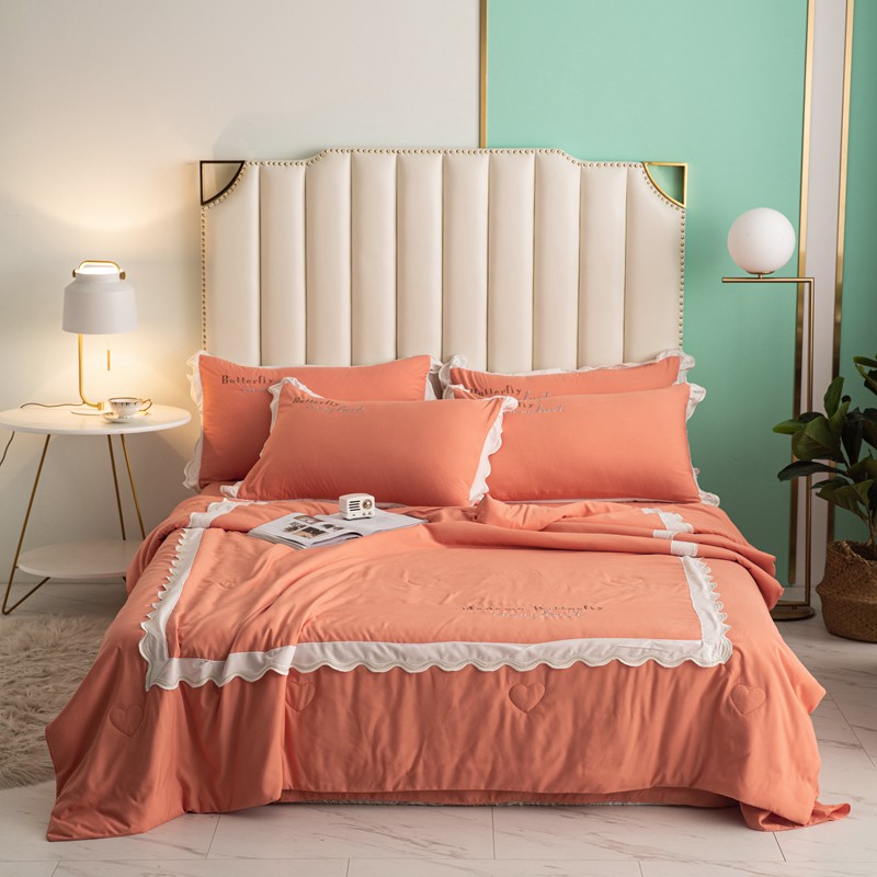 商品名称:安妮家居 2021新款法式仙女风水洗刺绣夏被四件套 优雅橙