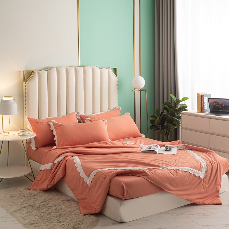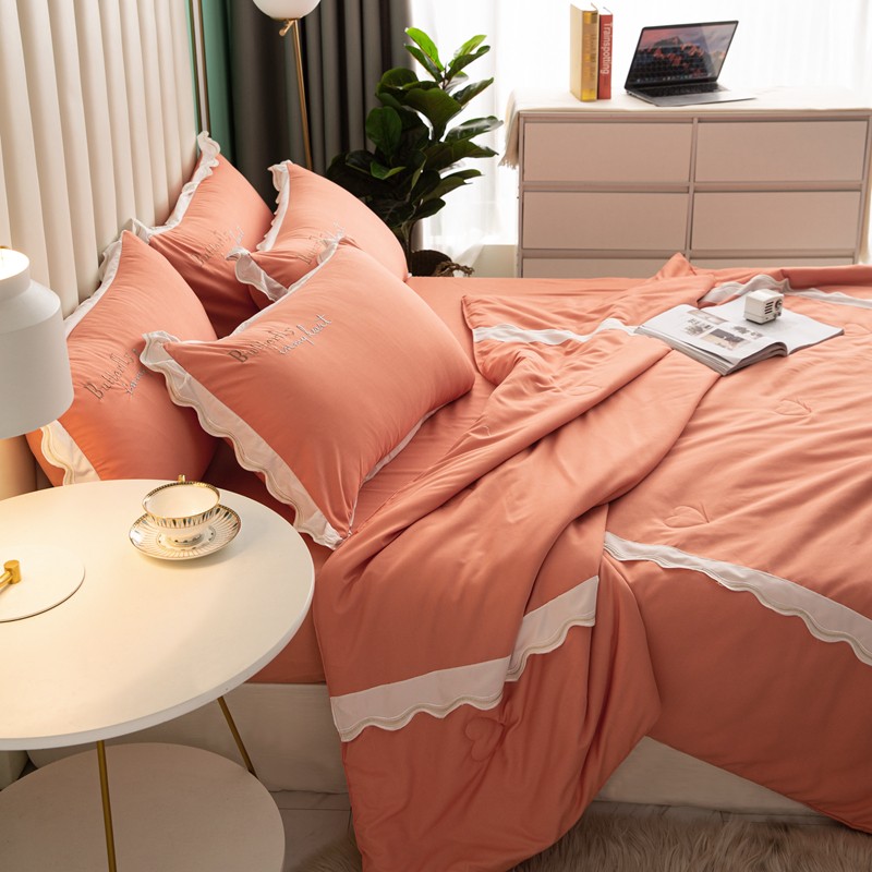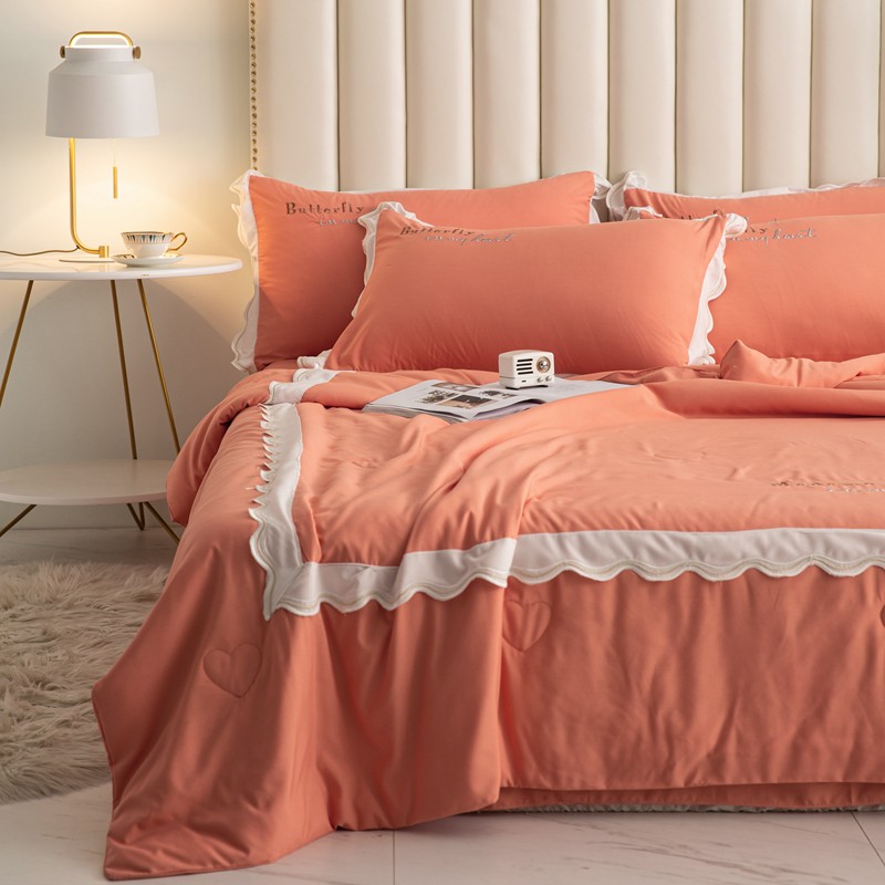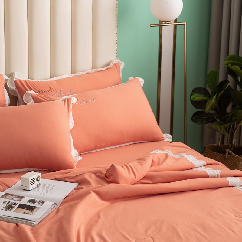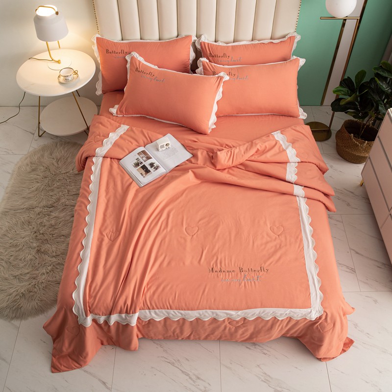 商品名称:安妮家居 2021新款法式仙女风水洗刺绣夏被四件套 优雅橙
