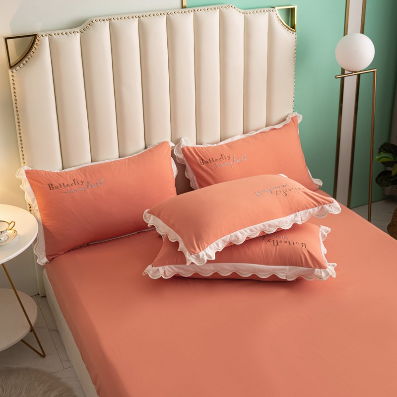 安妮家居 2021新款法式仙女风水洗刺绣夏被四件套 优雅橙