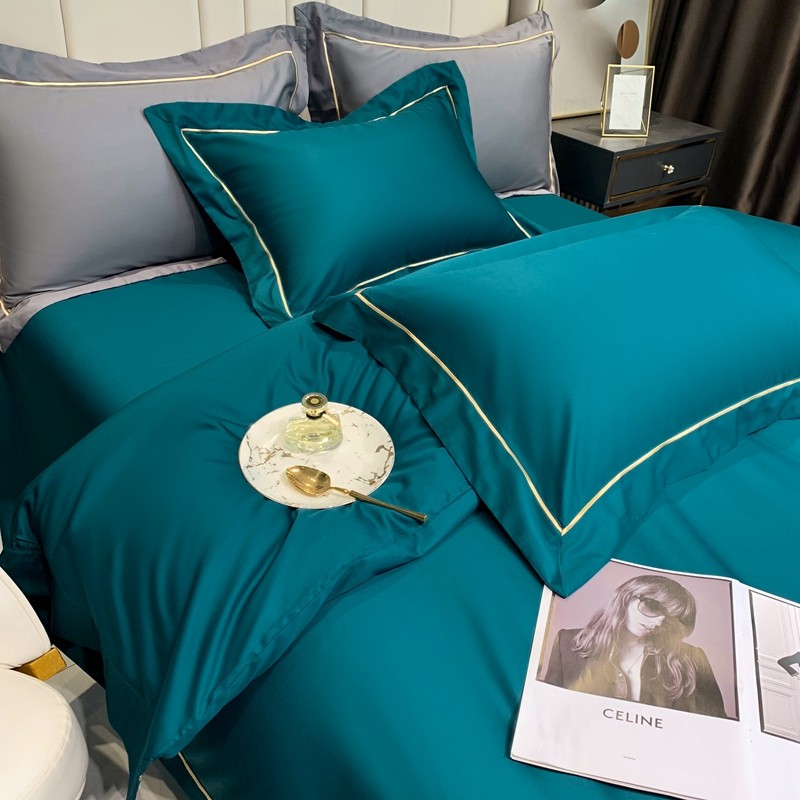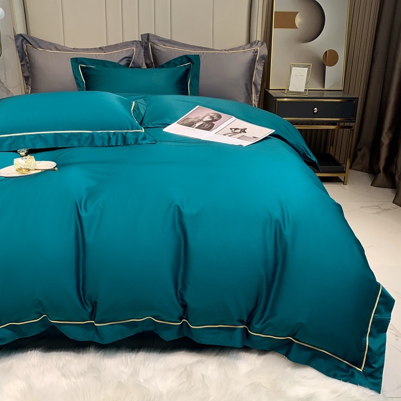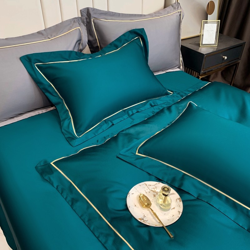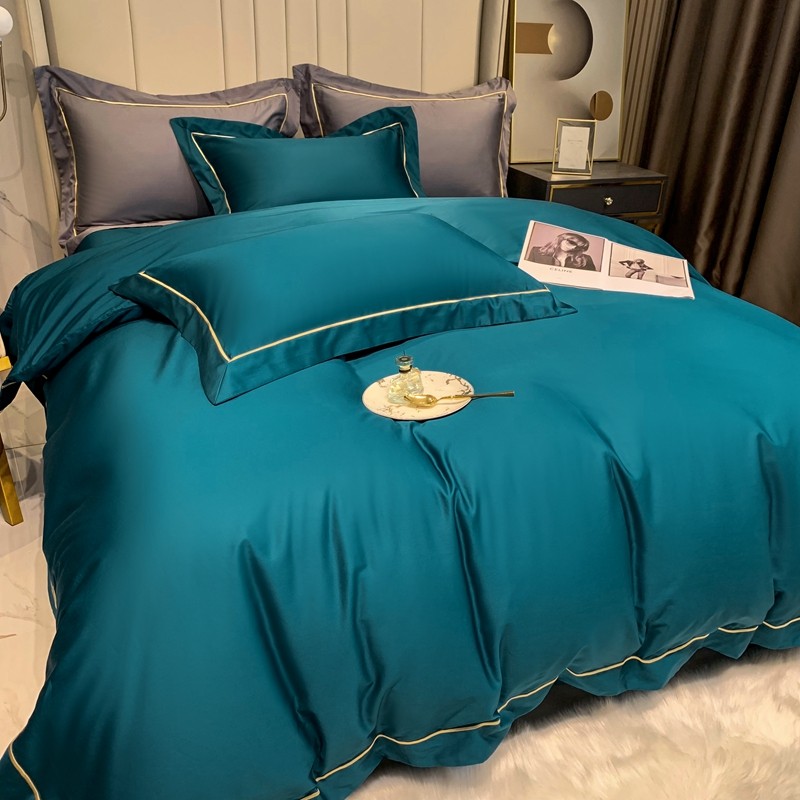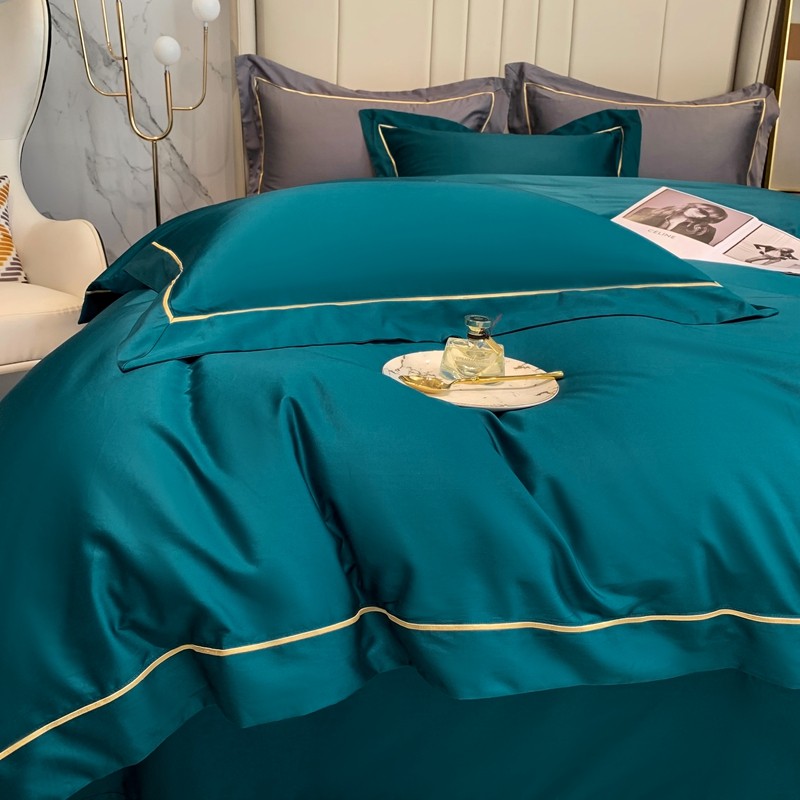 商品名称:榻尚家居2021新款长绒棉简约轻奢四件套 魅-孔雀蓝
