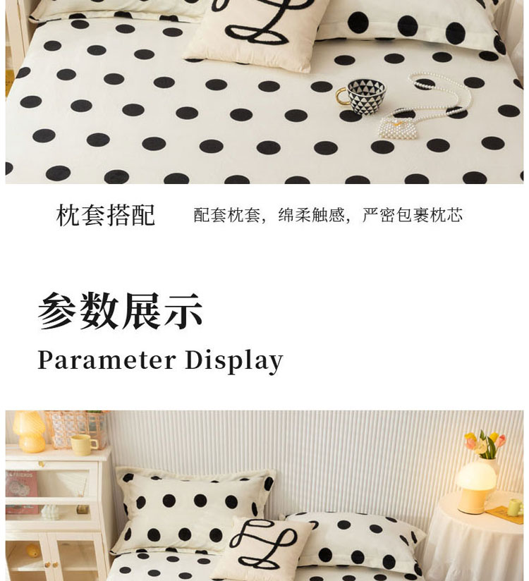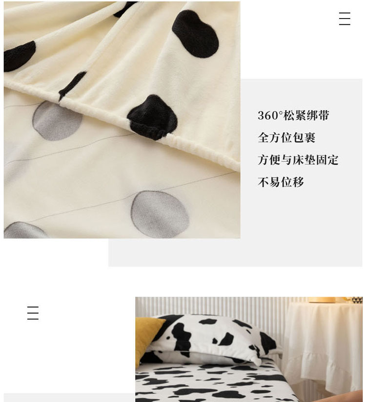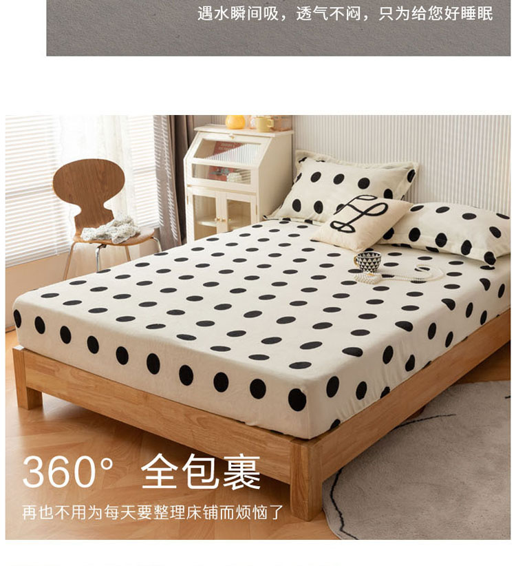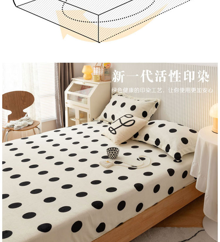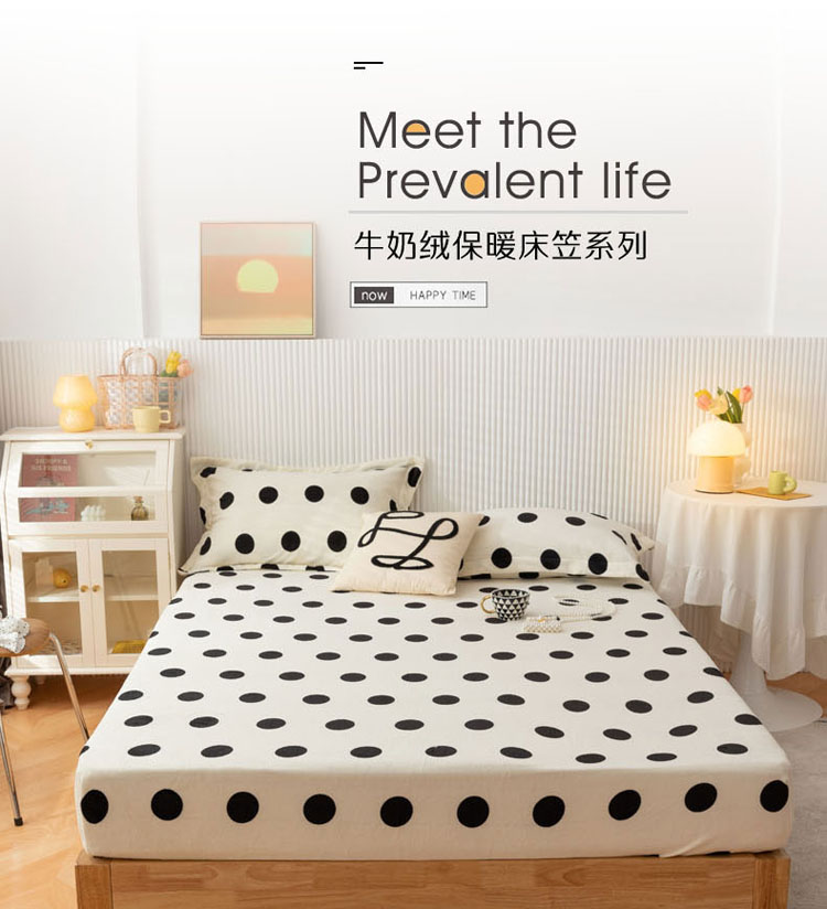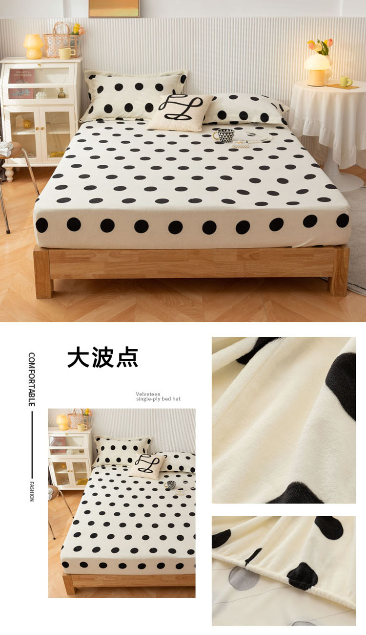 梦家居 2021新款秋冬牛奶绒床笠单品 大波点