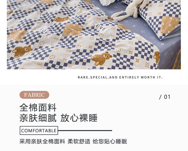 当前位置: 91家纺网 > 商品网购 > 床品套件 > 四件套 > 全棉普通四件套 > 梦家居 2022新款13372小清新系列全棉四件套 路易熊